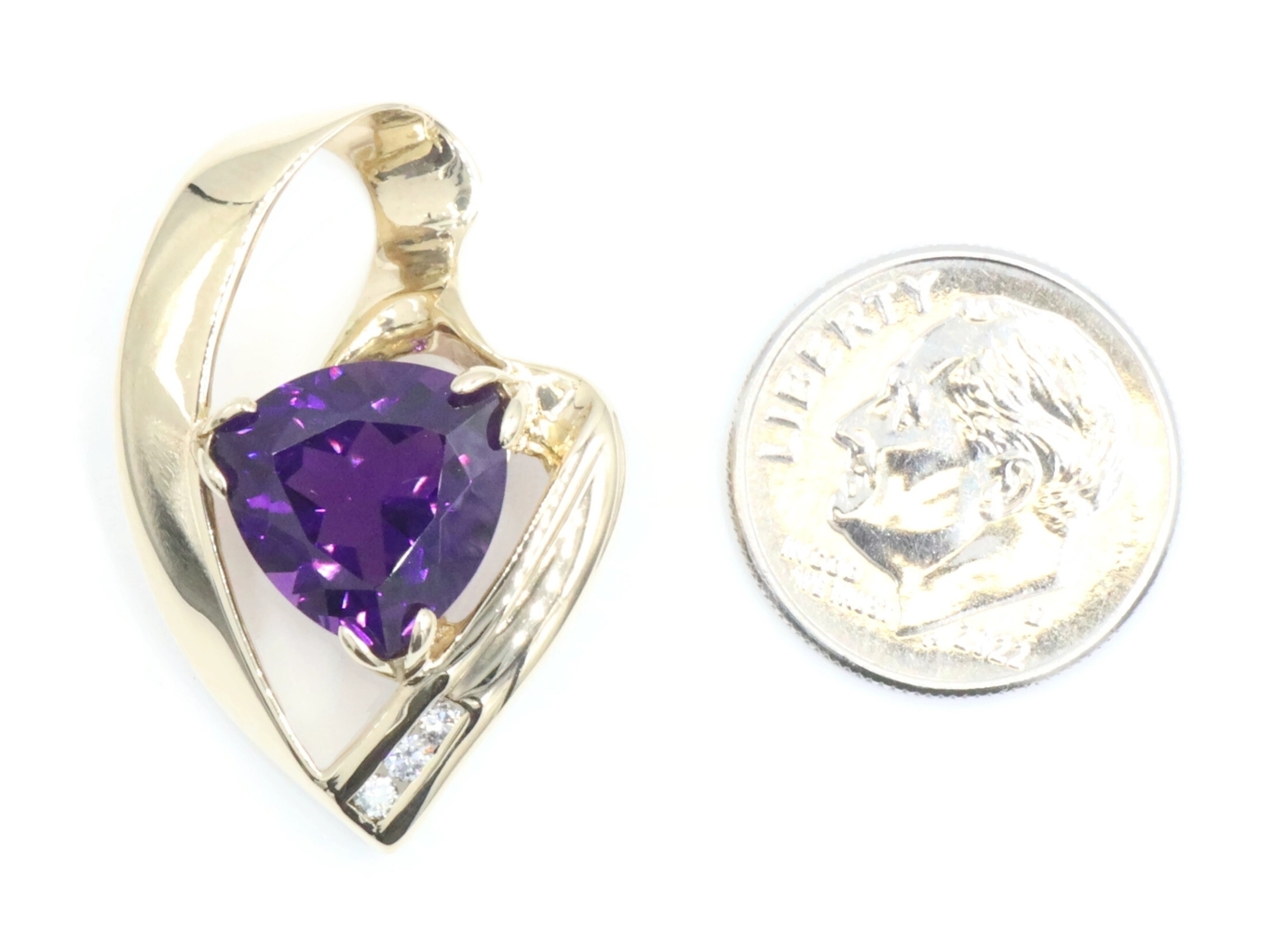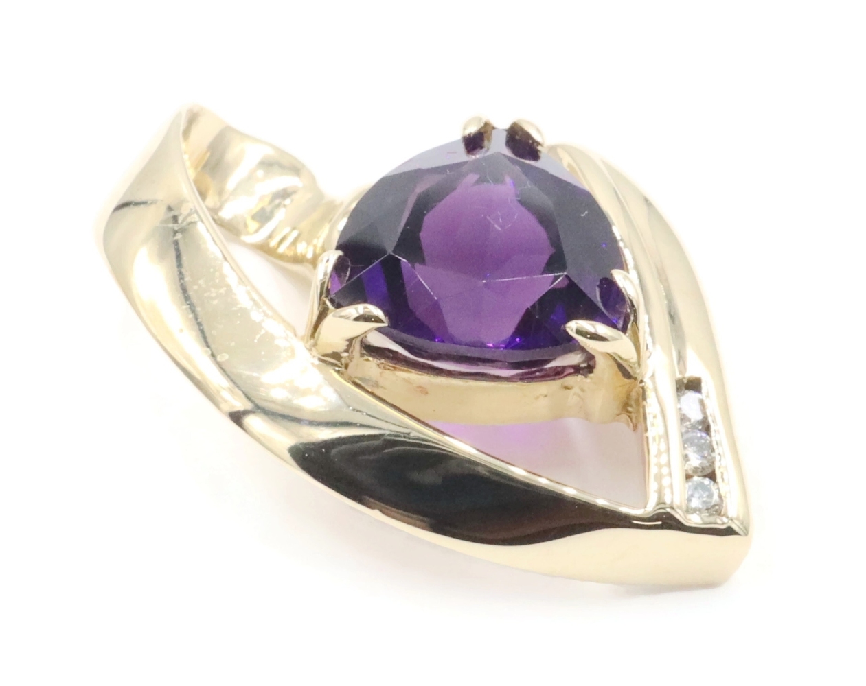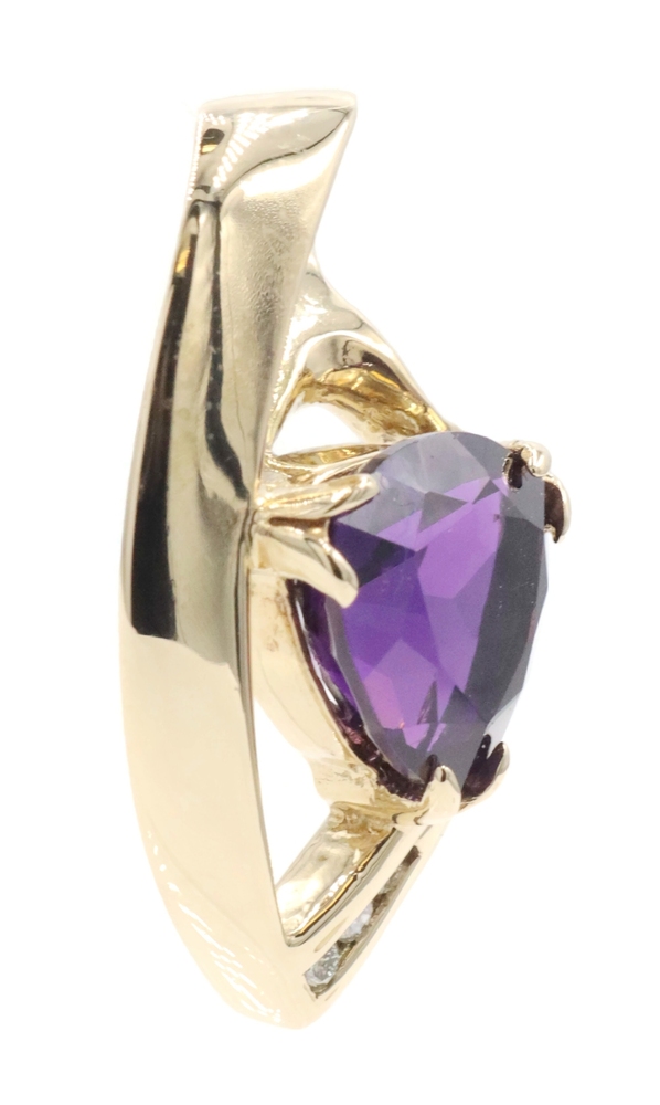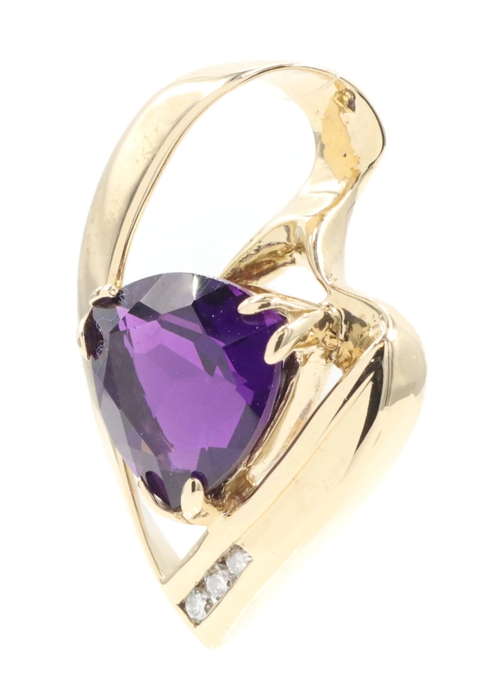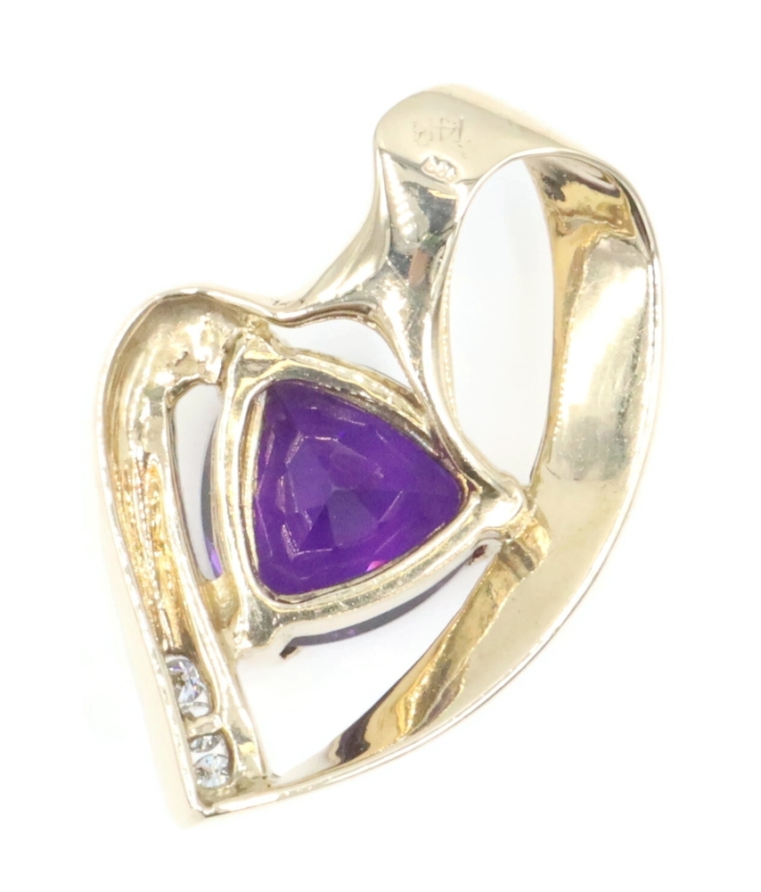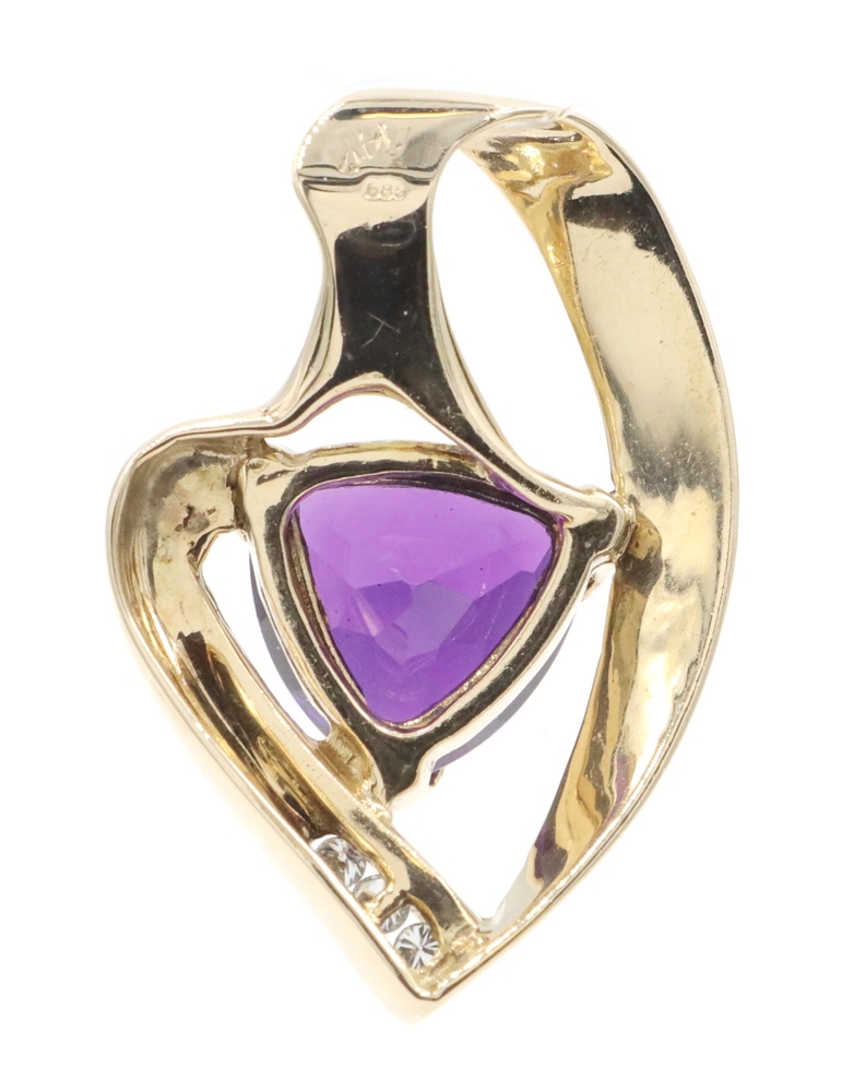 Freeform 3.60 Ct Trilliant Amethyst & Diamond 14KT Gold 1.1" Slide Pendant 6.56g | USA Pawn