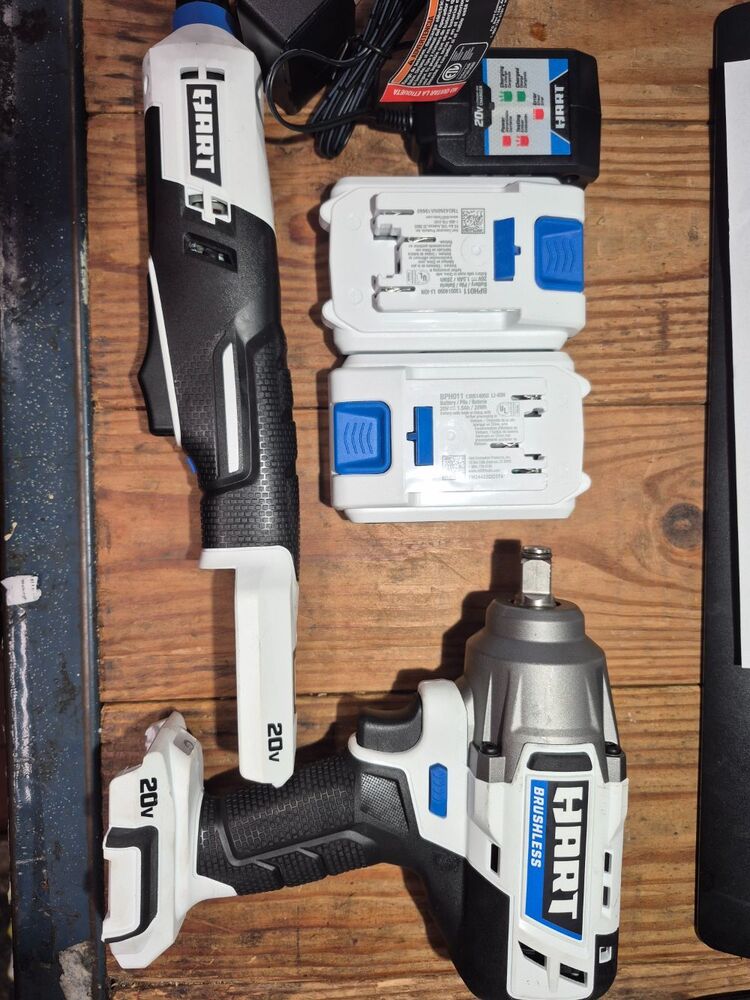 Tools Combo Kit hart hprt01/hpiw25 RATCHET AND DRILL w/ charger and 2 batt