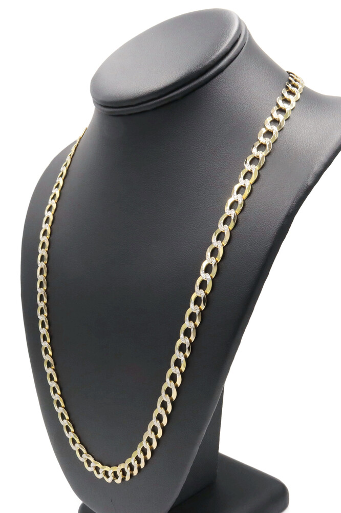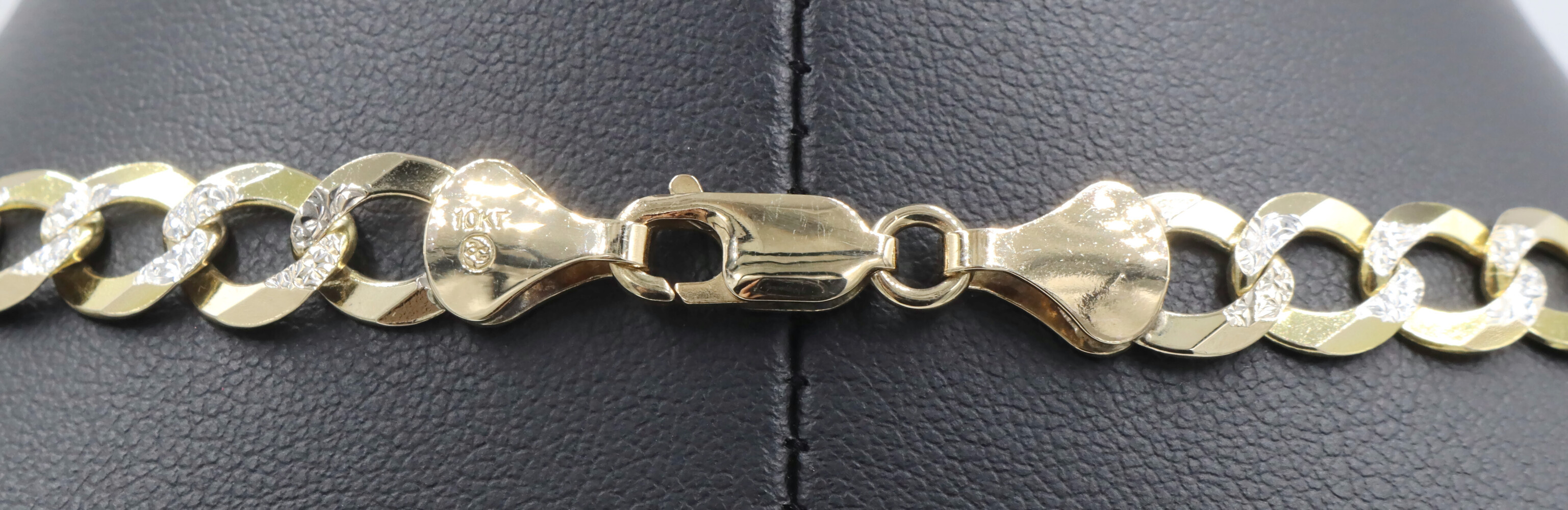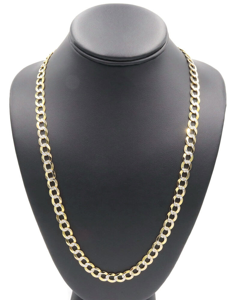 Heavy 10KT Yellow Gold Diamond-Cut 8.4mm Wide Curb Link Necklace 24" SC - 33.57g. This necklace is approximately 24 inches in length and 8.4mm in width.