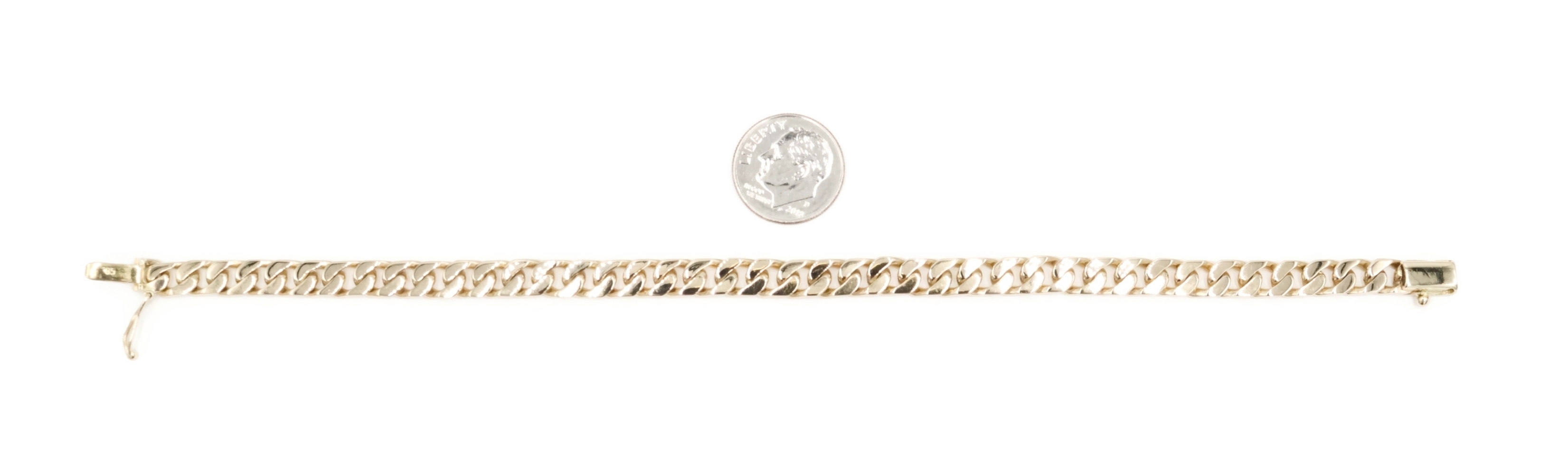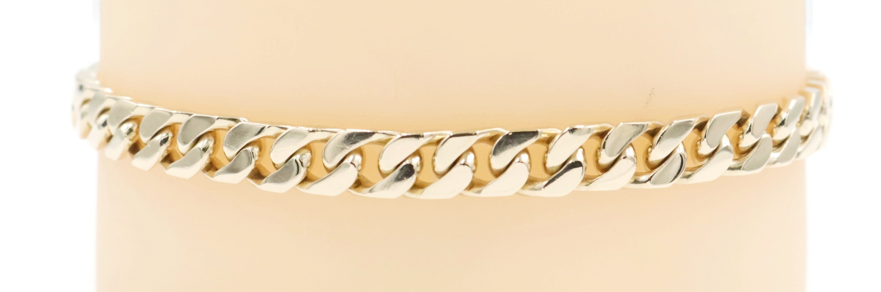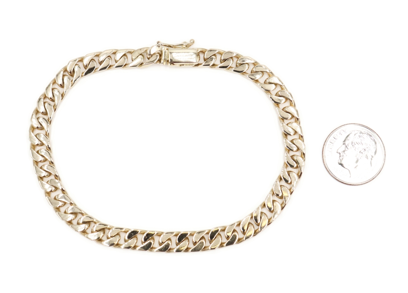 Heavy 14KT Yellow Gold 6.2mm Wide Flat Curb Link Chain Bracelet 8 1/4" - 25.50g. This bracelet is approximately 8 1/4 inches in length and 6.2mm in width.