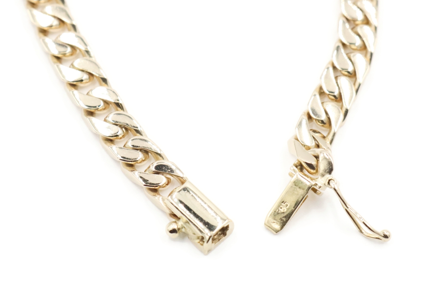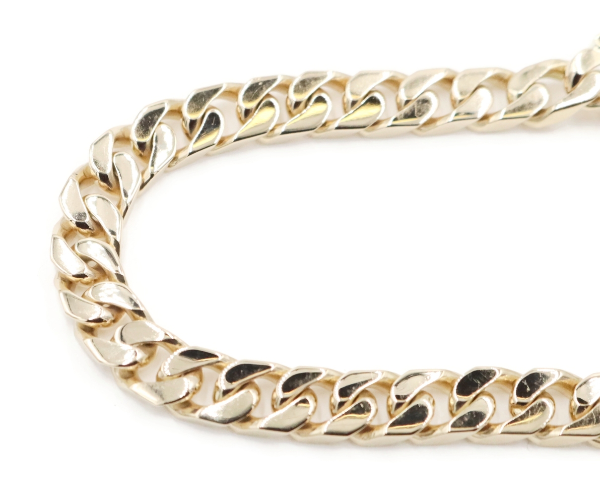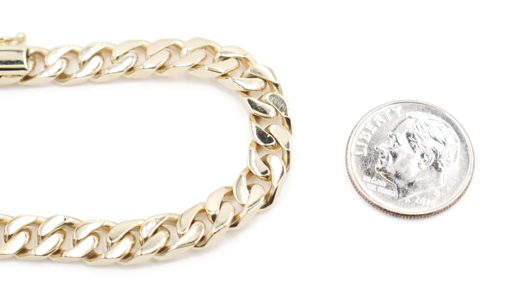 Heavy 14KT Yellow Gold 6.2mm Wide Flat Curb Link Chain Bracelet 8 1/4" - 25.50g. This bracelet is approximately 8 1/4 inches in length and 6.2mm in width.