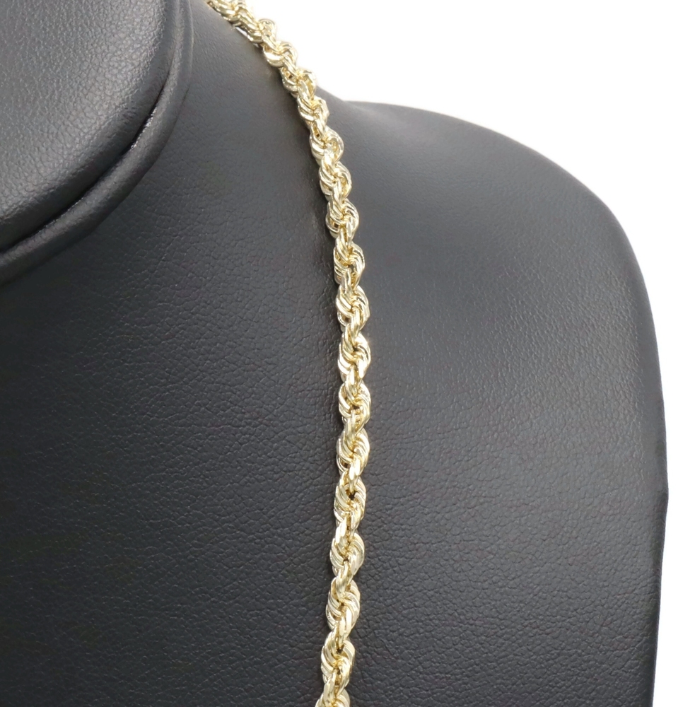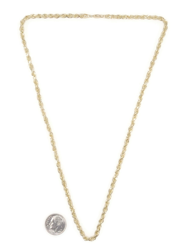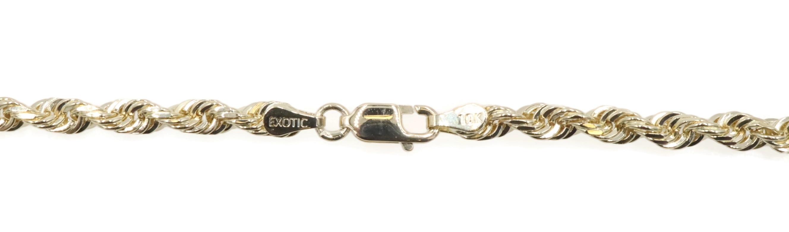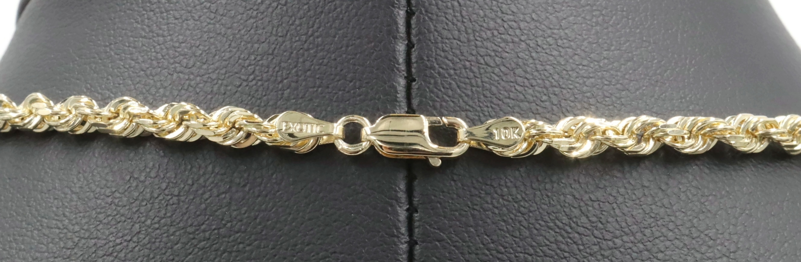 Heavy High Shine 10KT Yellow Gold 3.8mm Rope Chain Necklace by Exotic 20" 18.79g. This necklace is approximately 20 inches in length and 3.8mm in width.