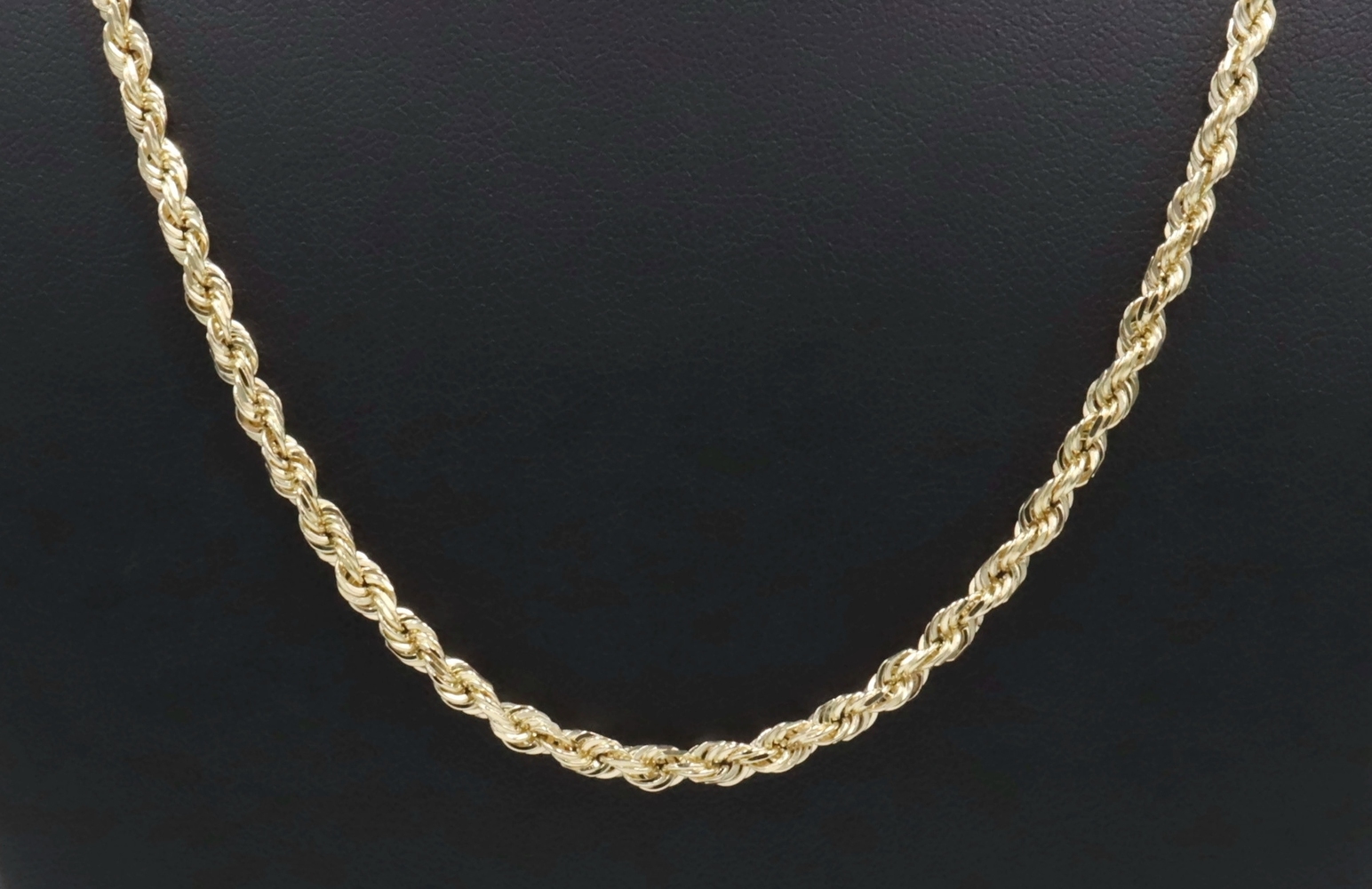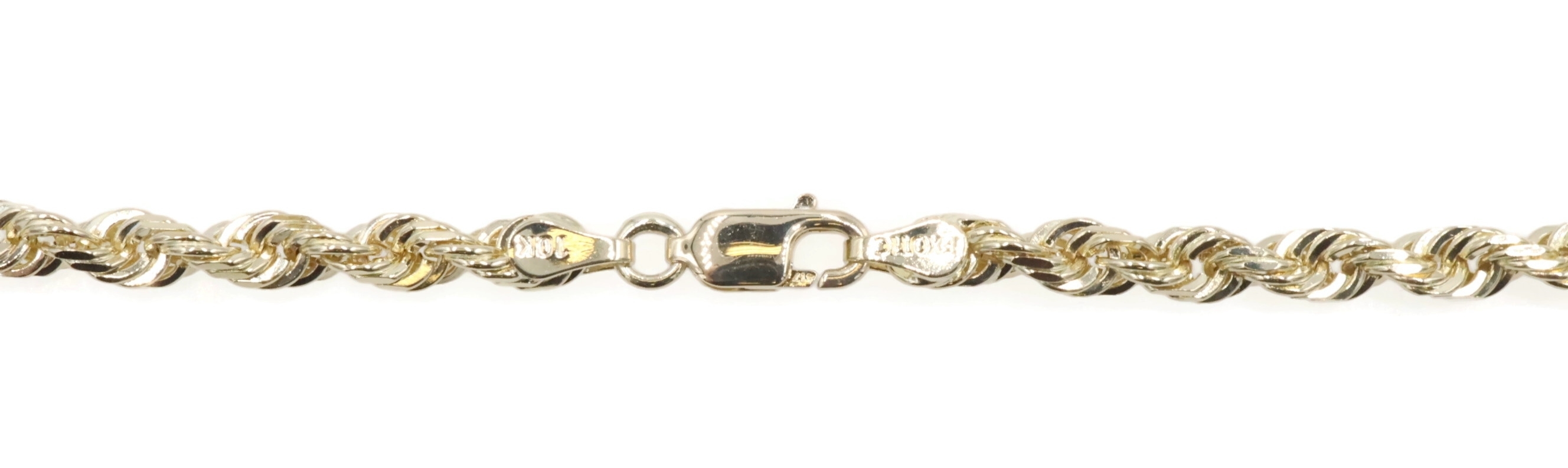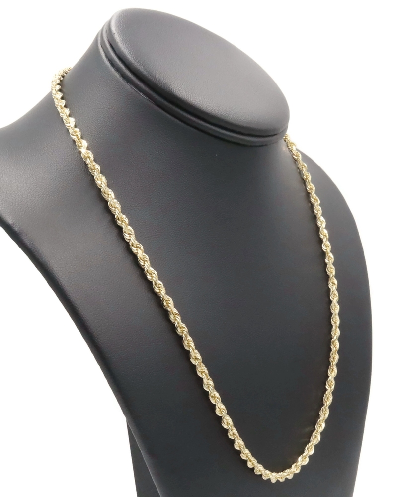 Heavy High Shine 10KT Yellow Gold 3.8mm Rope Chain Necklace by Exotic 20" 18.79g. This necklace is approximately 20 inches in length and 3.8mm in width.