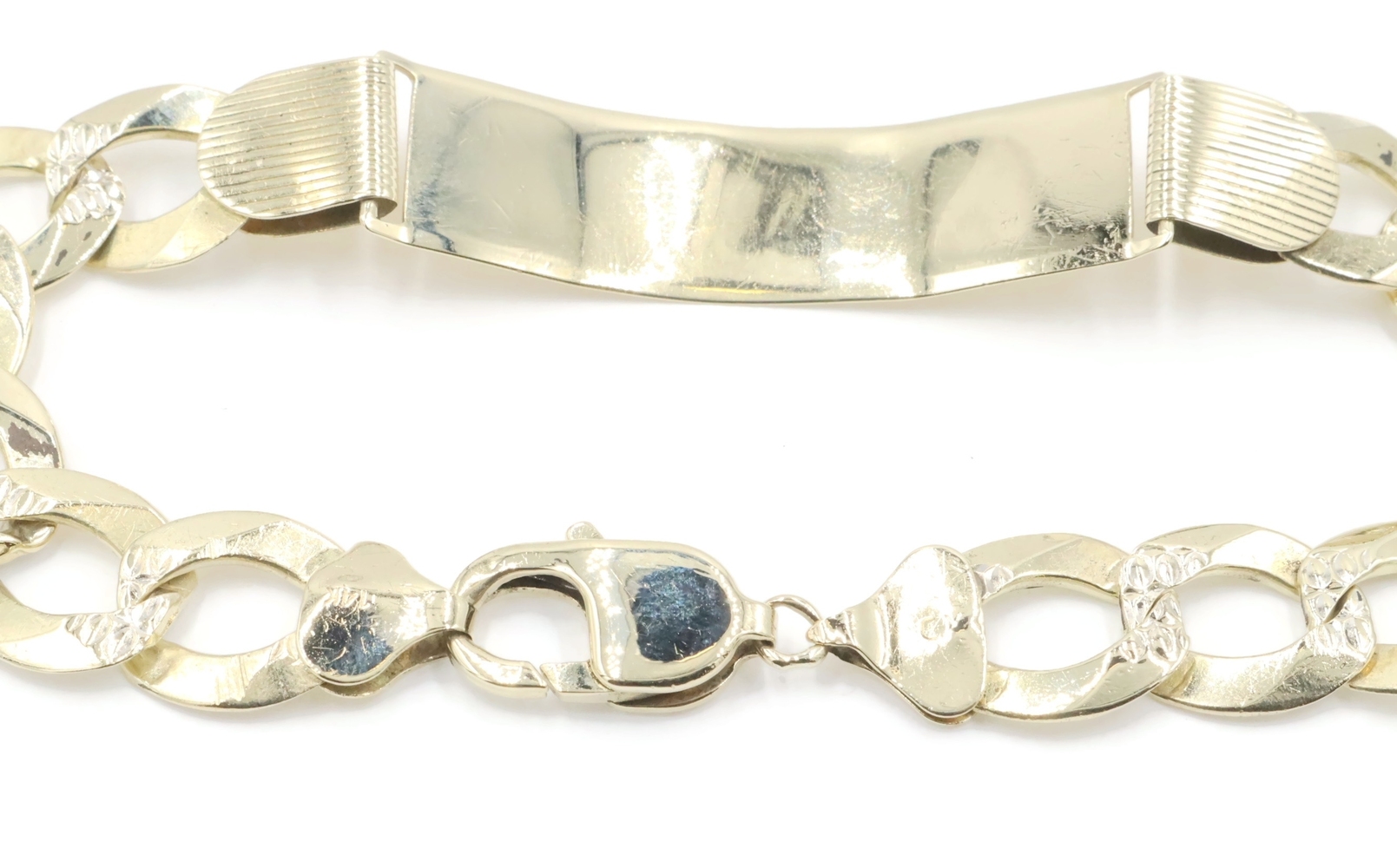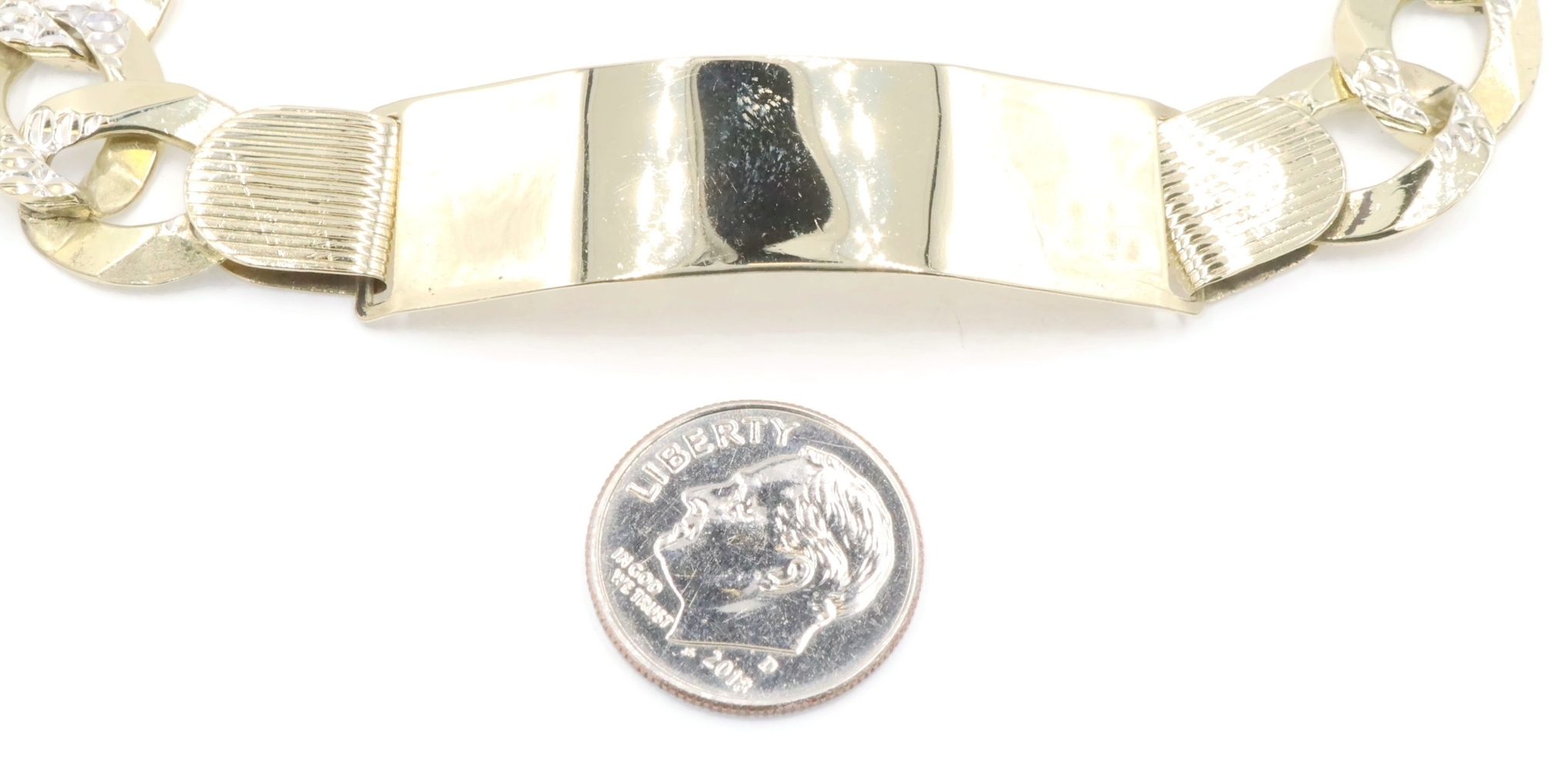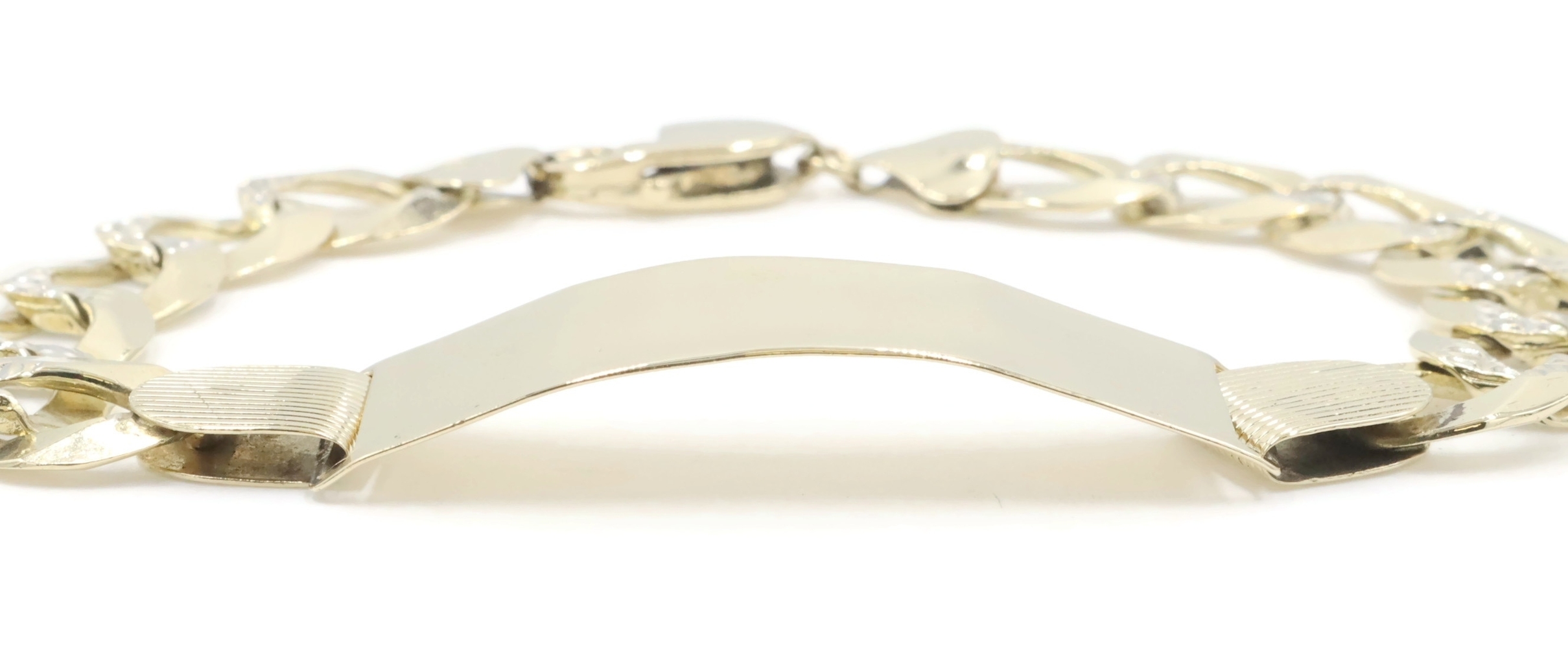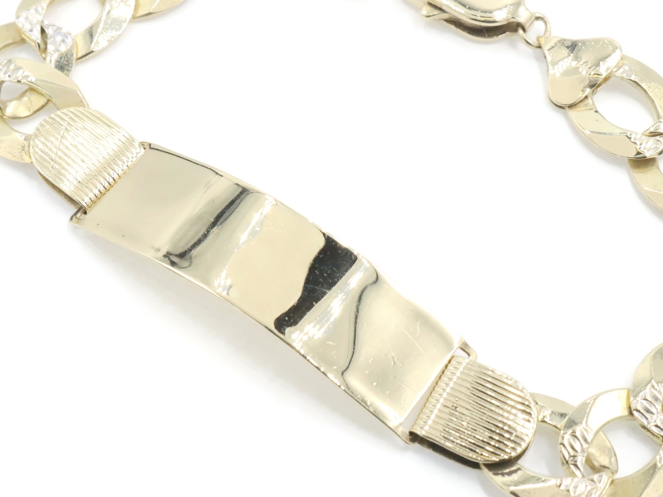High Polish 14KT Yellow Gold Blank ID Bar Diamond-Cut Figaro Bracelet 9" - 27.7g | USA Pawn
