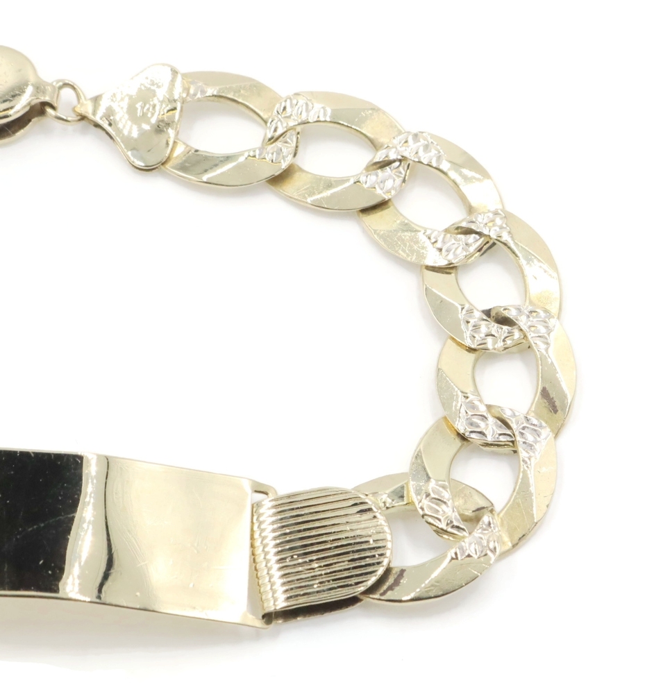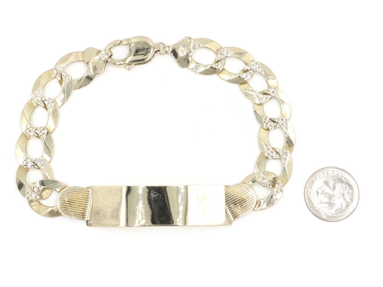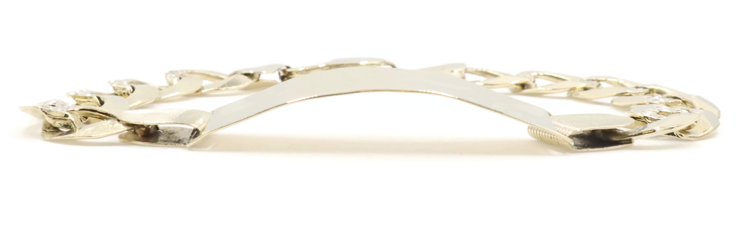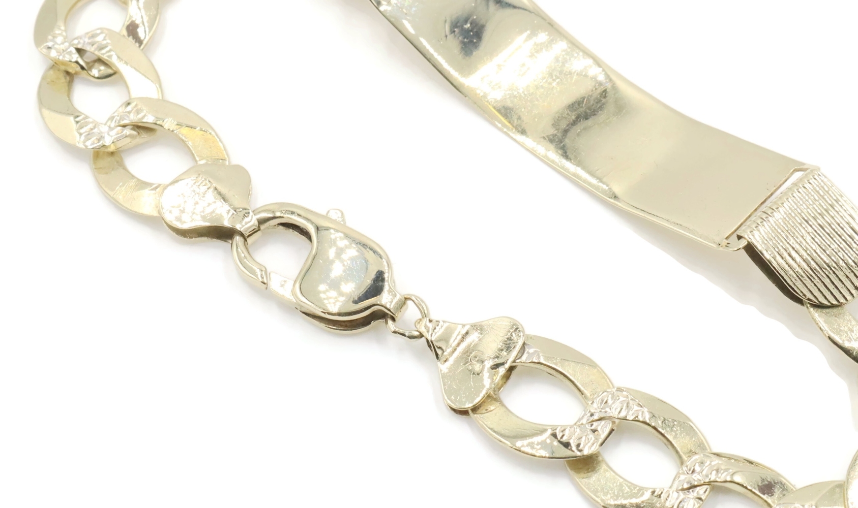 High Polish 14KT Yellow Gold Blank ID Bar Diamond-Cut Figaro Bracelet 9" - 27.7g | USA Pawn