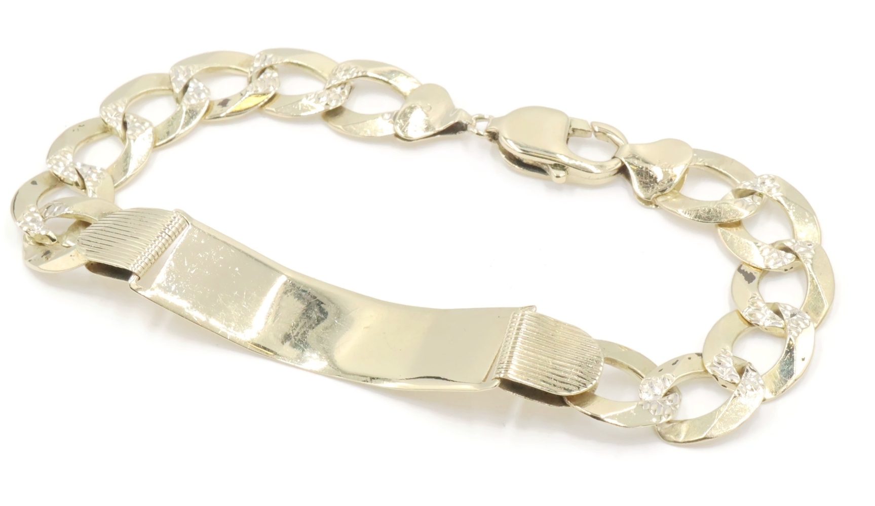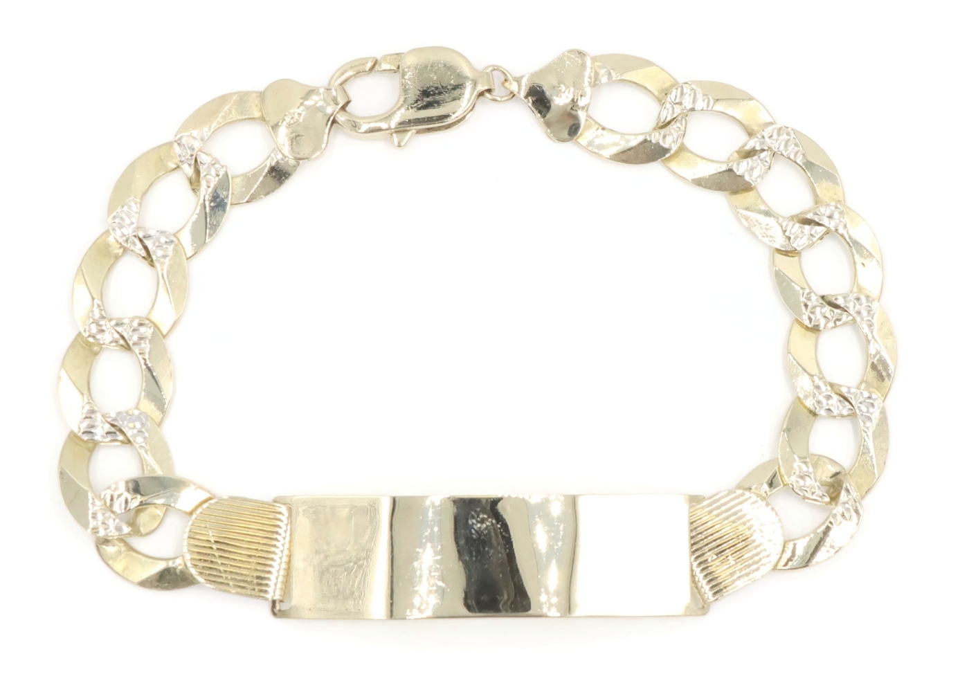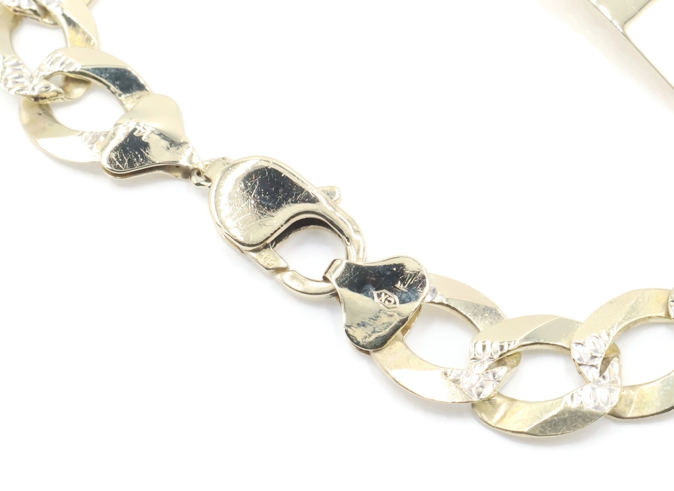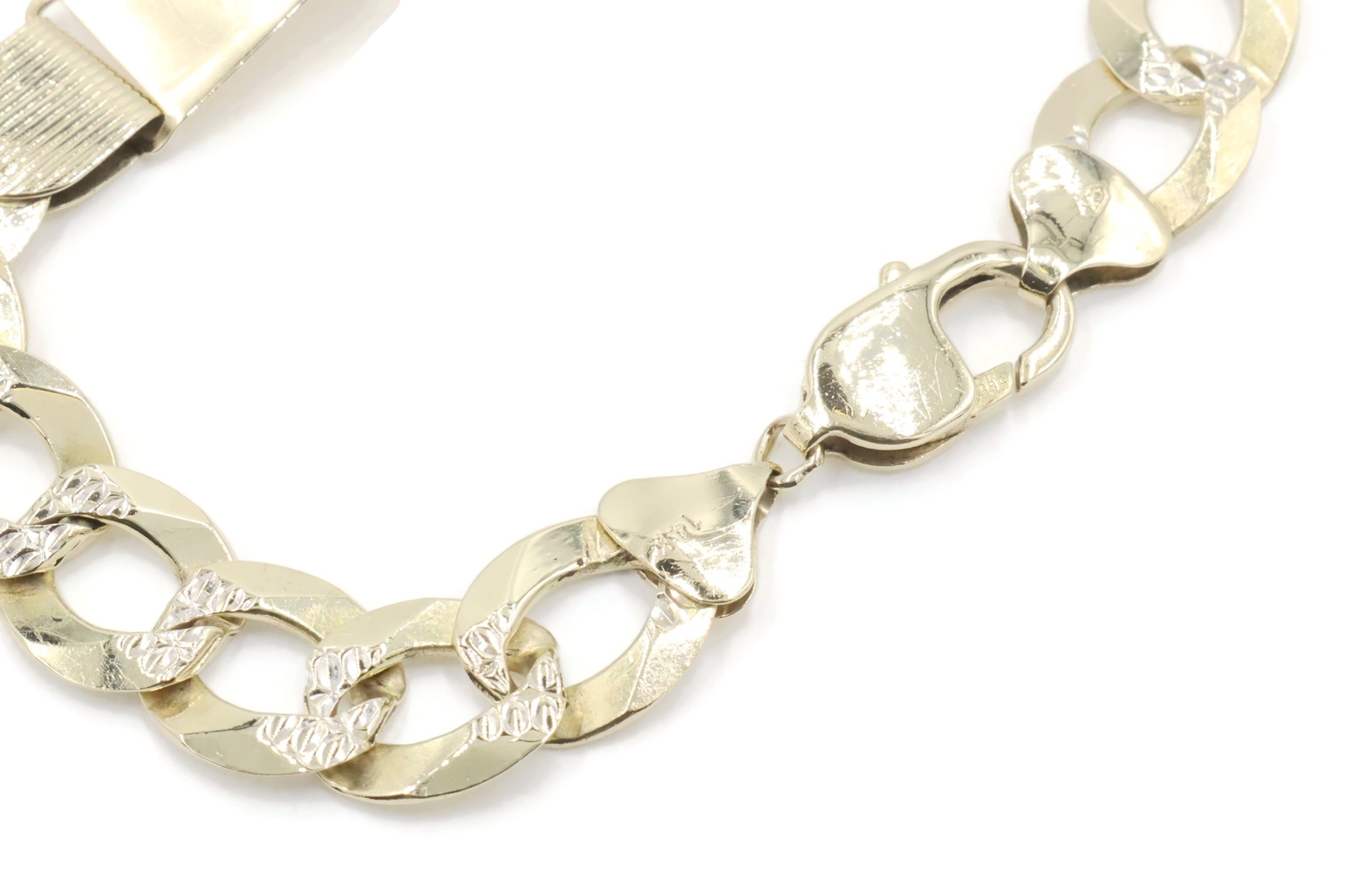 High Polish 14KT Yellow Gold Blank ID Bar Diamond-Cut Figaro Bracelet 9" - 27.7g | USA Pawn