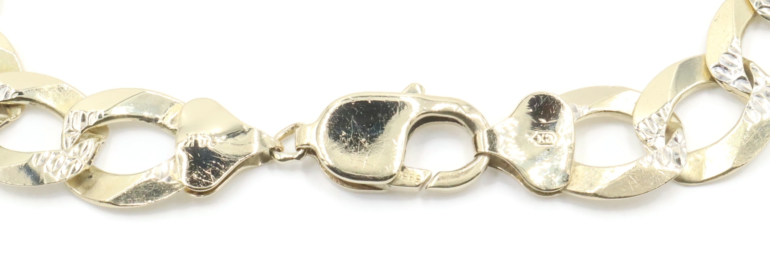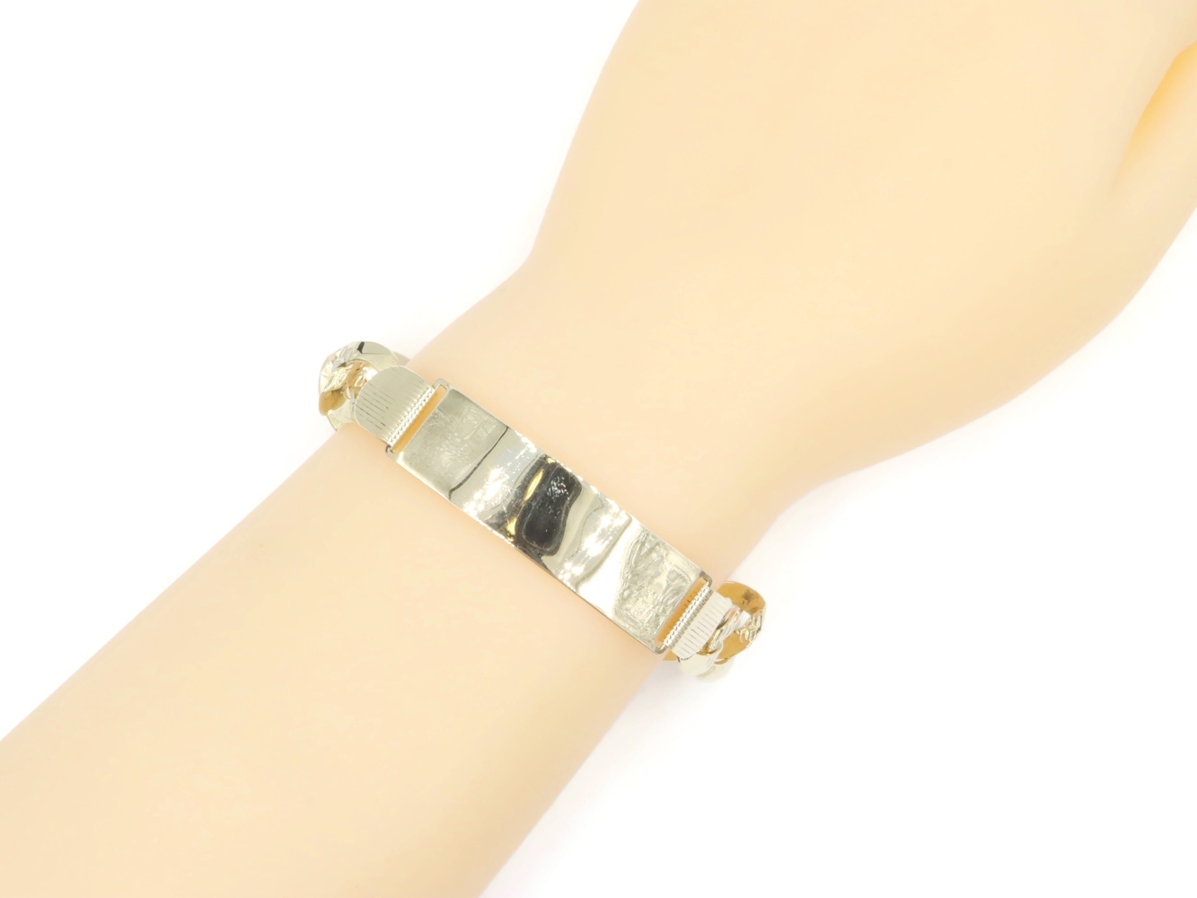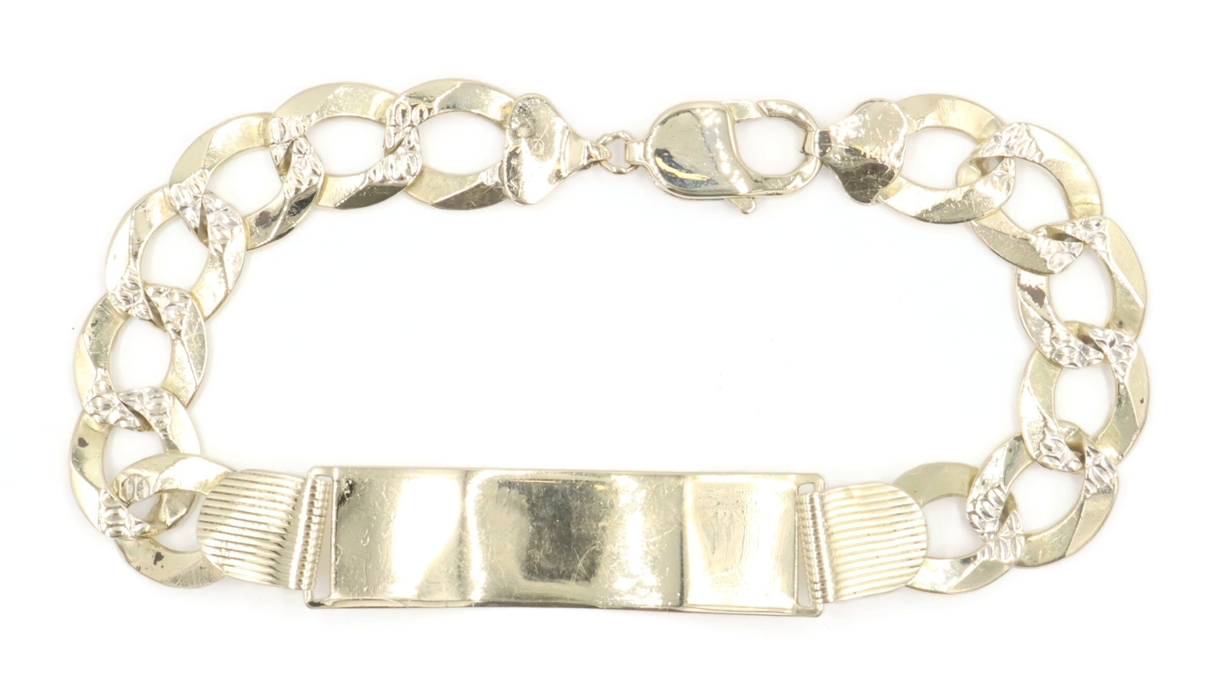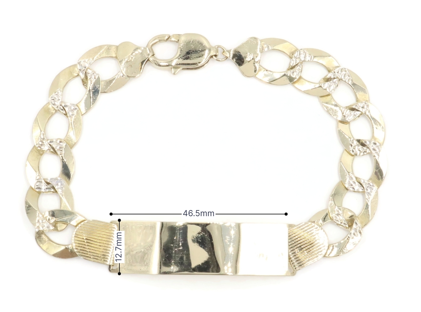 High Polish 14KT Yellow Gold Blank ID Bar Diamond-Cut Figaro Bracelet 9" - 27.7g | USA Pawn