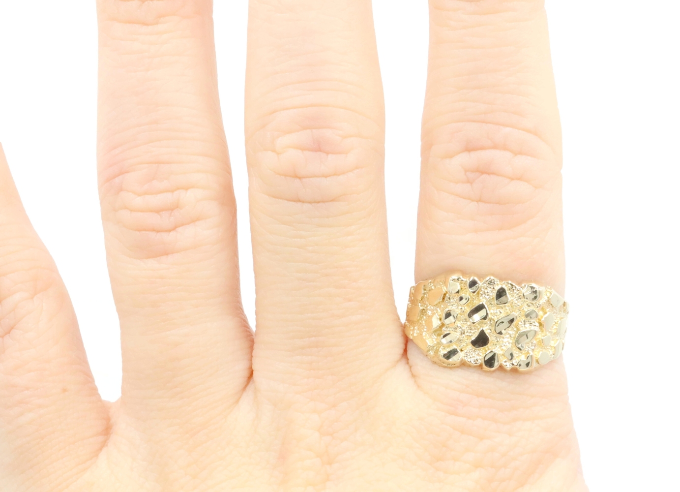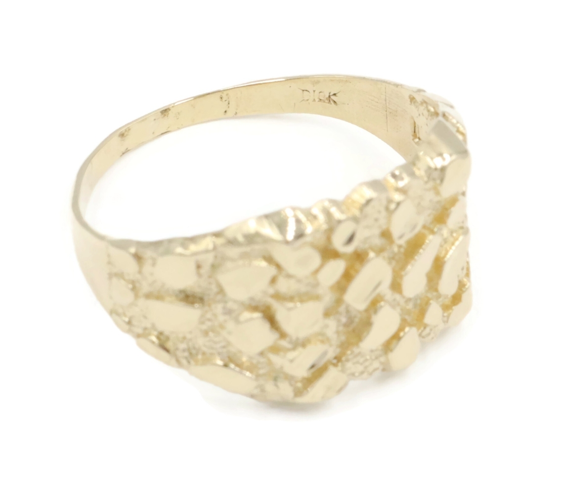 High Shine 10KT Yellow Gold 12.6mm Retro-Style Nugget Ring Size 9 1/4 - 2.89g | USA Pawn