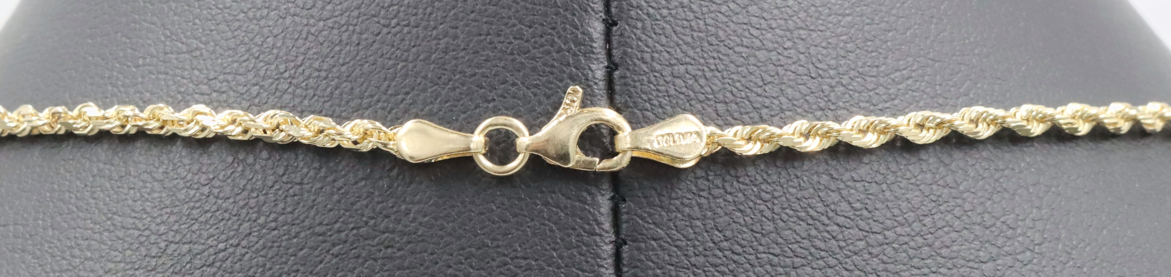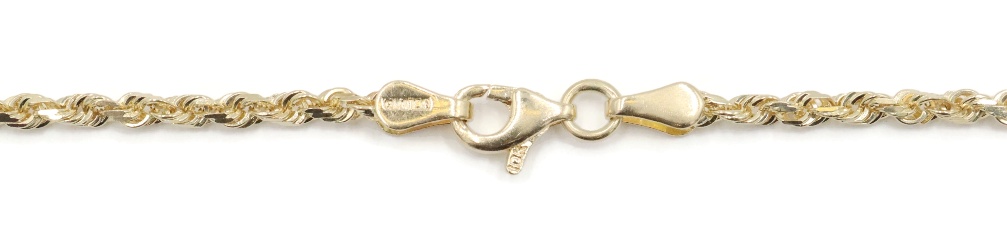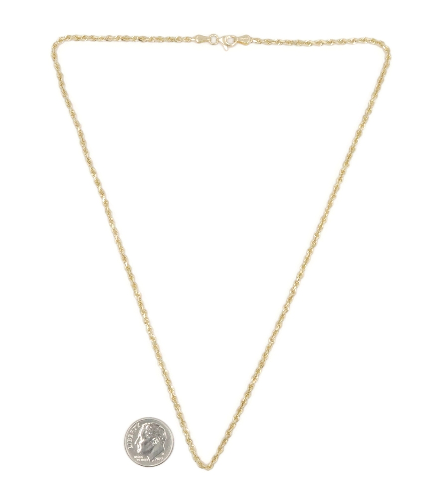High Shine 10KT Yellow Gold 2.3mm Classic Rope Chain Necklace 18.5" RCI - 6.36g. This necklace is approximately 18 1/2 inches in length and 2.3mm in width.