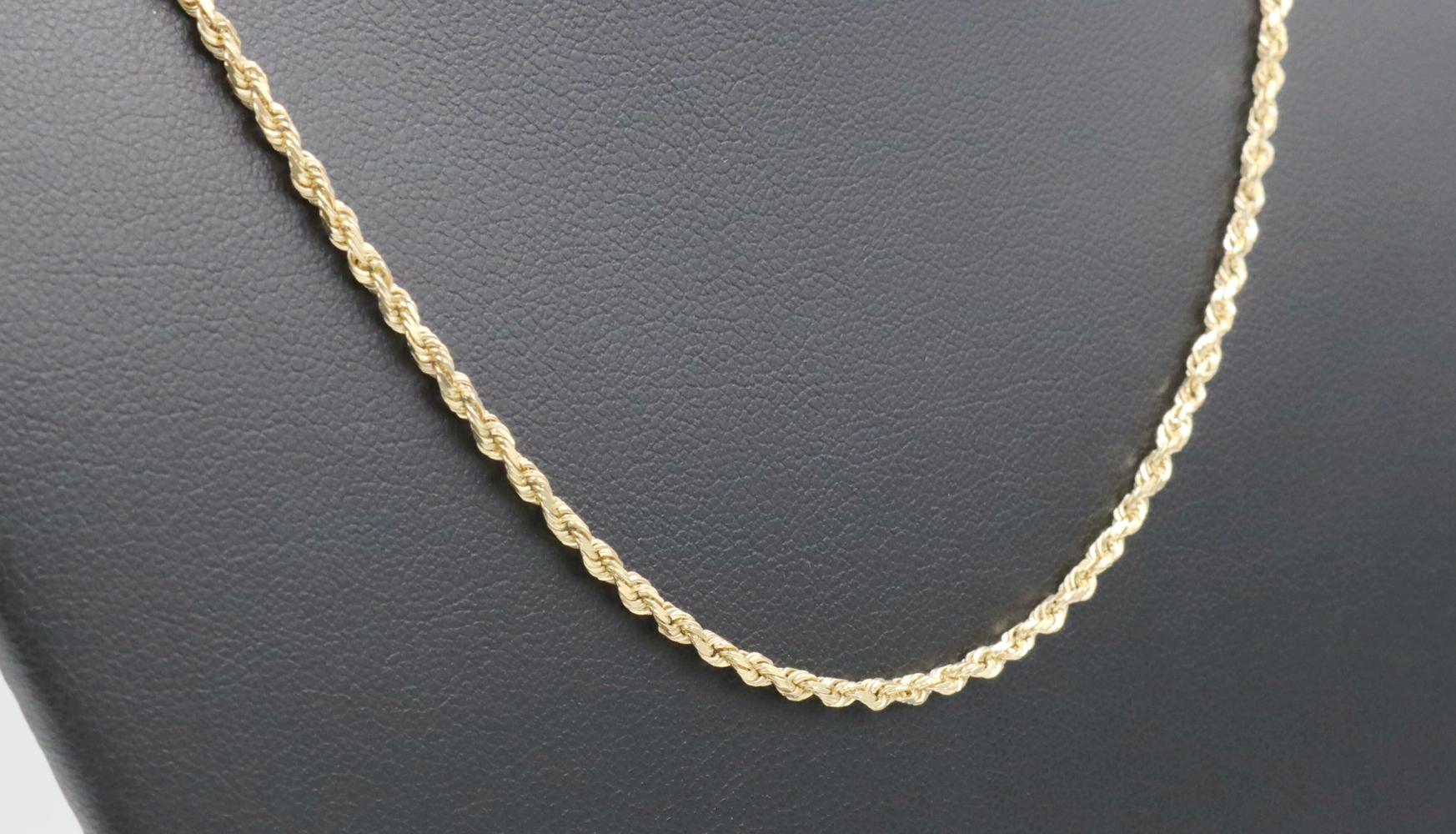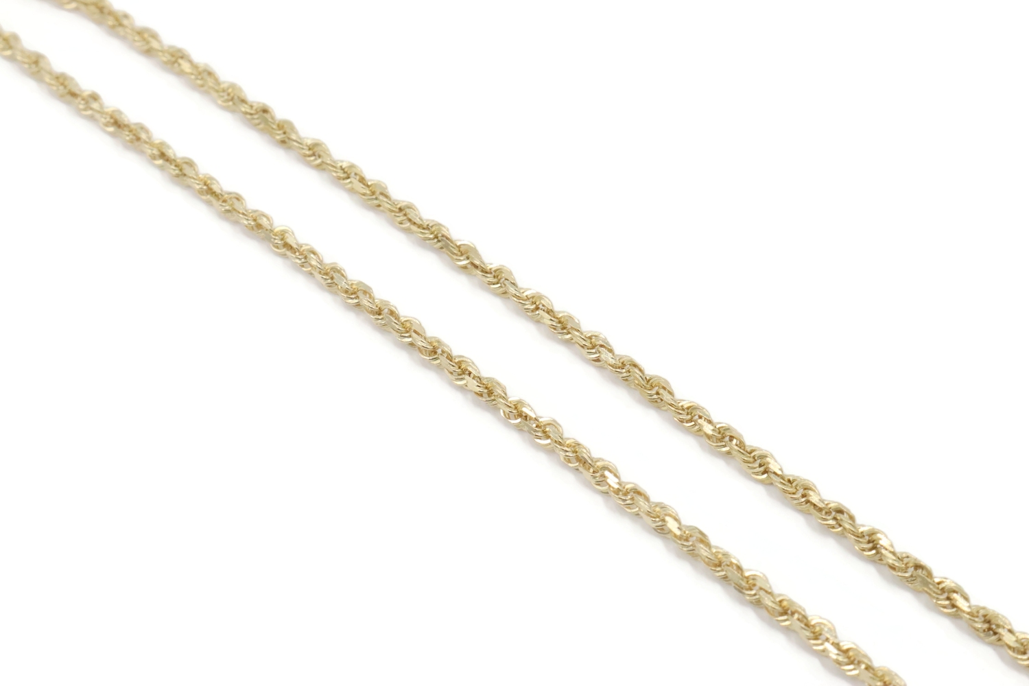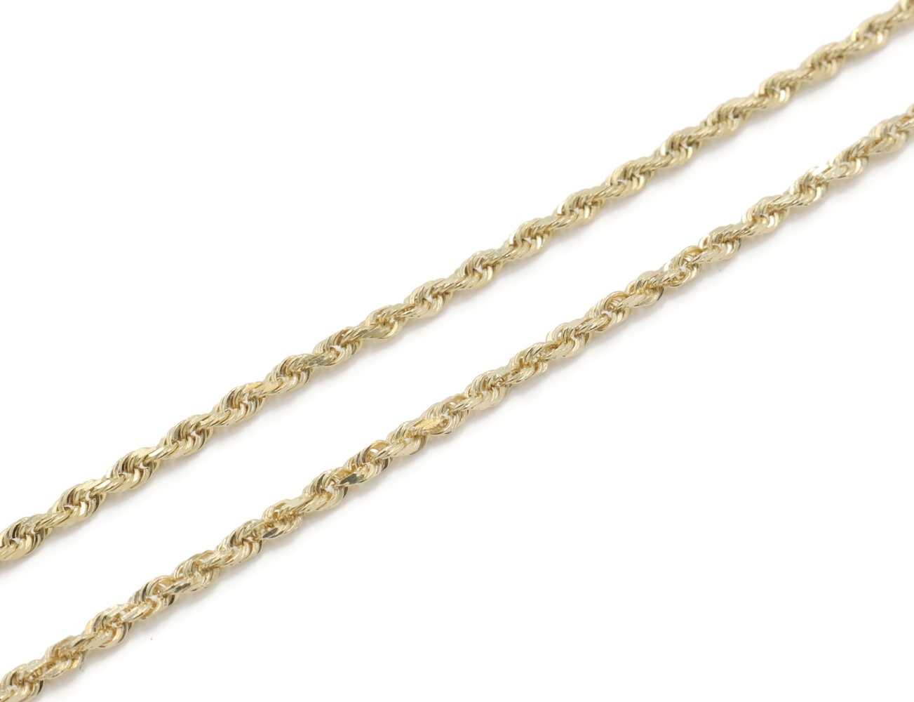 High Shine 10KT Yellow Gold 2.3mm Classic Rope Chain Necklace 18.5" RCI - 6.36g. This necklace is approximately 18 1/2 inches in length and 2.3mm in width.