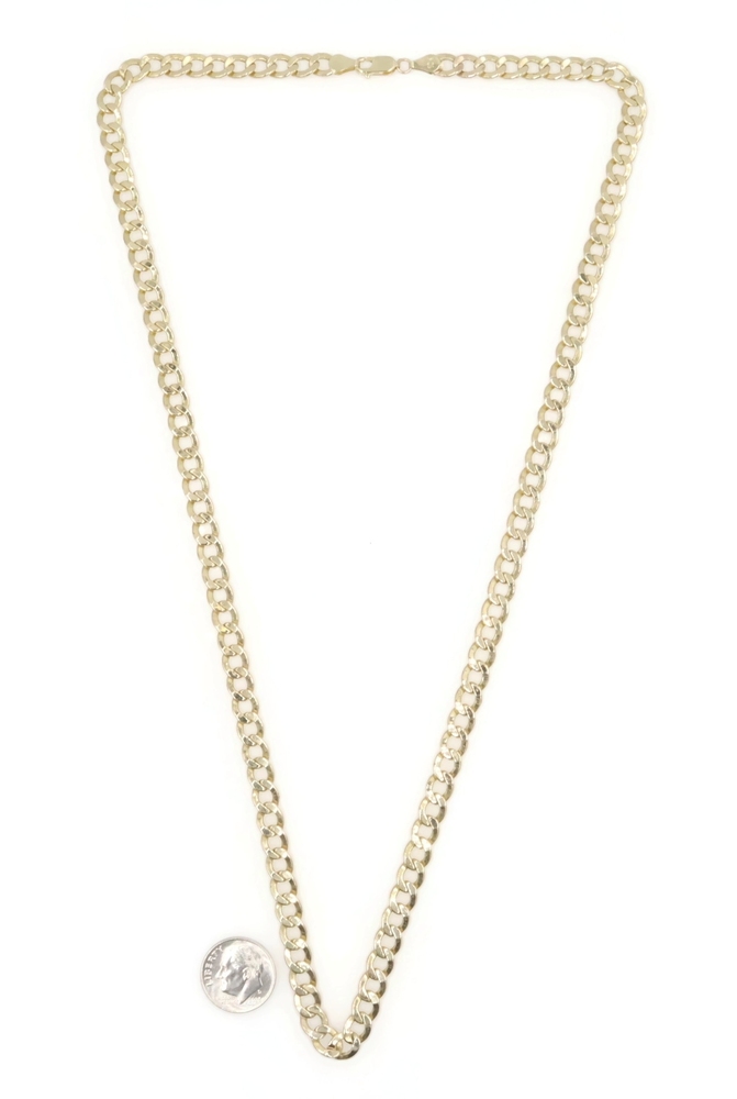 High Shine 10KT Yellow Gold 6.6mm Classic Hollow Curb Chain Necklace 24" - 15.5g. This necklace is approximately 24 1/2 inches in length and 6.6mm in width.