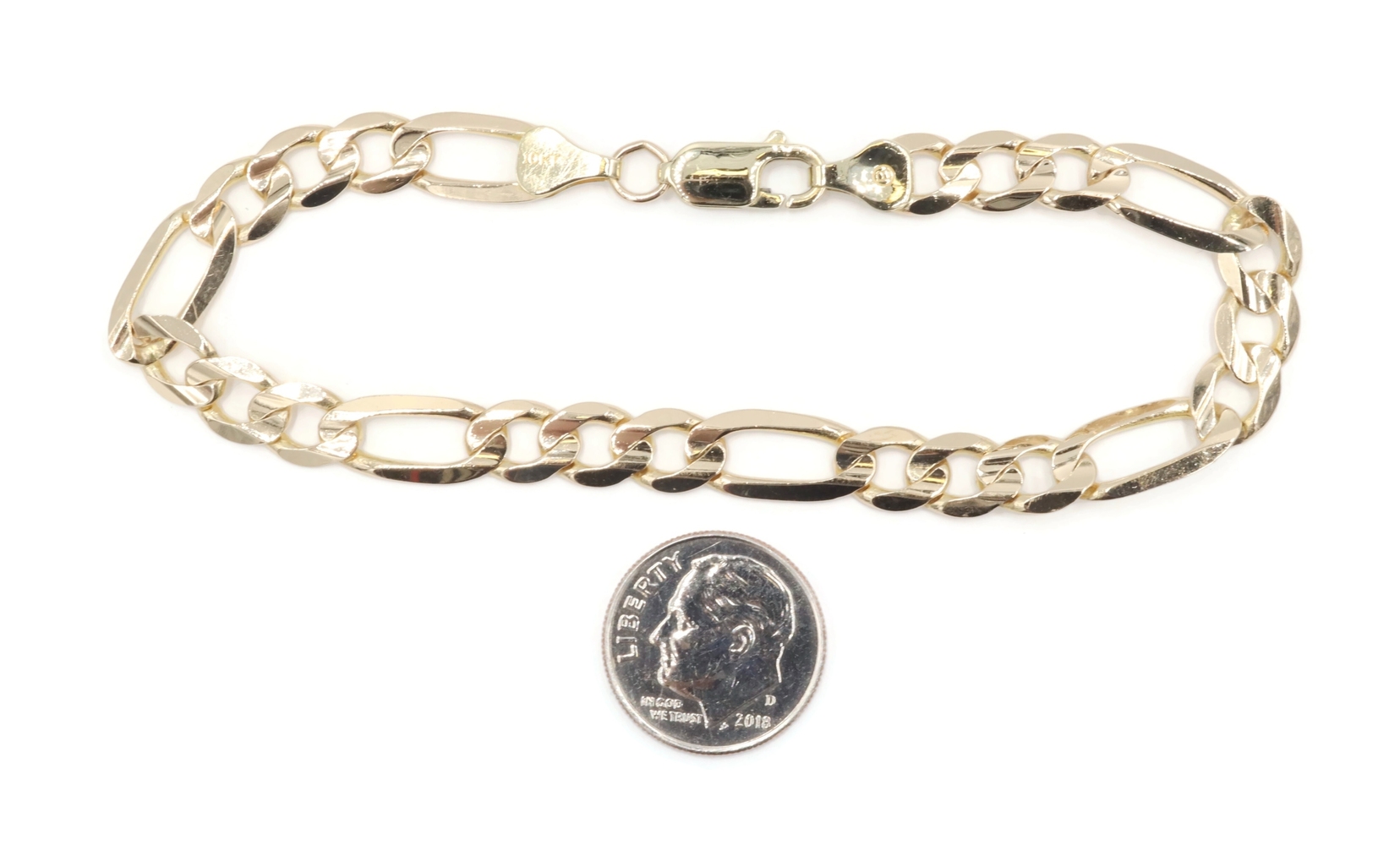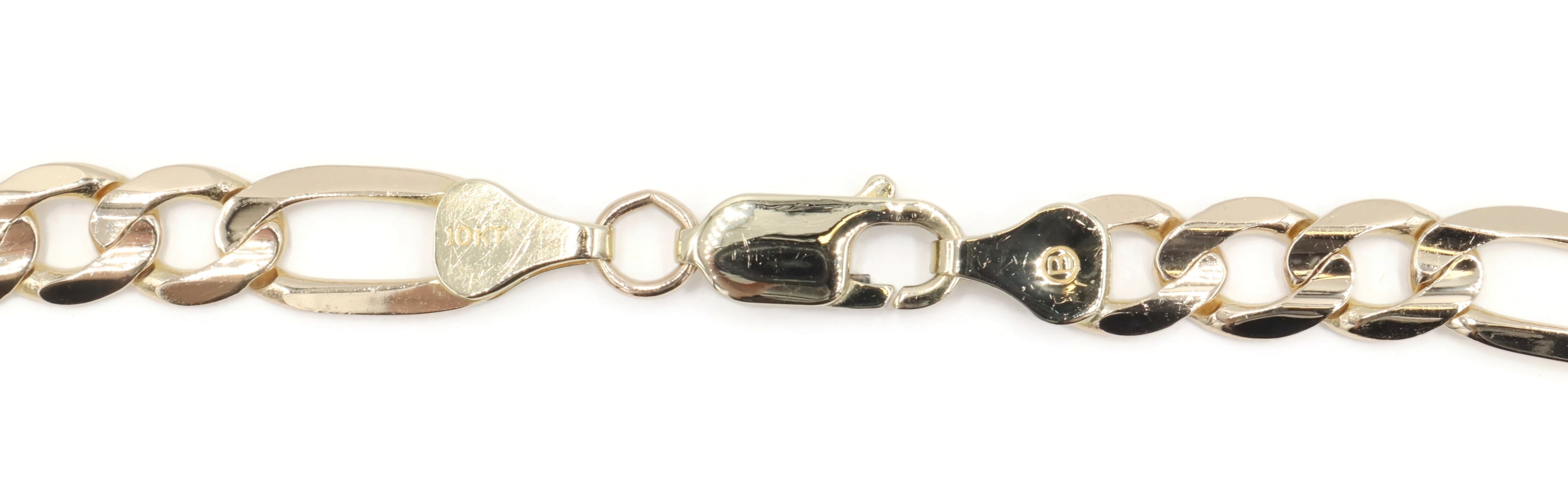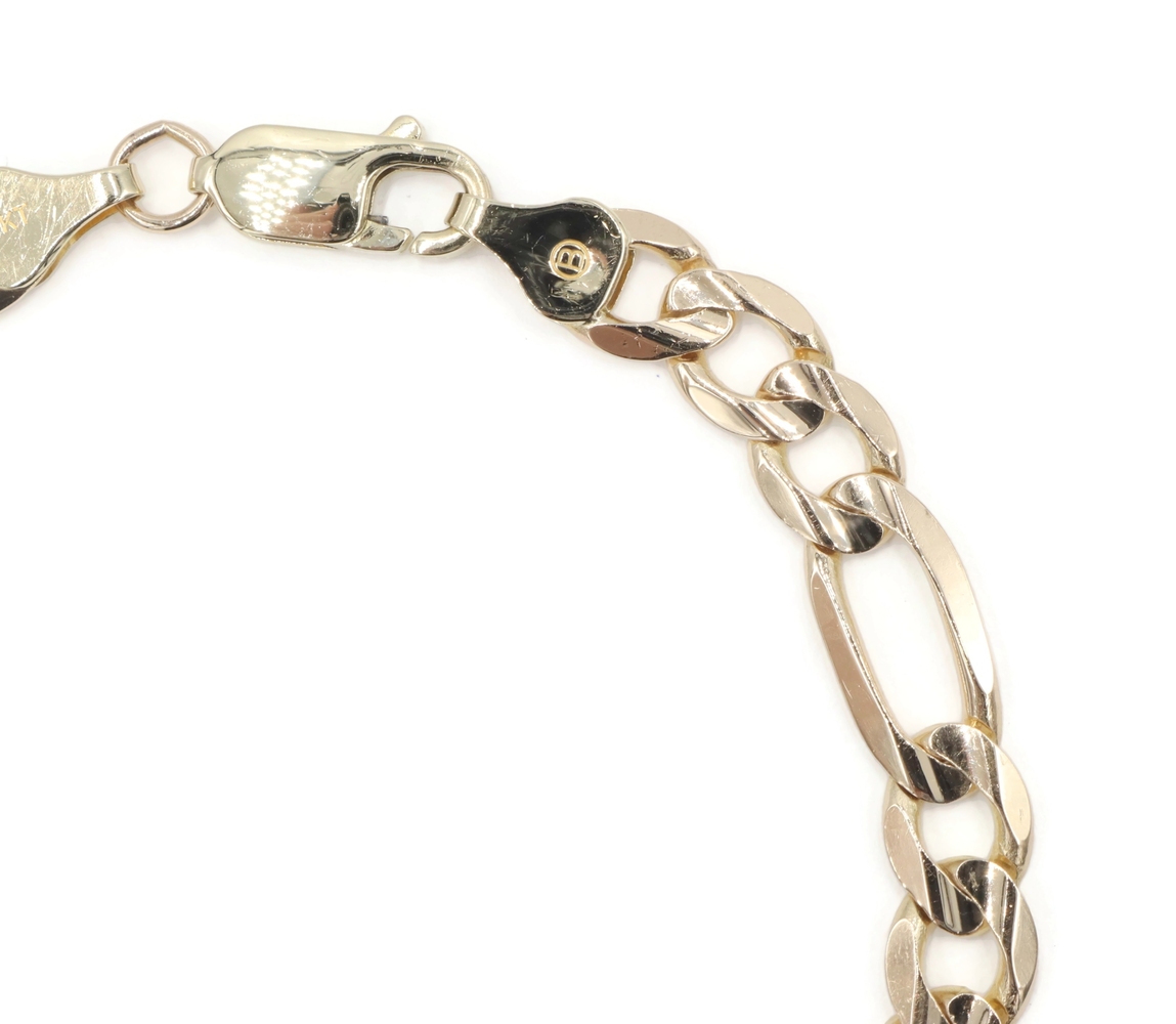High Shine 10KT Yellow Gold 7.2mm Semi-Hollow Figaro Chain Bracelet 8" RSA 9.29g. This bracelet is approximately 8 1/4 inches in length and 7.2mm in width.