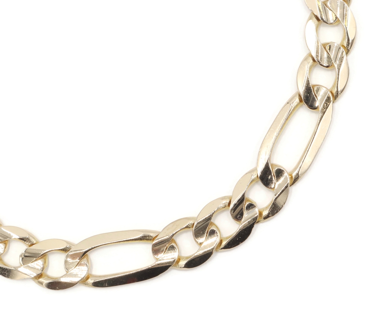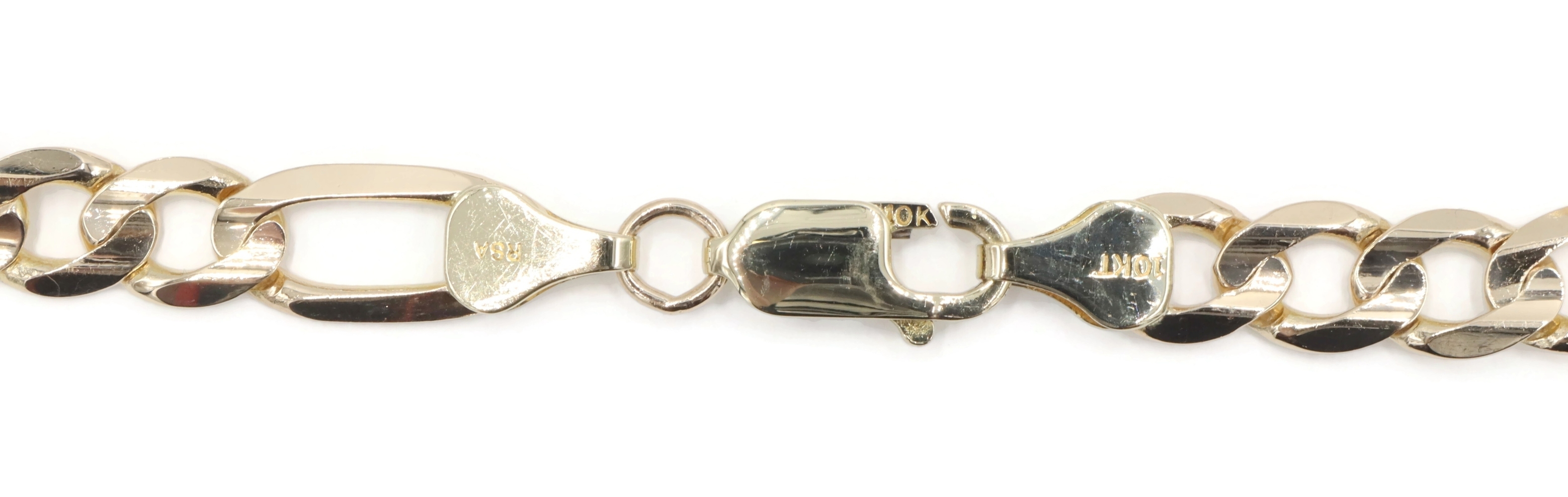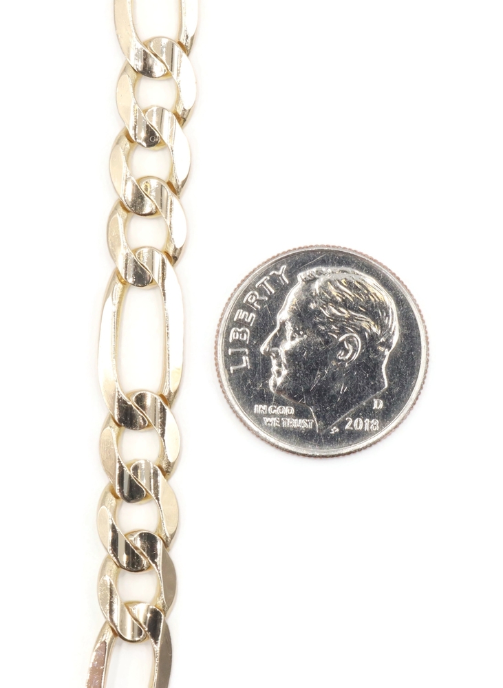 High Shine 10KT Yellow Gold 7.2mm Semi-Hollow Figaro Chain Bracelet 8" RSA 9.29g. This bracelet is approximately 8 1/4 inches in length and 7.2mm in width.