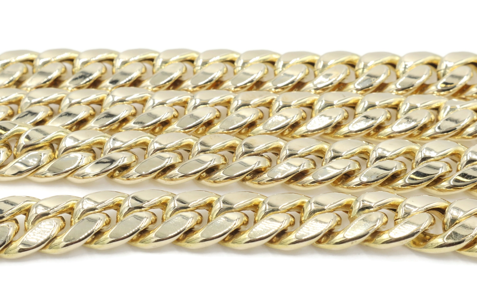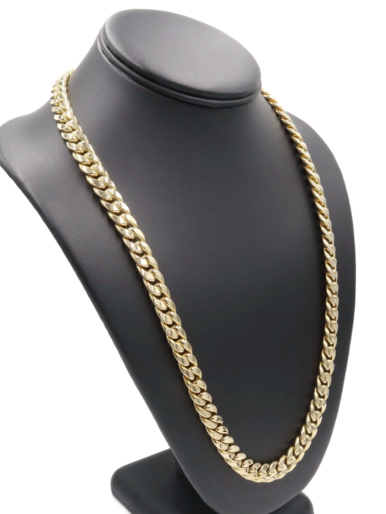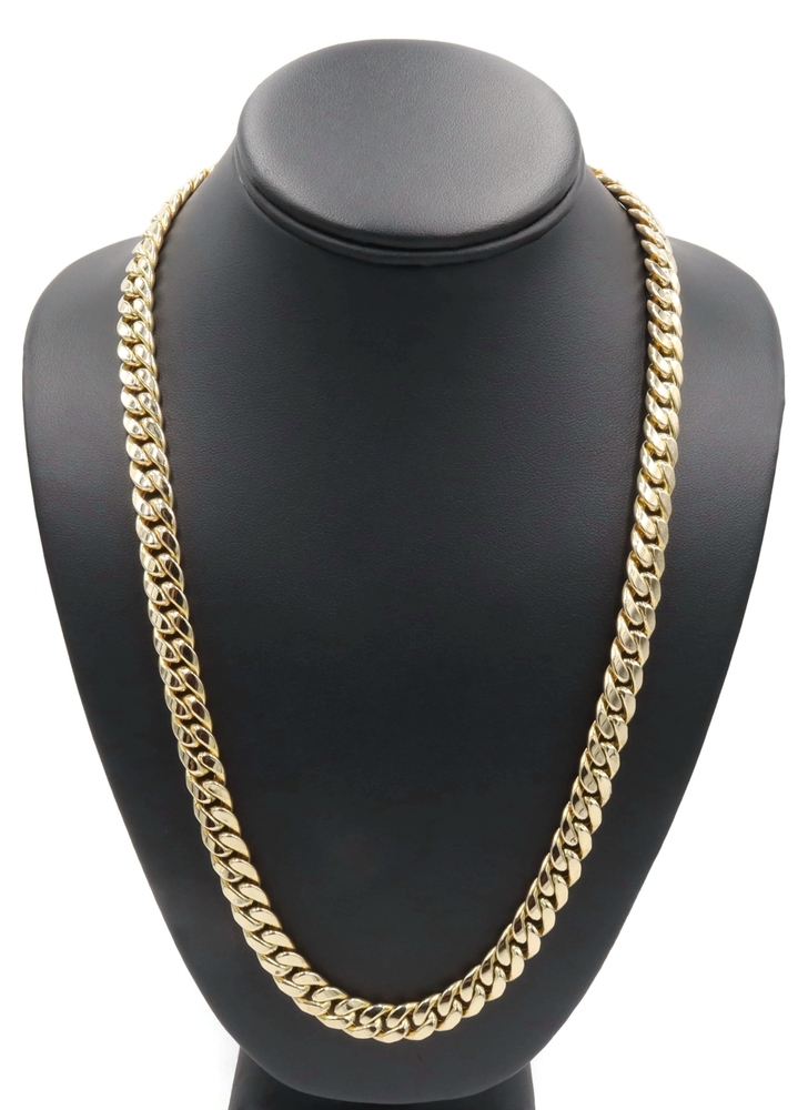 High Shine 10KT Yellow Gold 9.6mm Wide Hollow Cuban Chain Necklace 24" - 52.27g. This necklace is approximately 24 inches in length and 9.6mm in width.