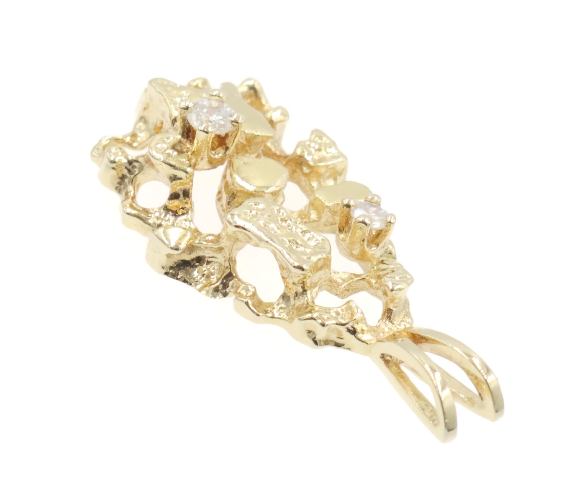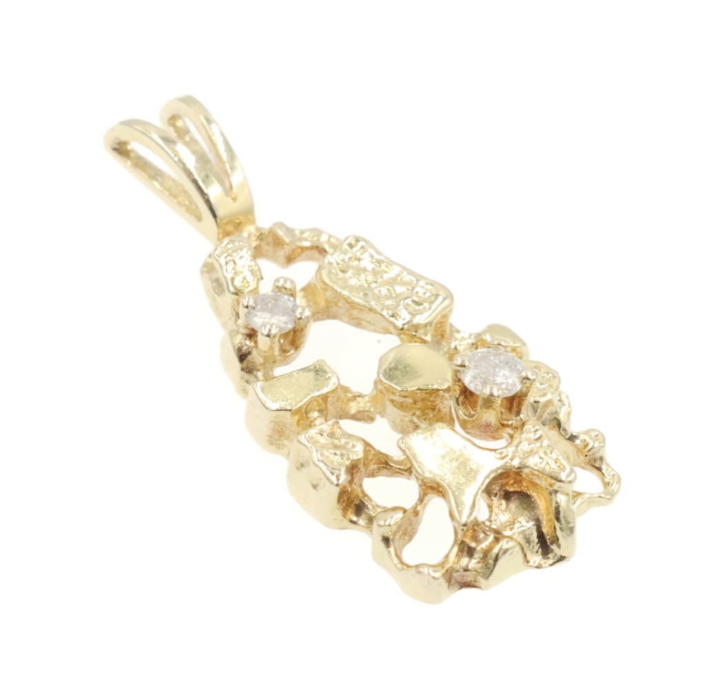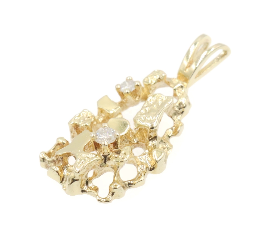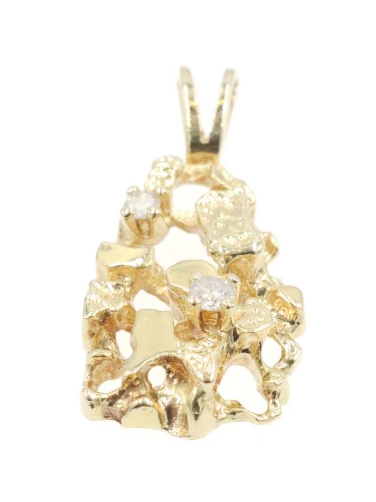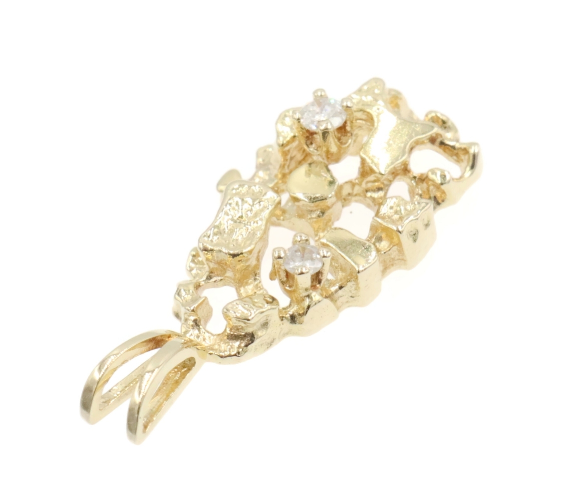 High Shine 14KT Yellow Gold 0.07 Ctw Round Diamond 1" Nugget Statement Pendant. This pendant is approximately 25.8mm in length (including the bail) and 11.4mm in width.