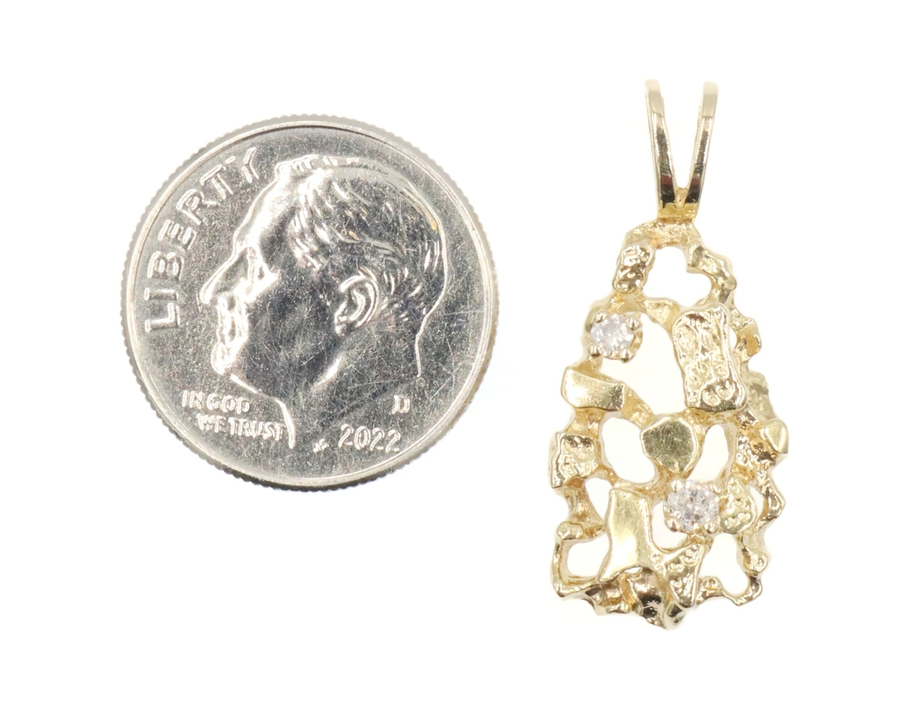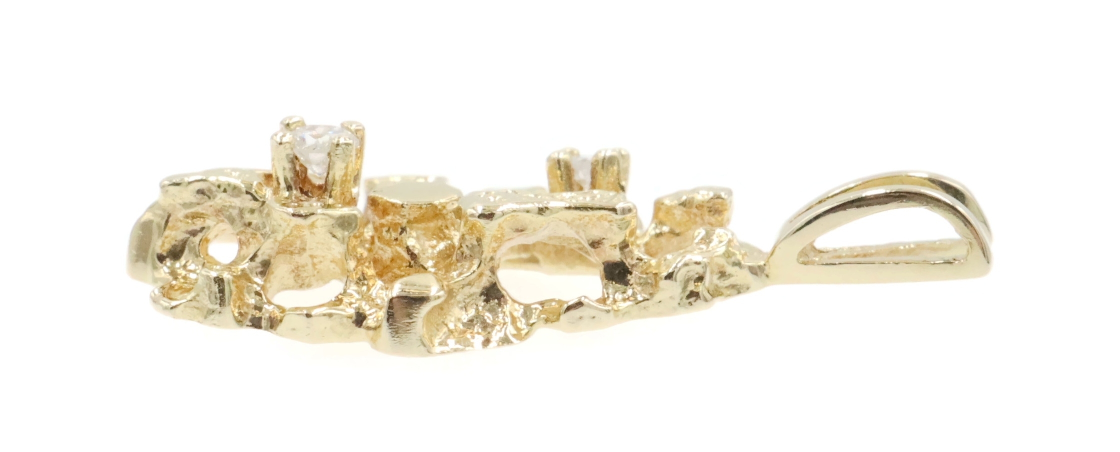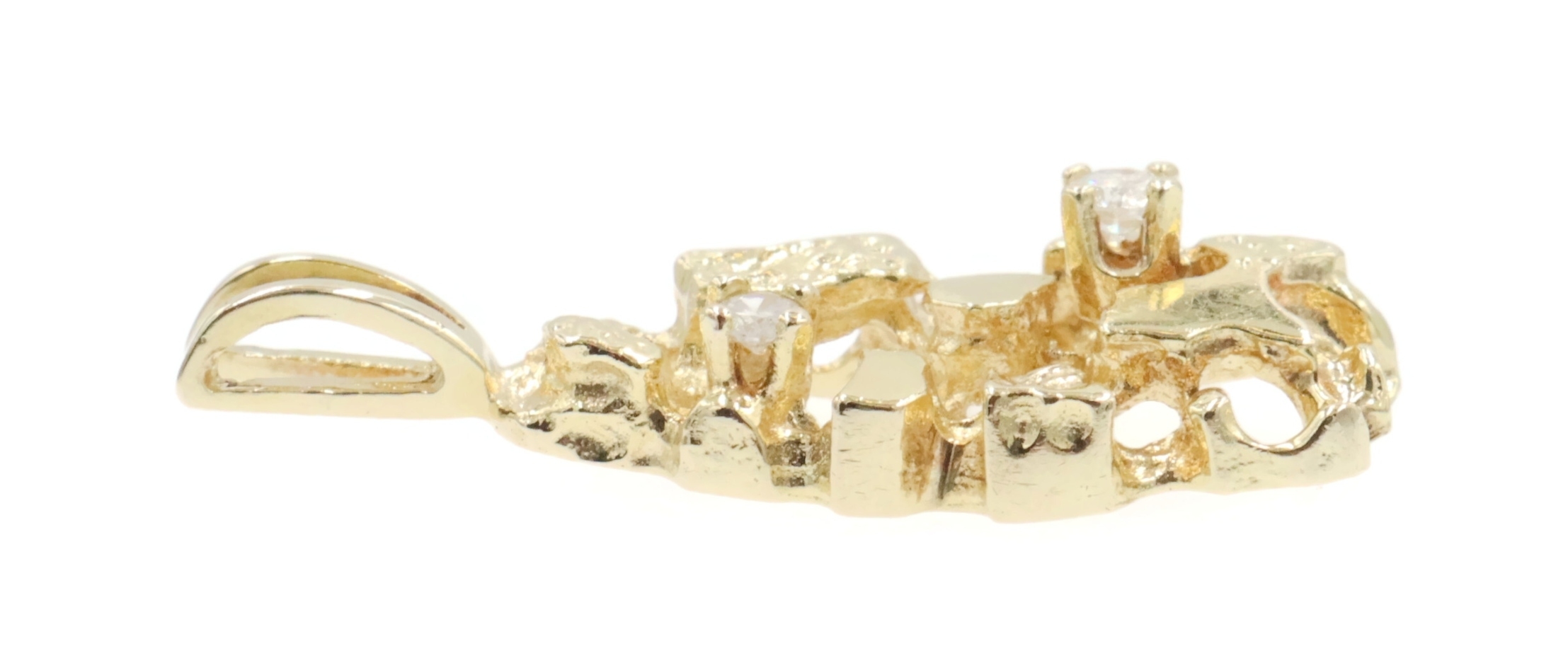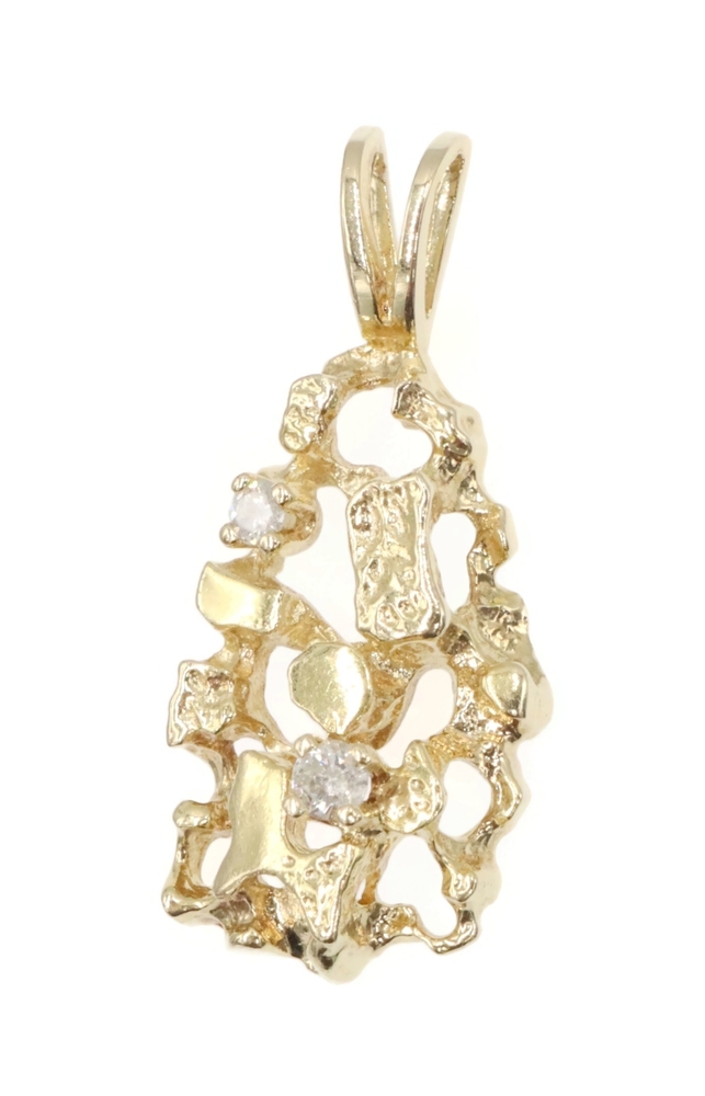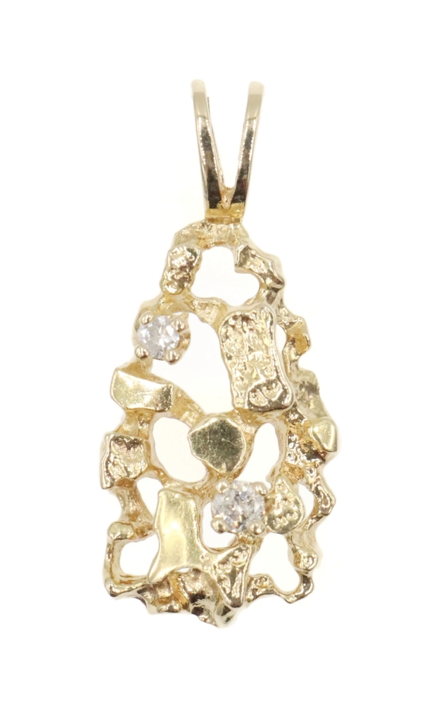 High Shine 14KT Yellow Gold 0.07 Ctw Round Diamond 1" Nugget Statement Pendant. This pendant is approximately 25.8mm in length (including the bail) and 11.4mm in width.