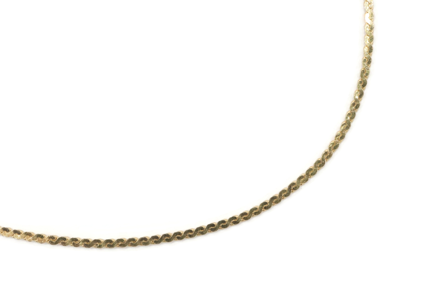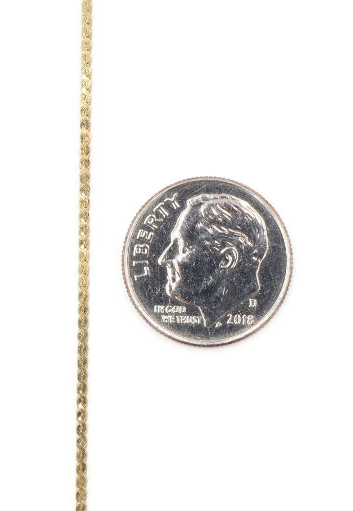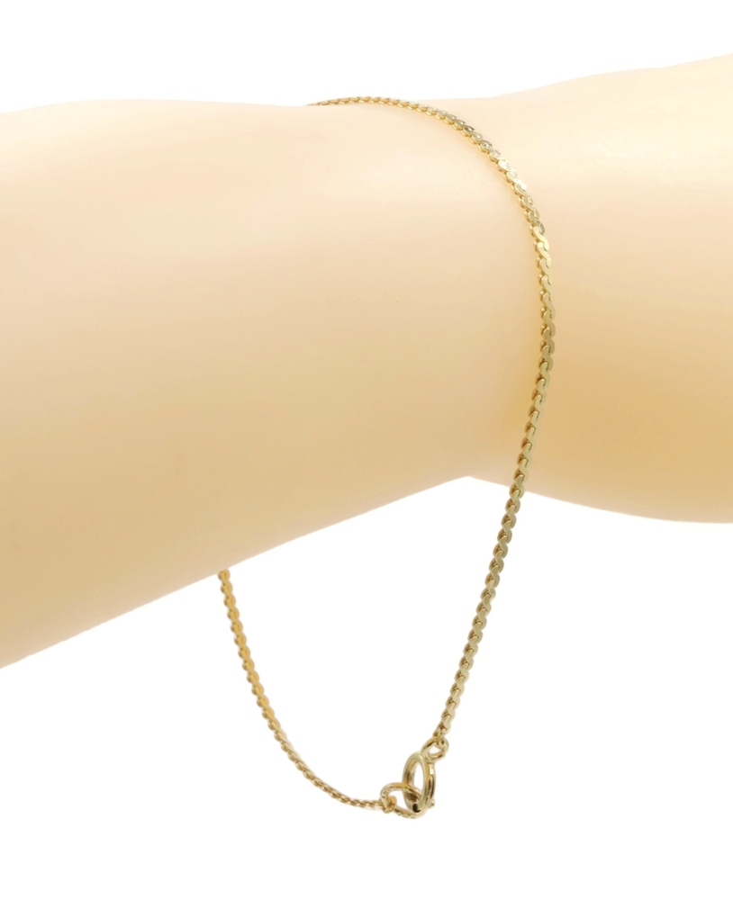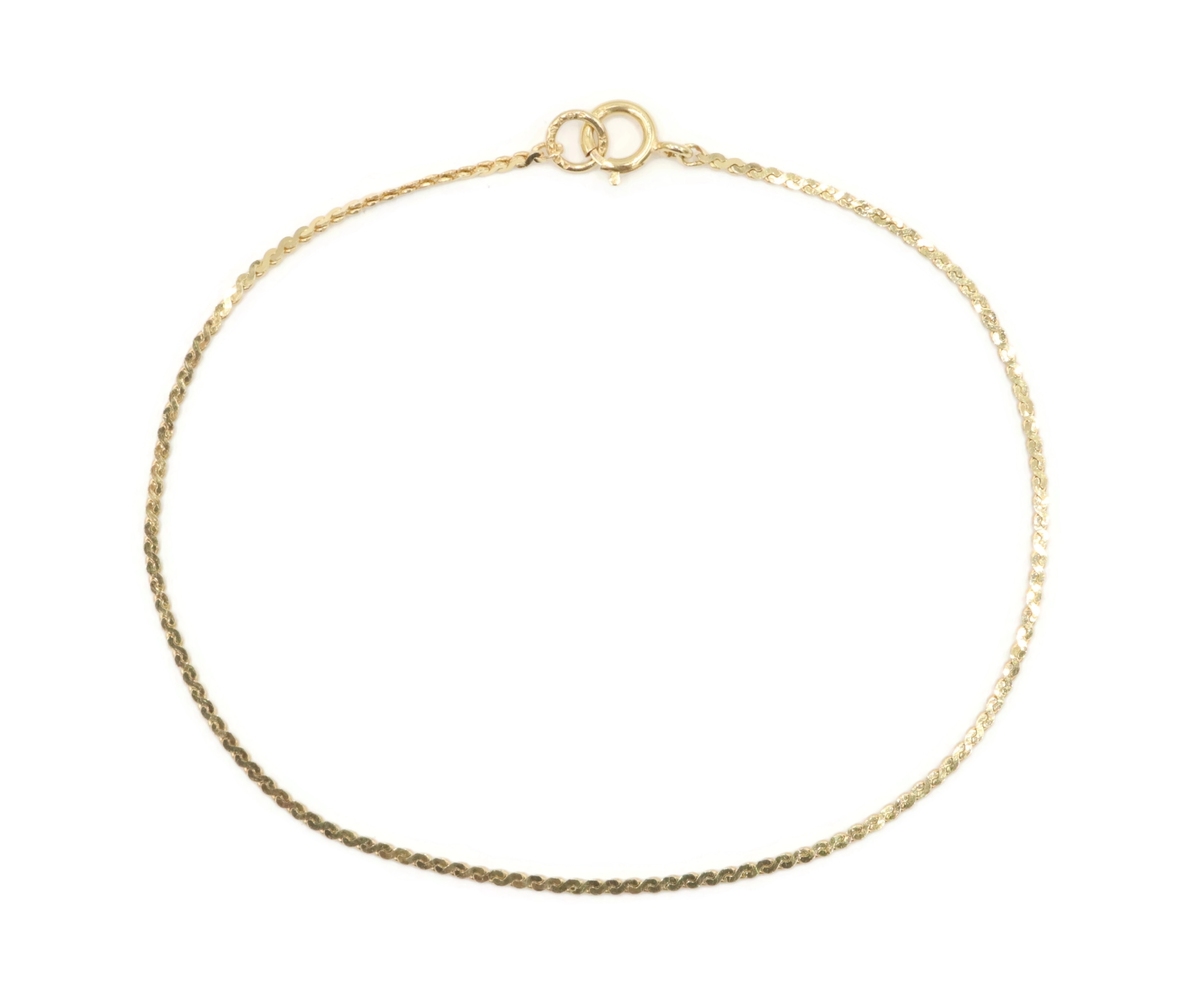 High Shine 14KT Yellow Gold 1.1mm Classic Serpentine Chain Bracelet 7.5" - 1.20g. This bracelet is approximately 7 1/2 inches in length and 1.1mm in width.