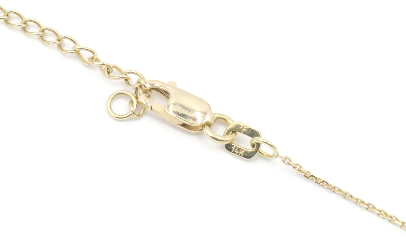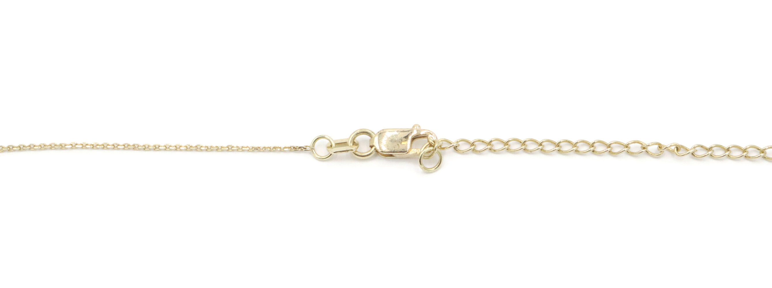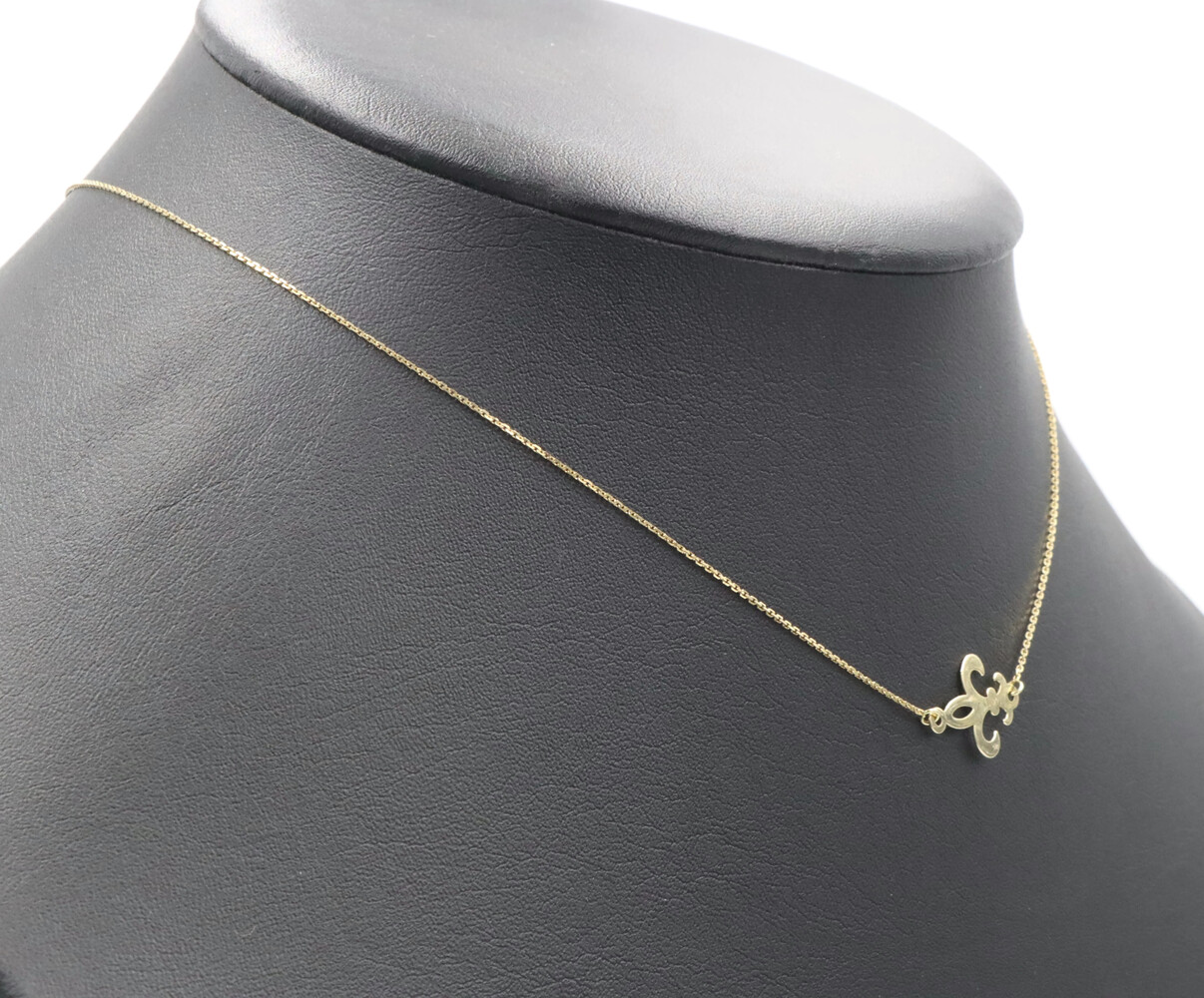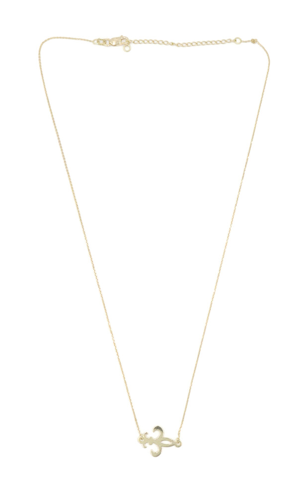 High Shine 14KT Yellow Gold 17mm Fleur-De-Lis Adjustable 17 3/4" Necklace - 1.8g. This fixed fleur-de-lis pendant is approximately 12mm in length and 17mm in width. The length of this necklace is adjustable between 15 inches and 17 3/4 inches.