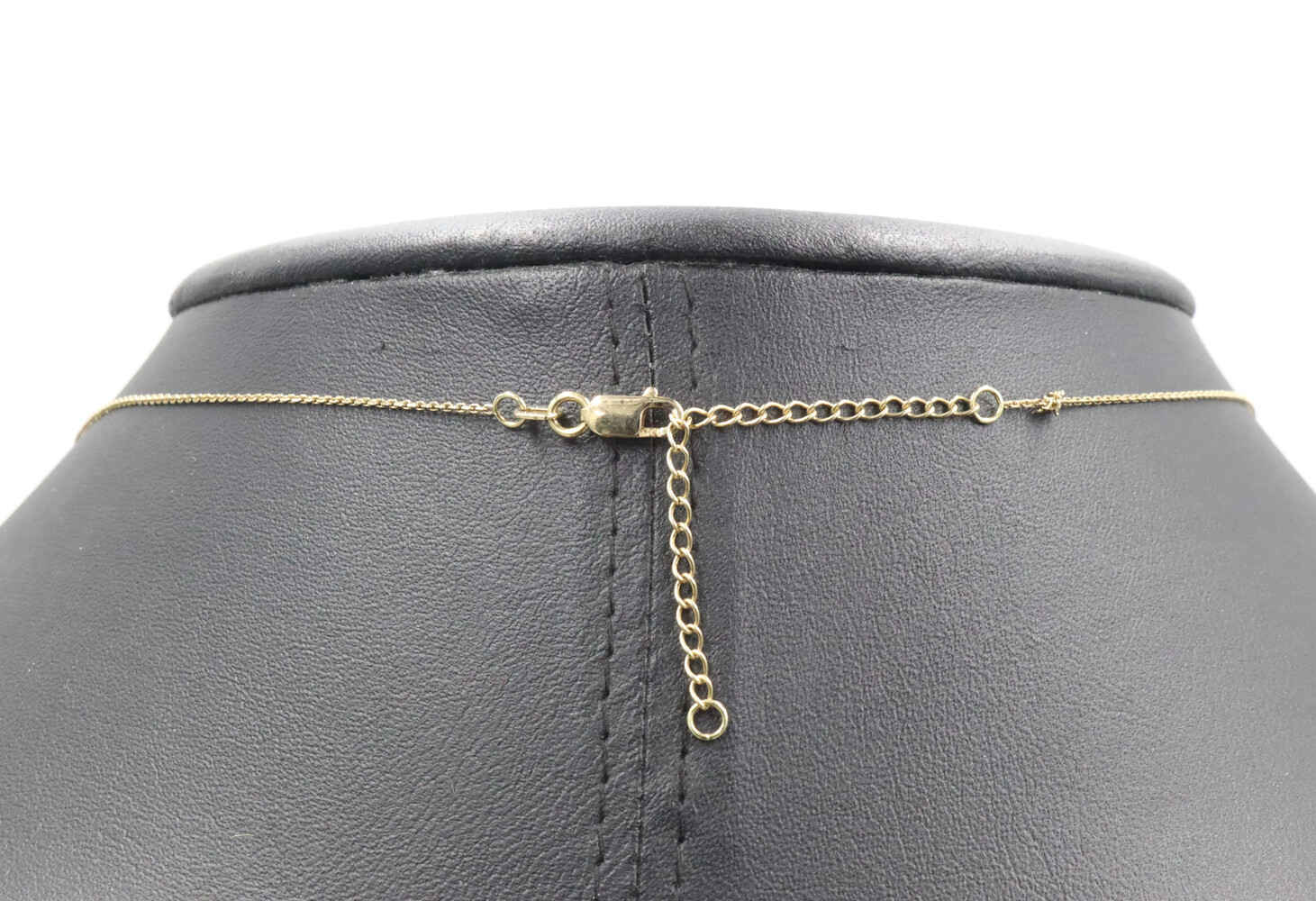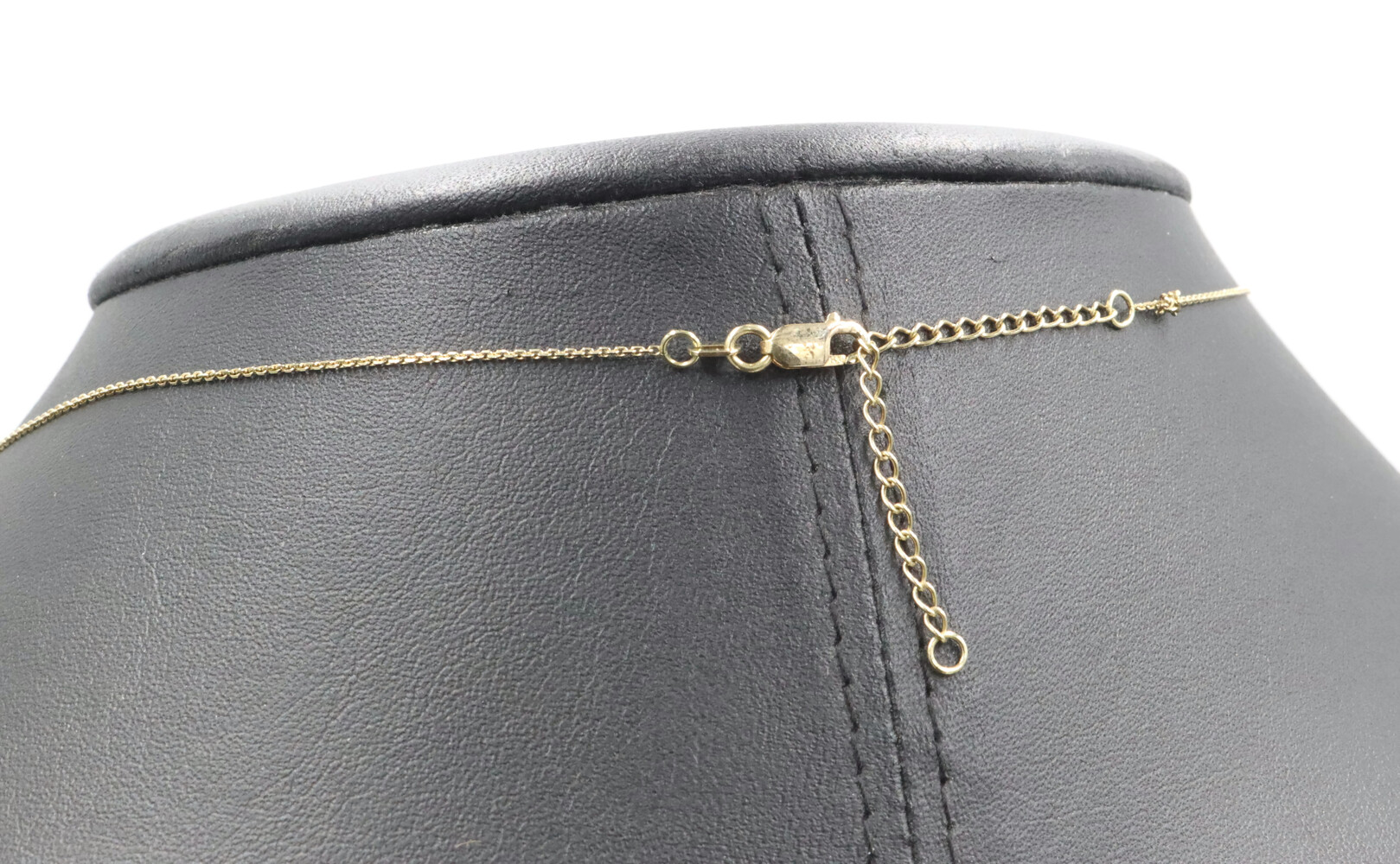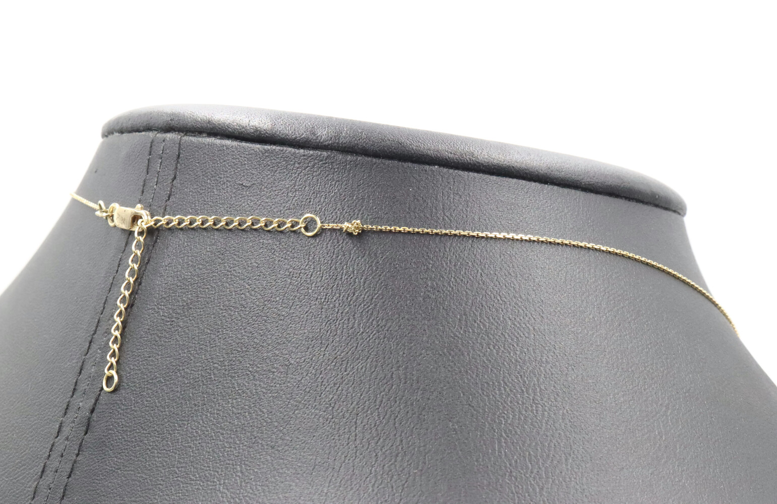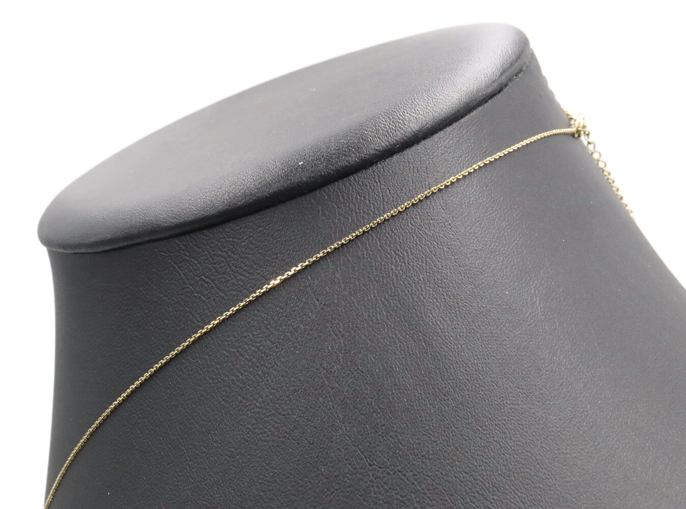 High Shine 14KT Yellow Gold 17mm Fleur-De-Lis Adjustable 17 3/4" Necklace - 1.8g. This fixed fleur-de-lis pendant is approximately 12mm in length and 17mm in width. The length of this necklace is adjustable between 15 inches and 17 3/4 inches.