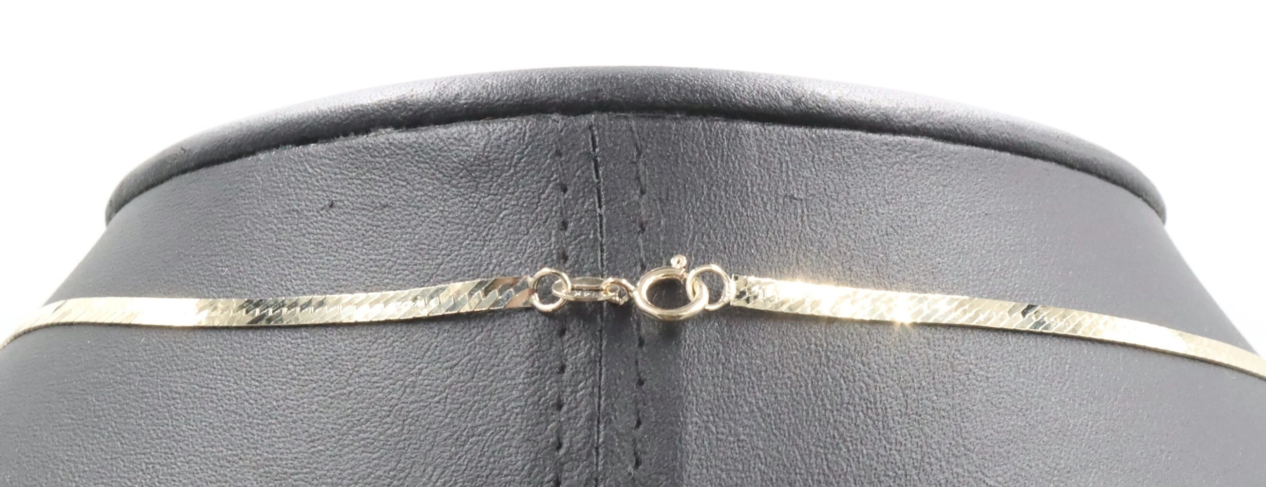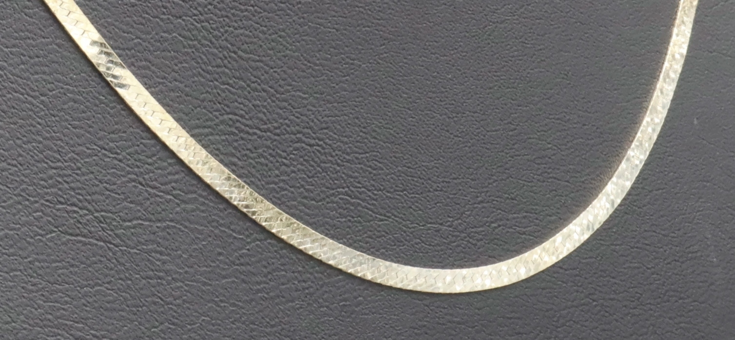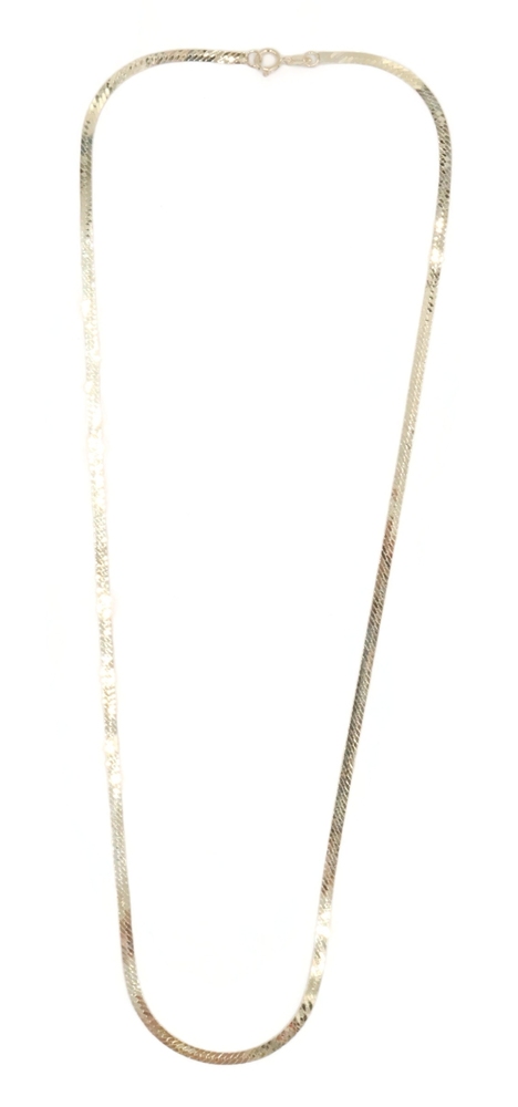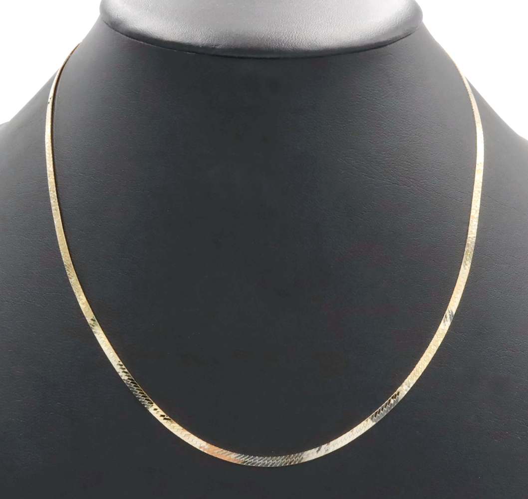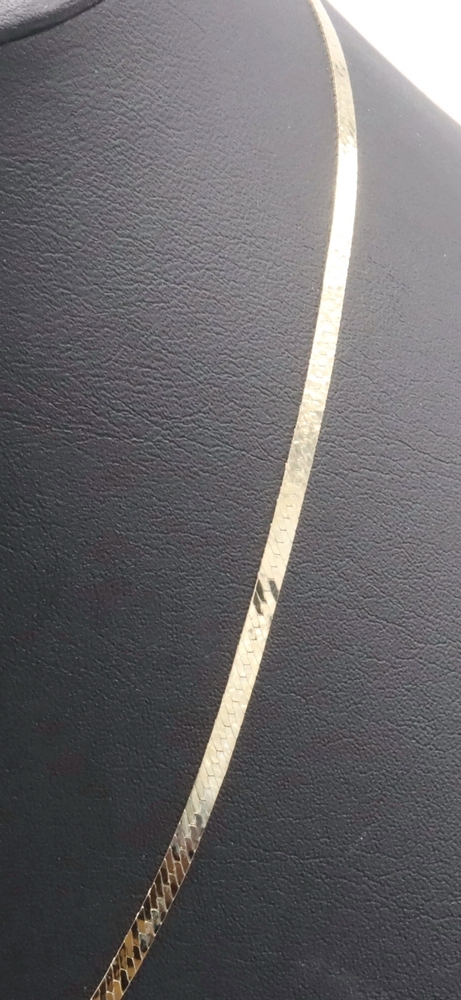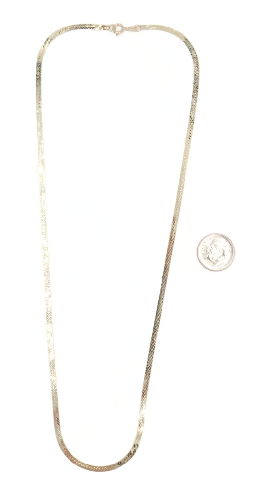 High Shine 14KT Yellow Gold 2.5mm Classic Herringbone Chain Necklace 20" - 5.76g. This necklace is approximately 20 inches in length and 2.5mm in width.