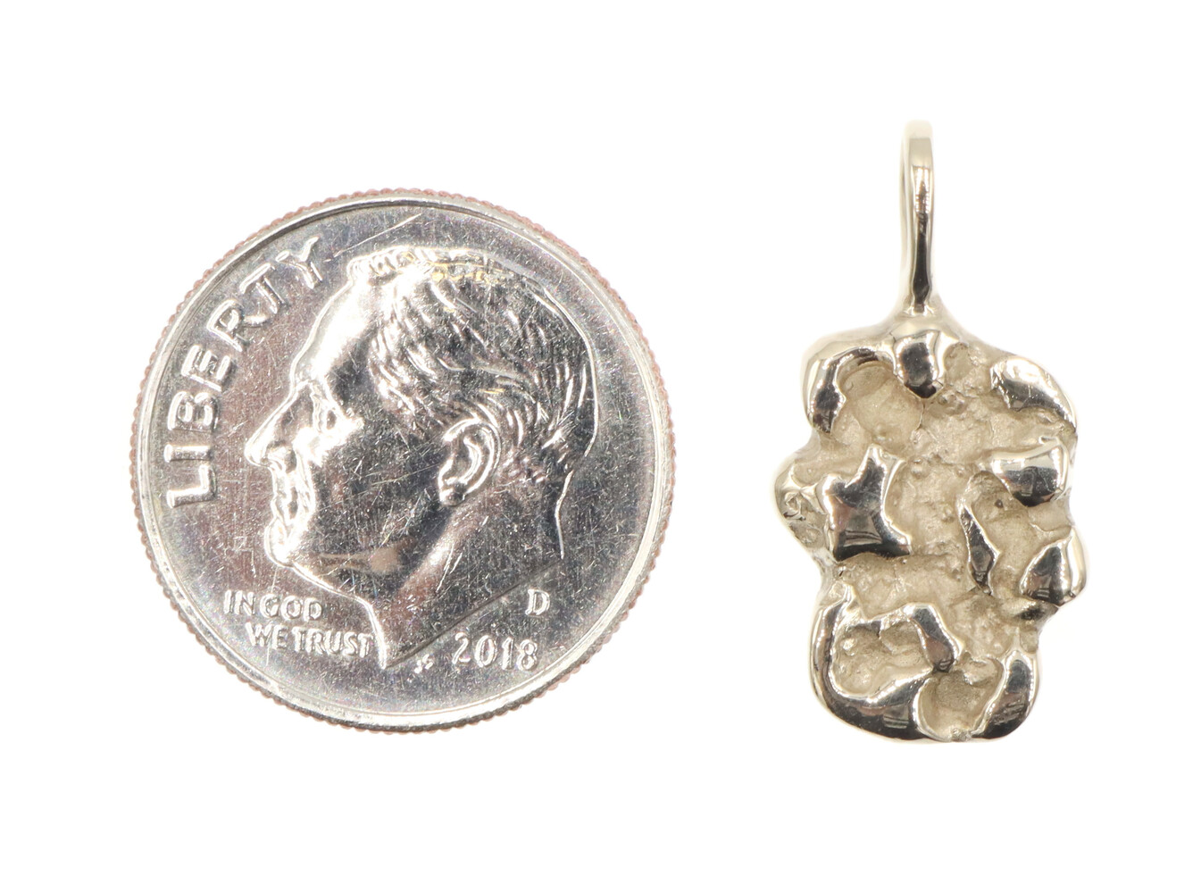 High Shine 14KT Yellow Gold 20.2mm Small Retro-Style Nugget Necklace Pendant 3g. This pendant is approximately 20.2mm in length (including the bail) and 10.1mm in width.