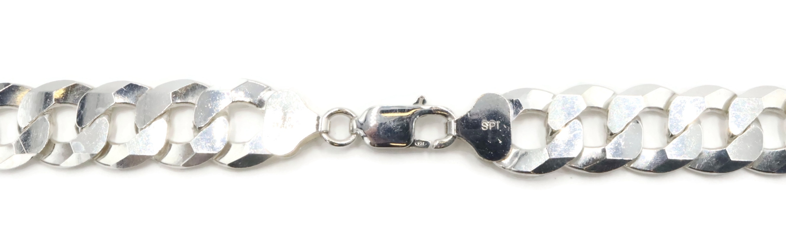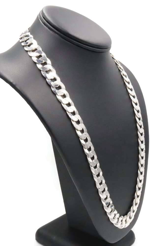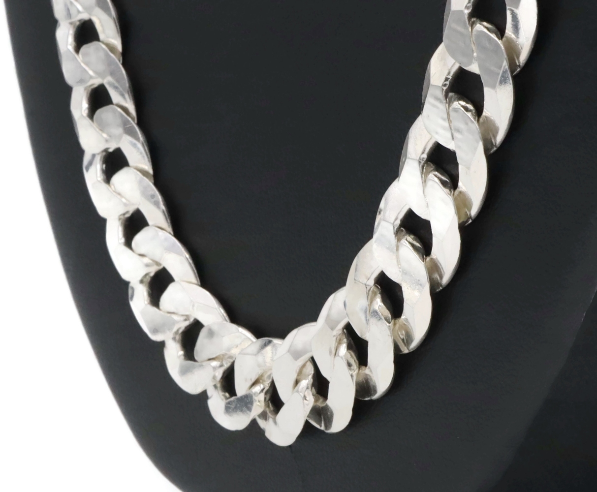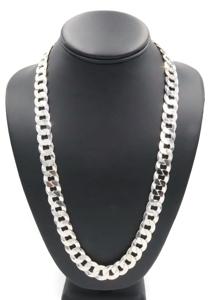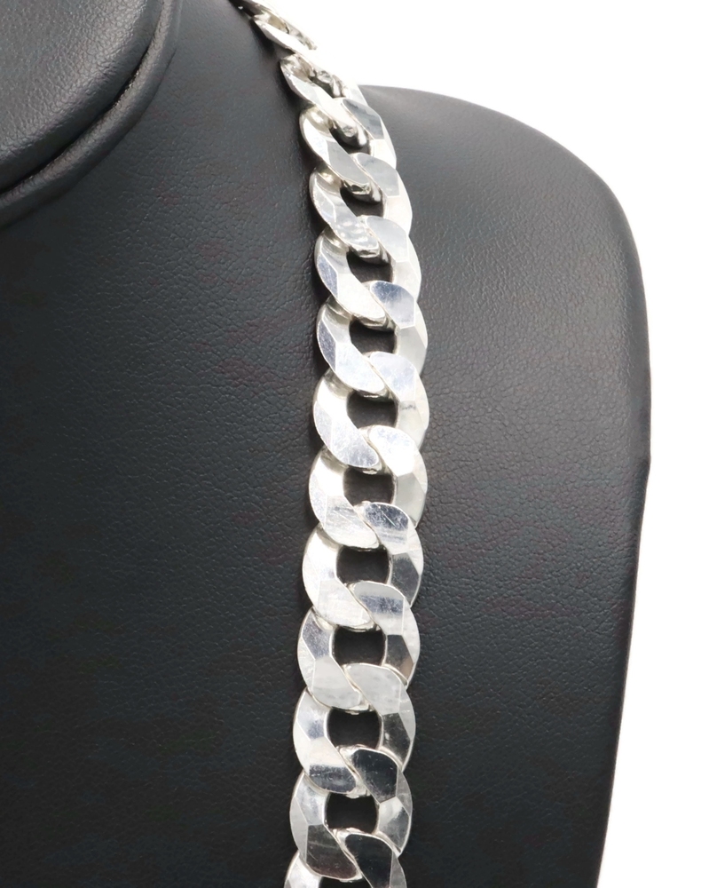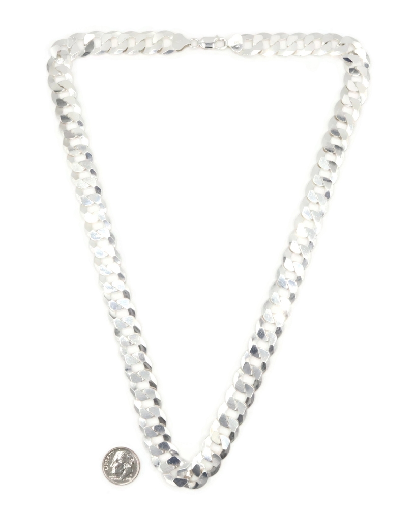 High Shine Sterling Silver (925) 13.3mm Heavy Curb Chain Necklace 24" - 102.17g. This necklace is approximately 24 inches in length and 13.3mm in width.