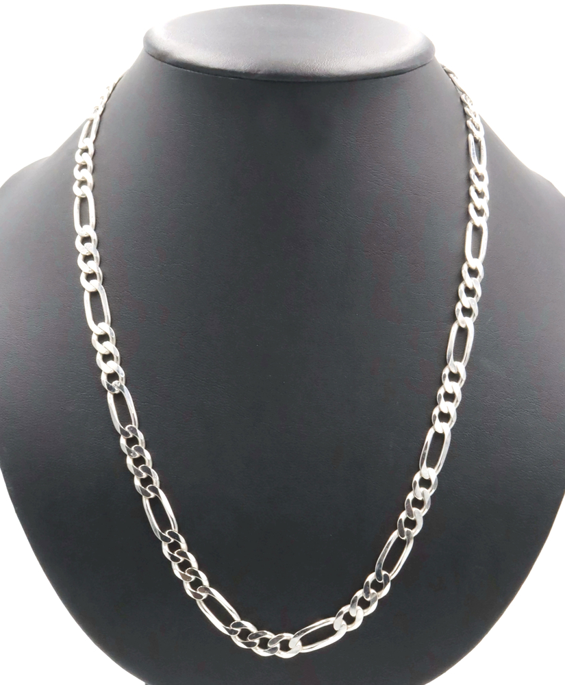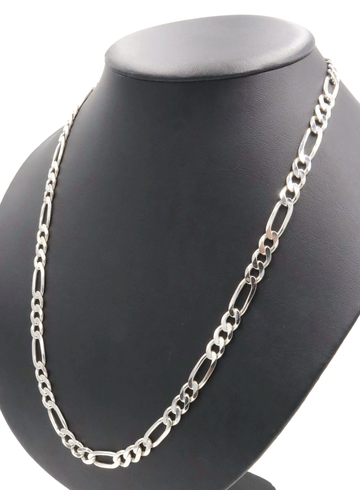High Shine Sterling Silver 925 - 7.7mm Classic Figaro Chain Necklace 24.5" 44.6g | USA Pawn