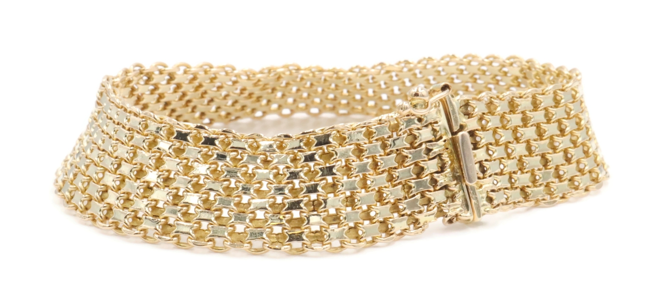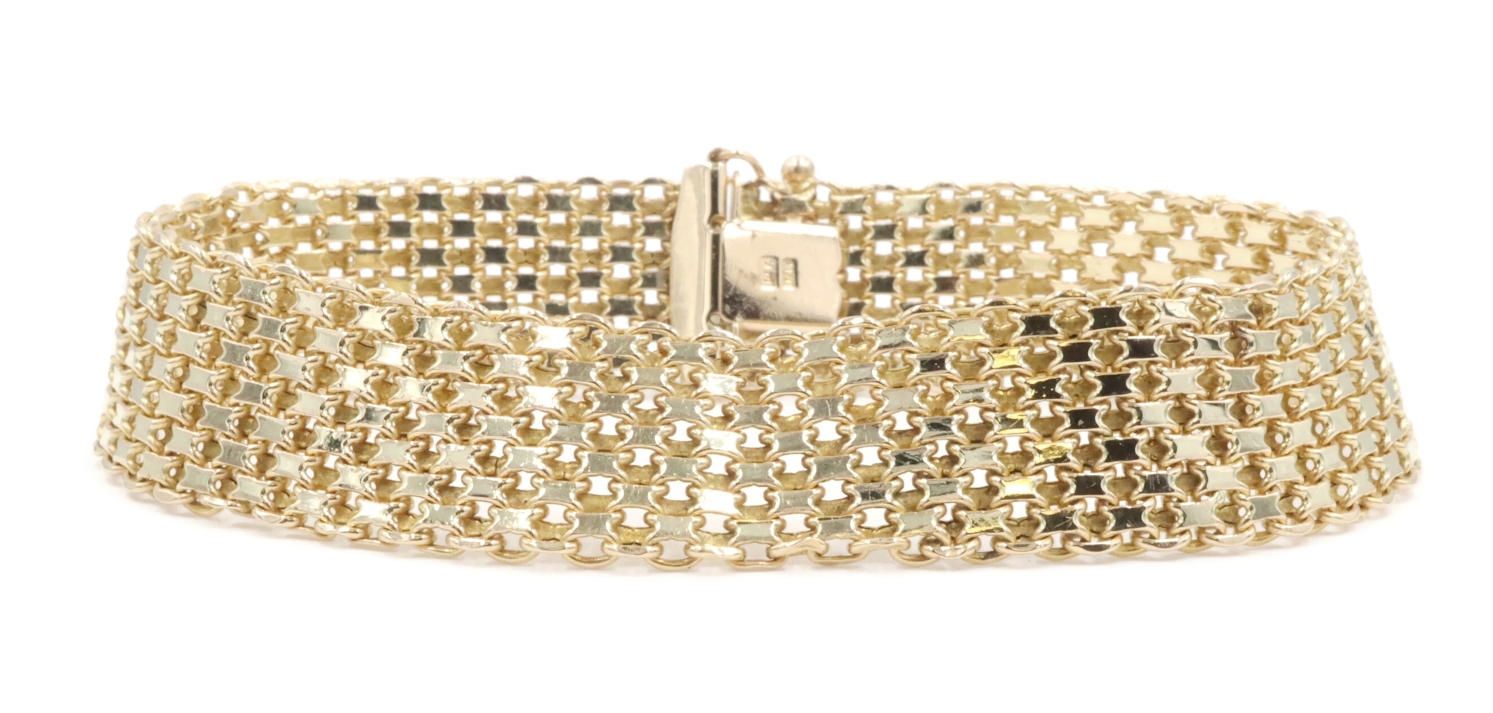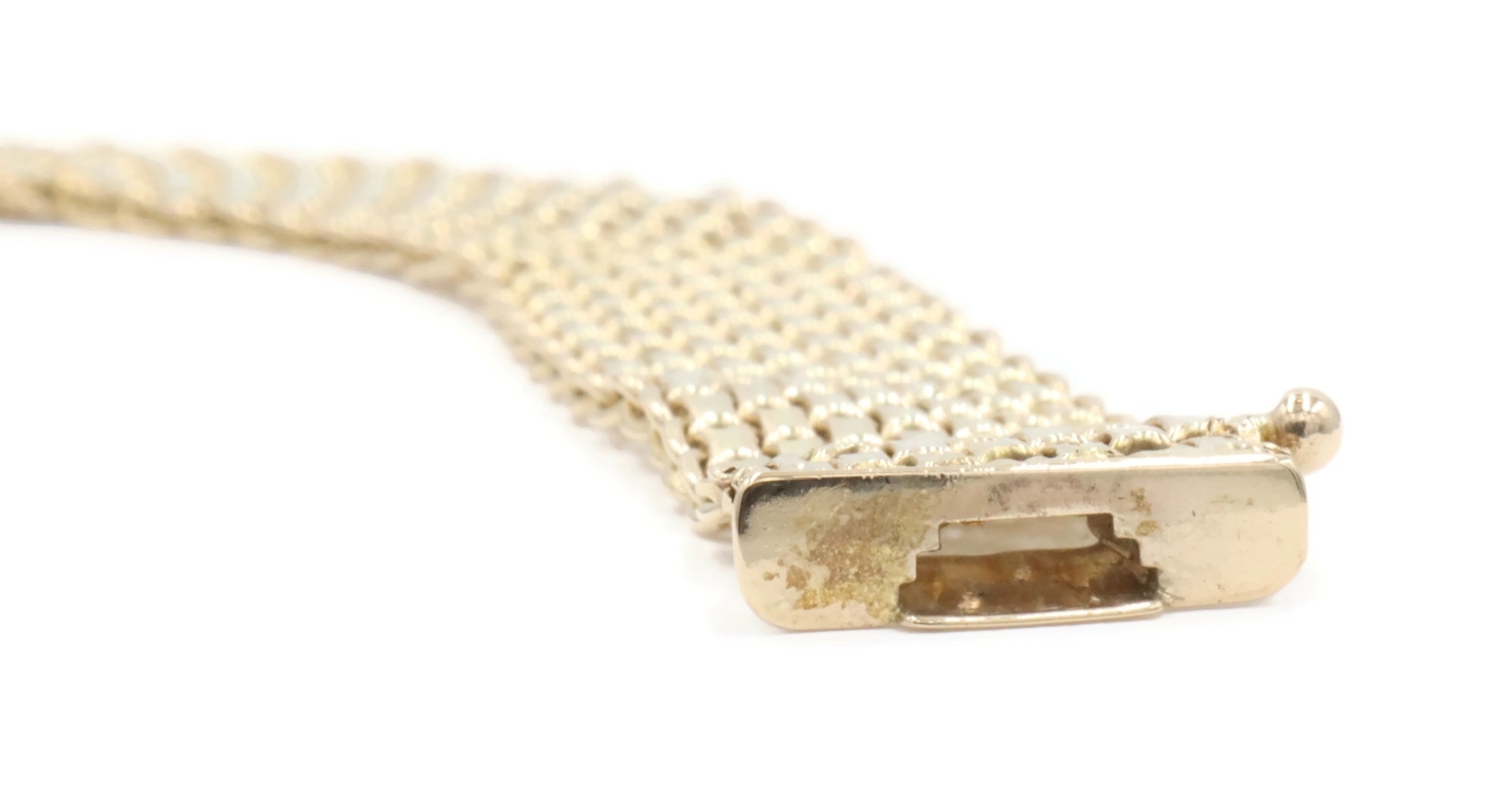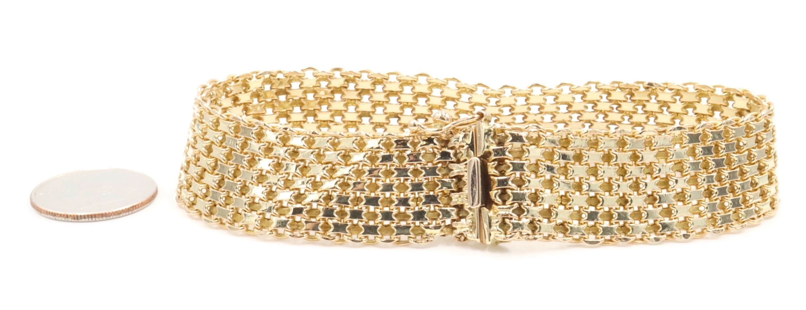 Italy 14KT Yellow Gold 14.7mm Wide Estate Bismark Mesh Chain Bracelet 8" 14.6g | USA Pawn