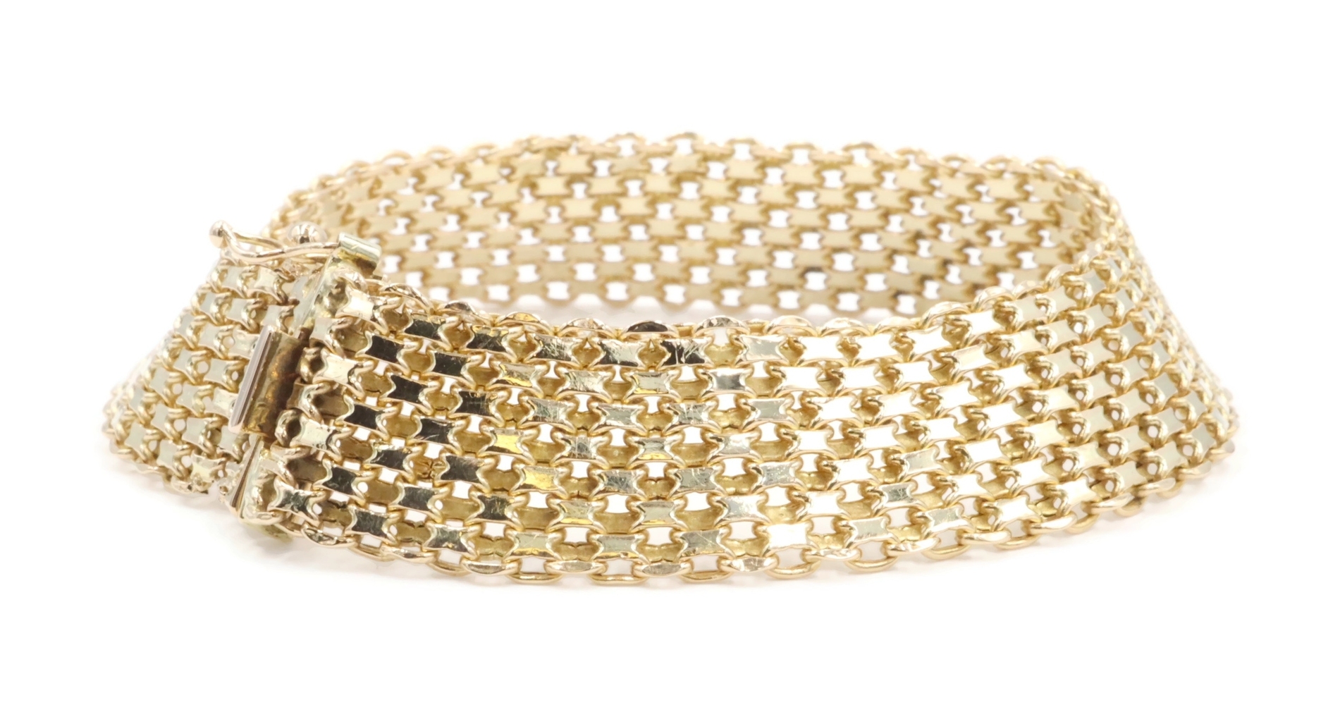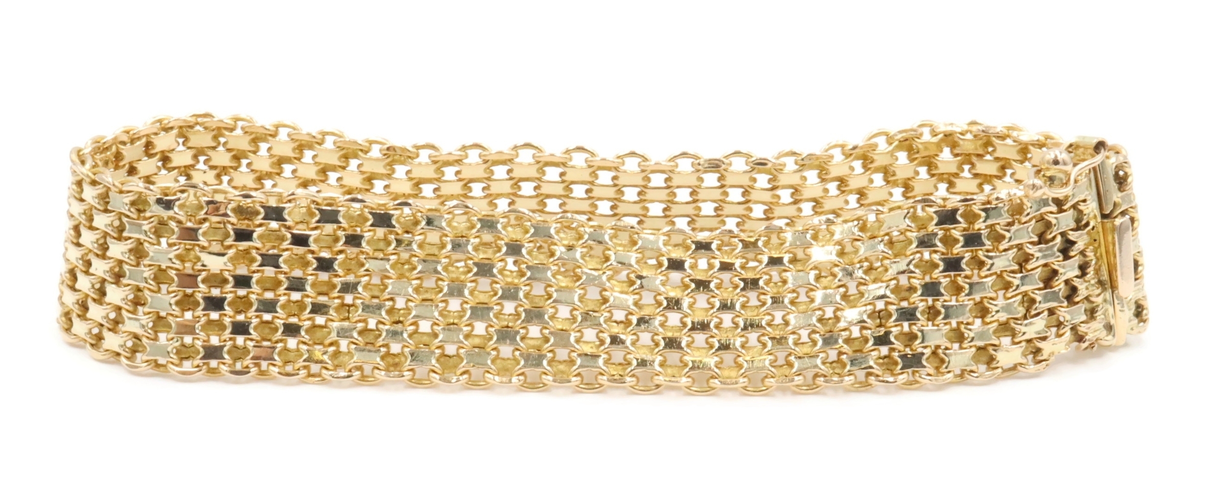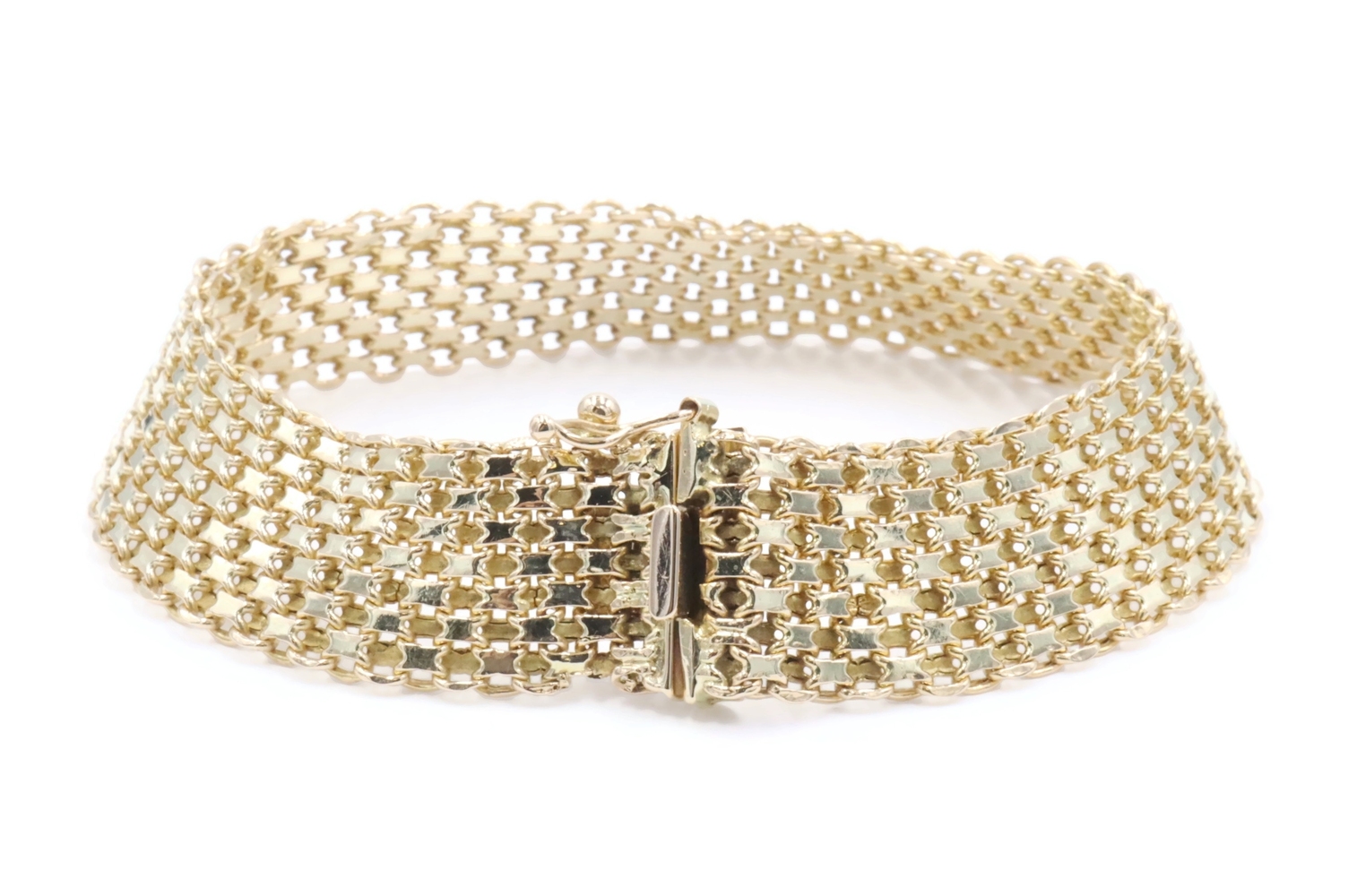 Italy 14KT Yellow Gold 14.7mm Wide Estate Bismark Mesh Chain Bracelet 8" 14.6g | USA Pawn