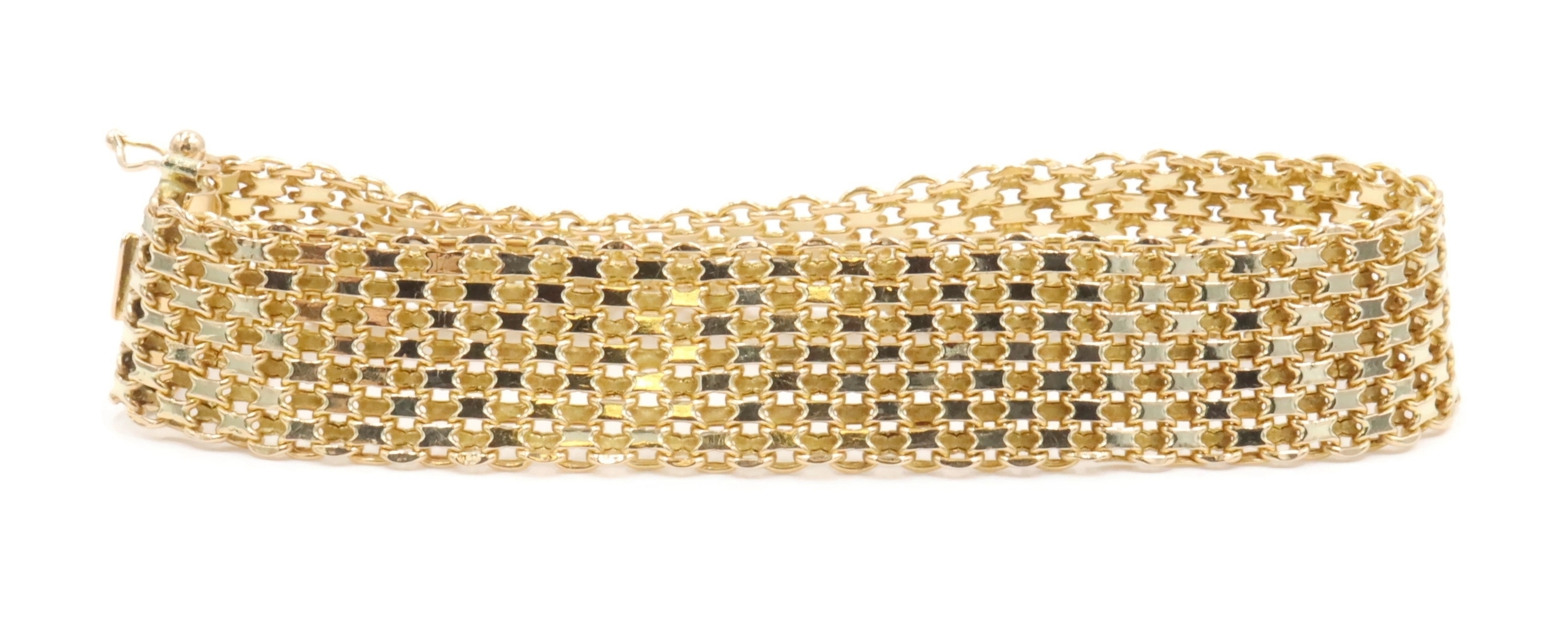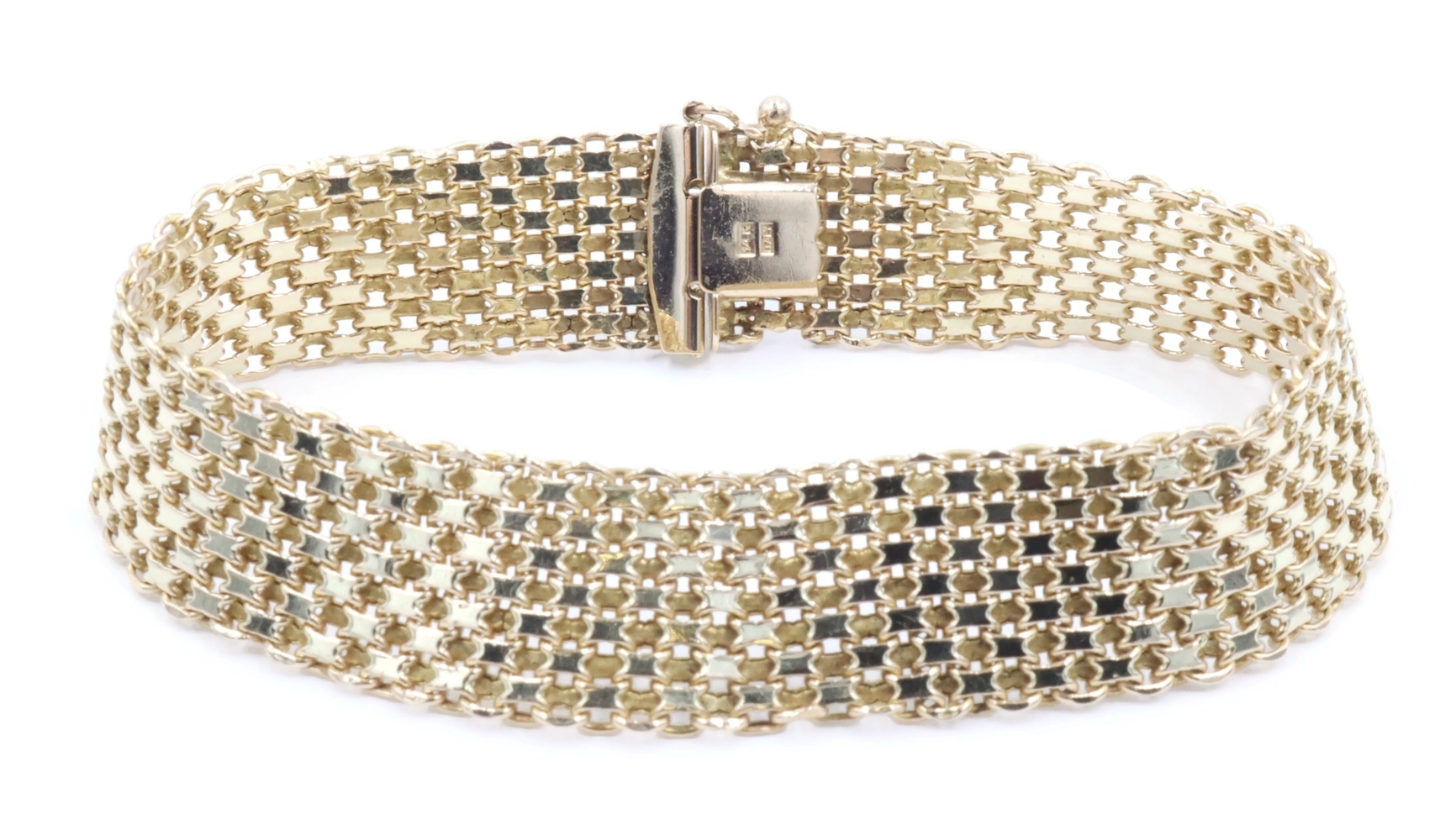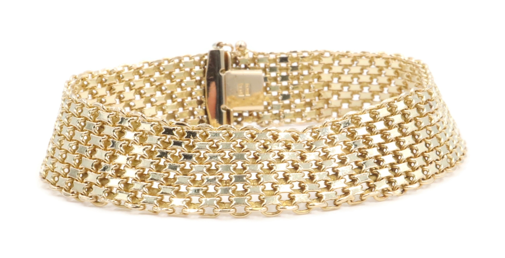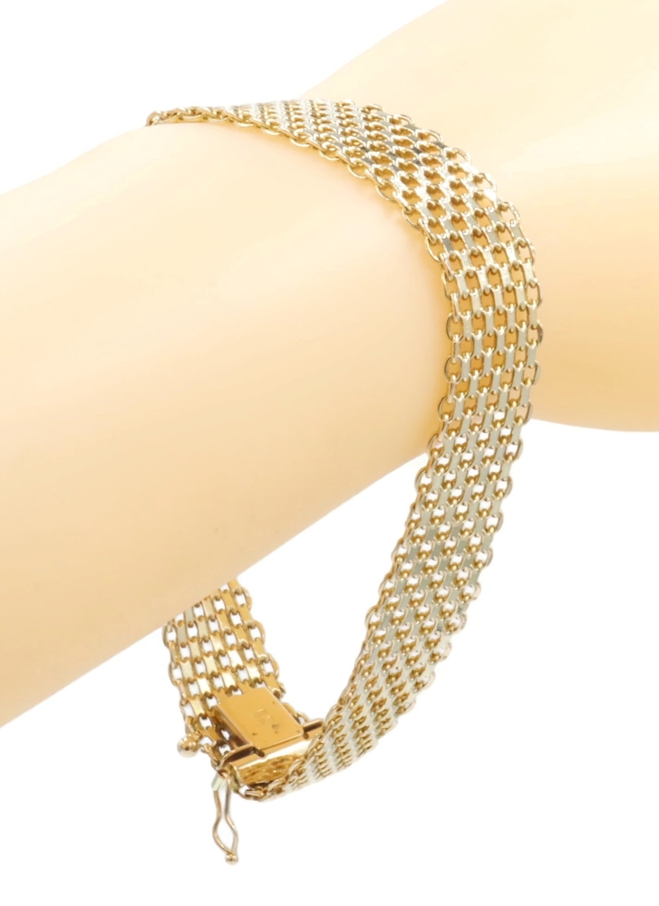 Italy 14KT Yellow Gold 14.7mm Wide Estate Bismark Mesh Chain Bracelet 8" 14.6g | USA Pawn