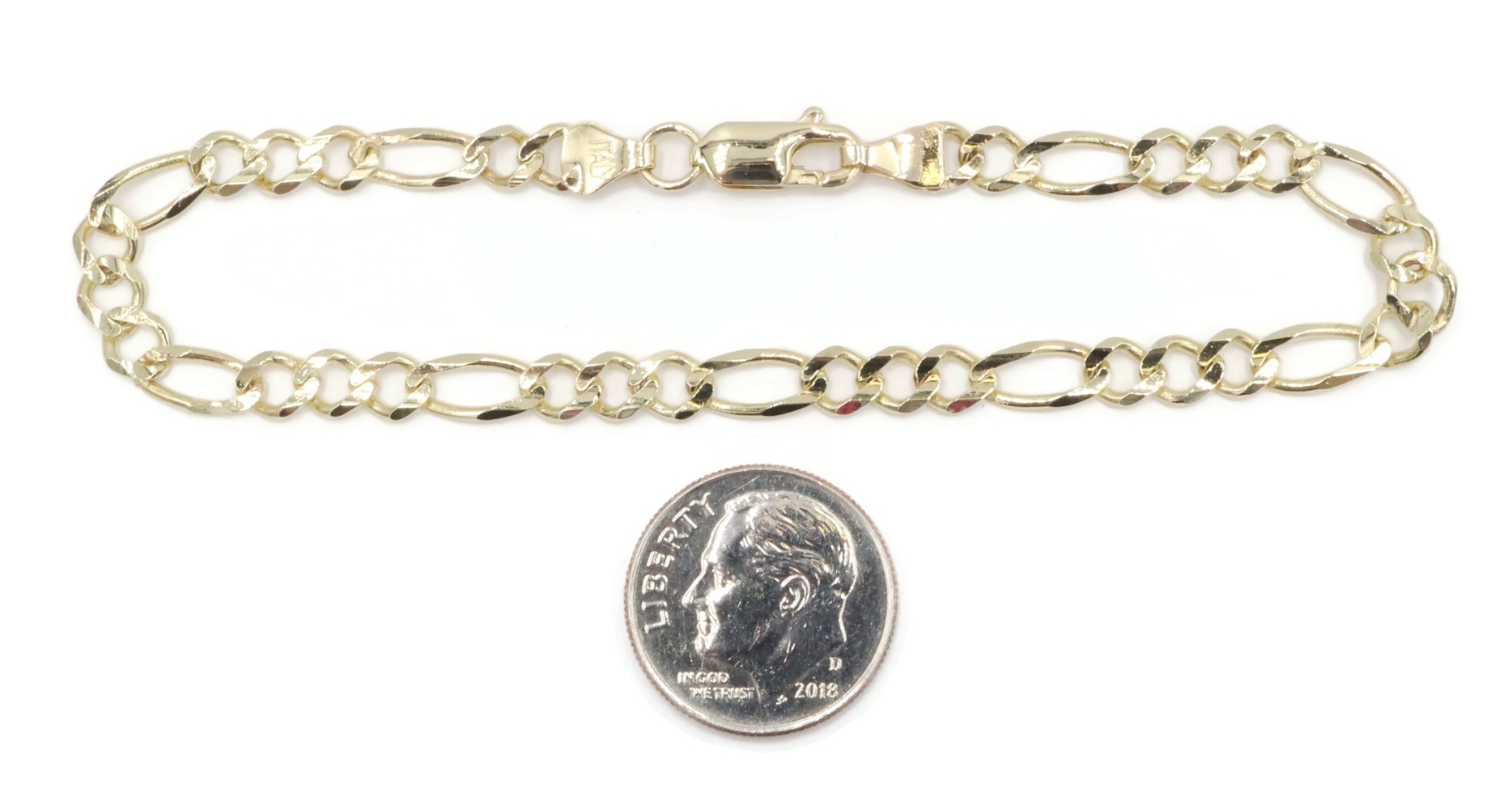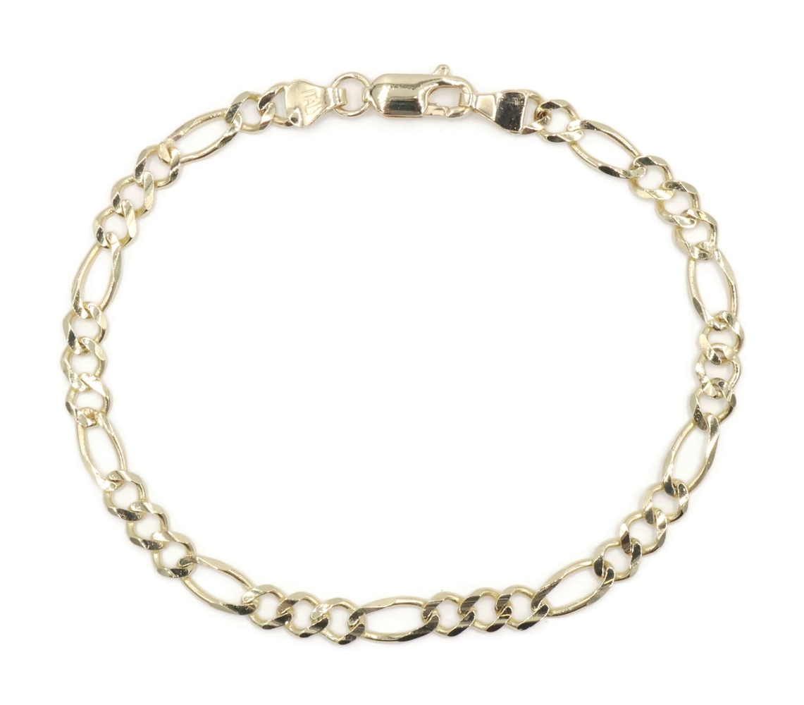 Italy High Shine 10KT Yellow Gold 4.5mm Classic Figaro Chain Bracelet 7 3/4" GM. This bracelet is approximately 7 3/4 inches in length and 4.5mm in width.