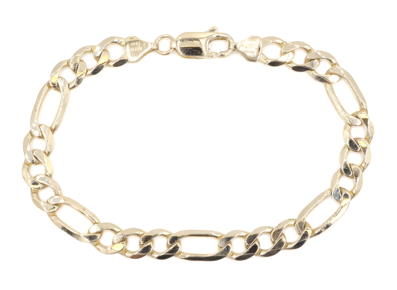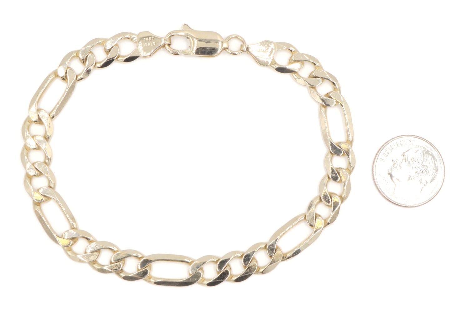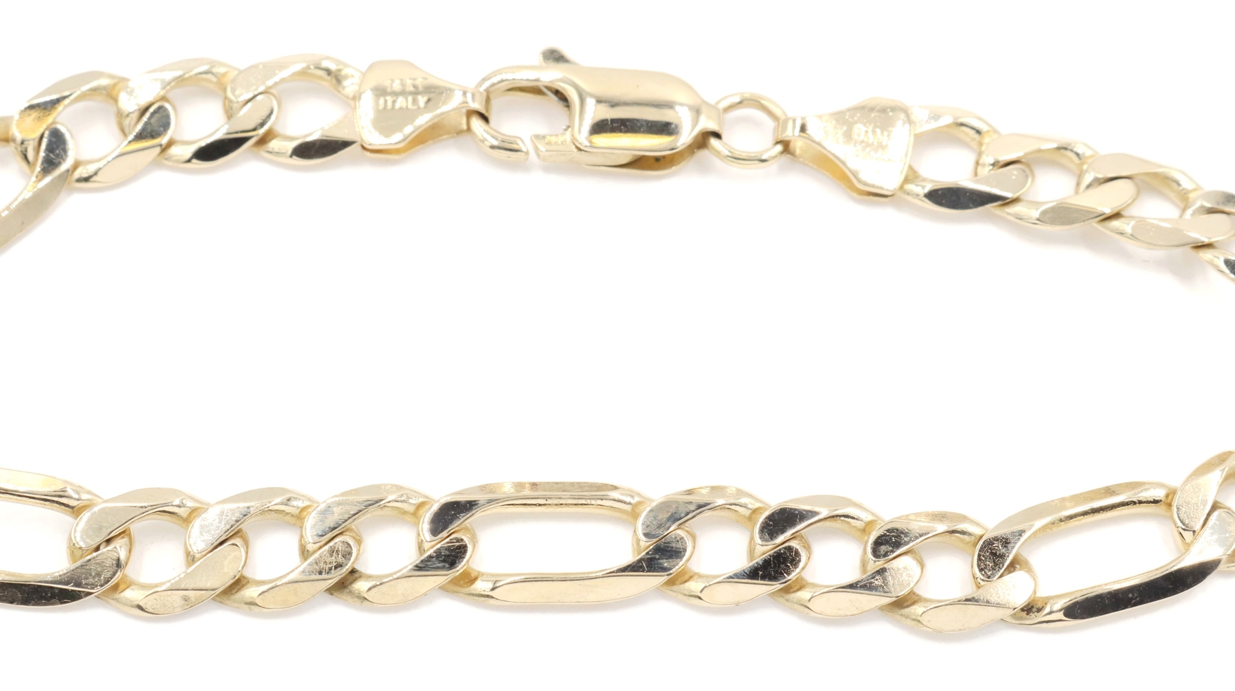 Italy High Shine 14KT Yellow Gold 7.7mm Classic Figaro Chain Bracelet 8.5" 17.8g | USA Pawn