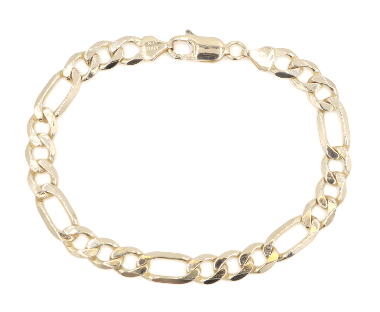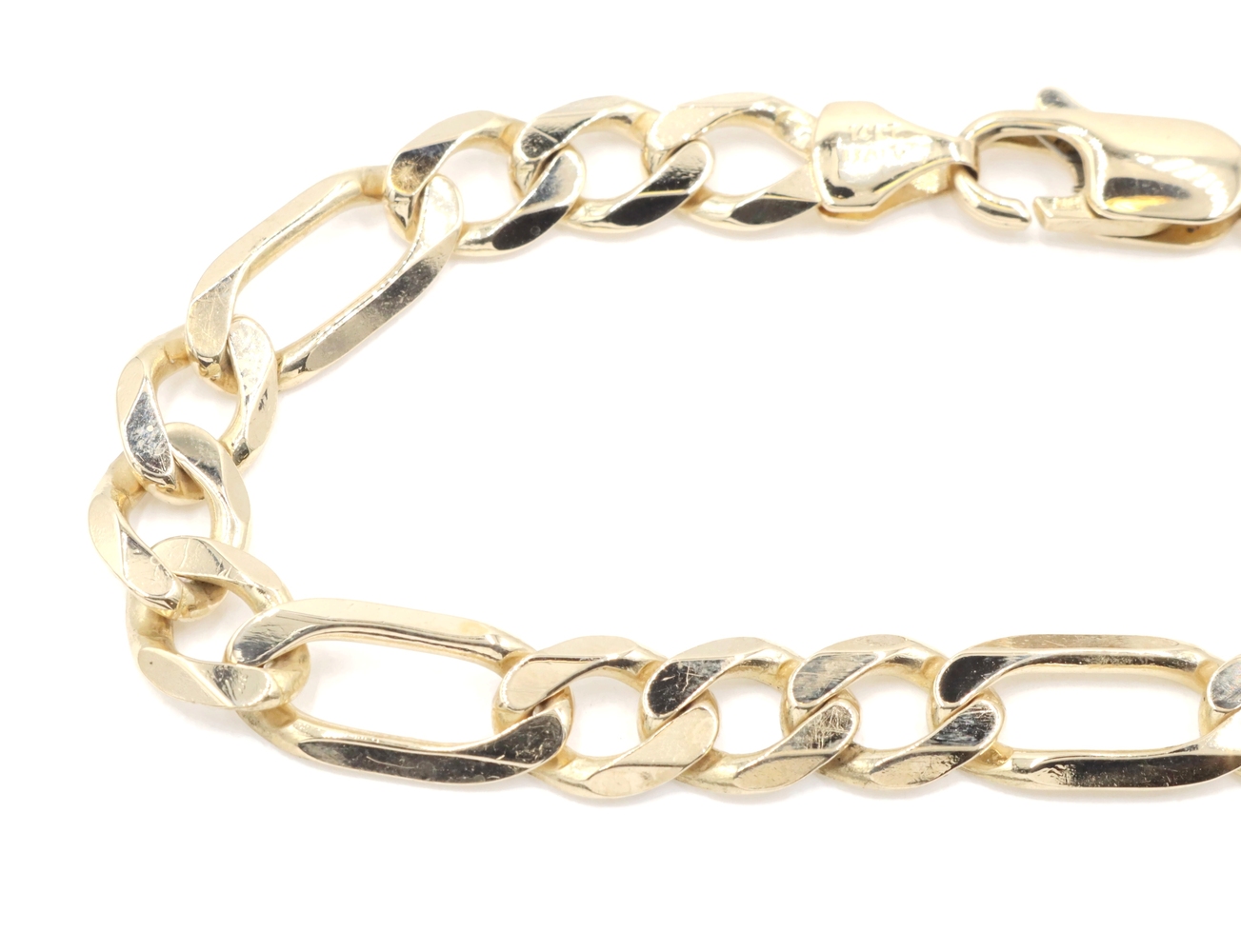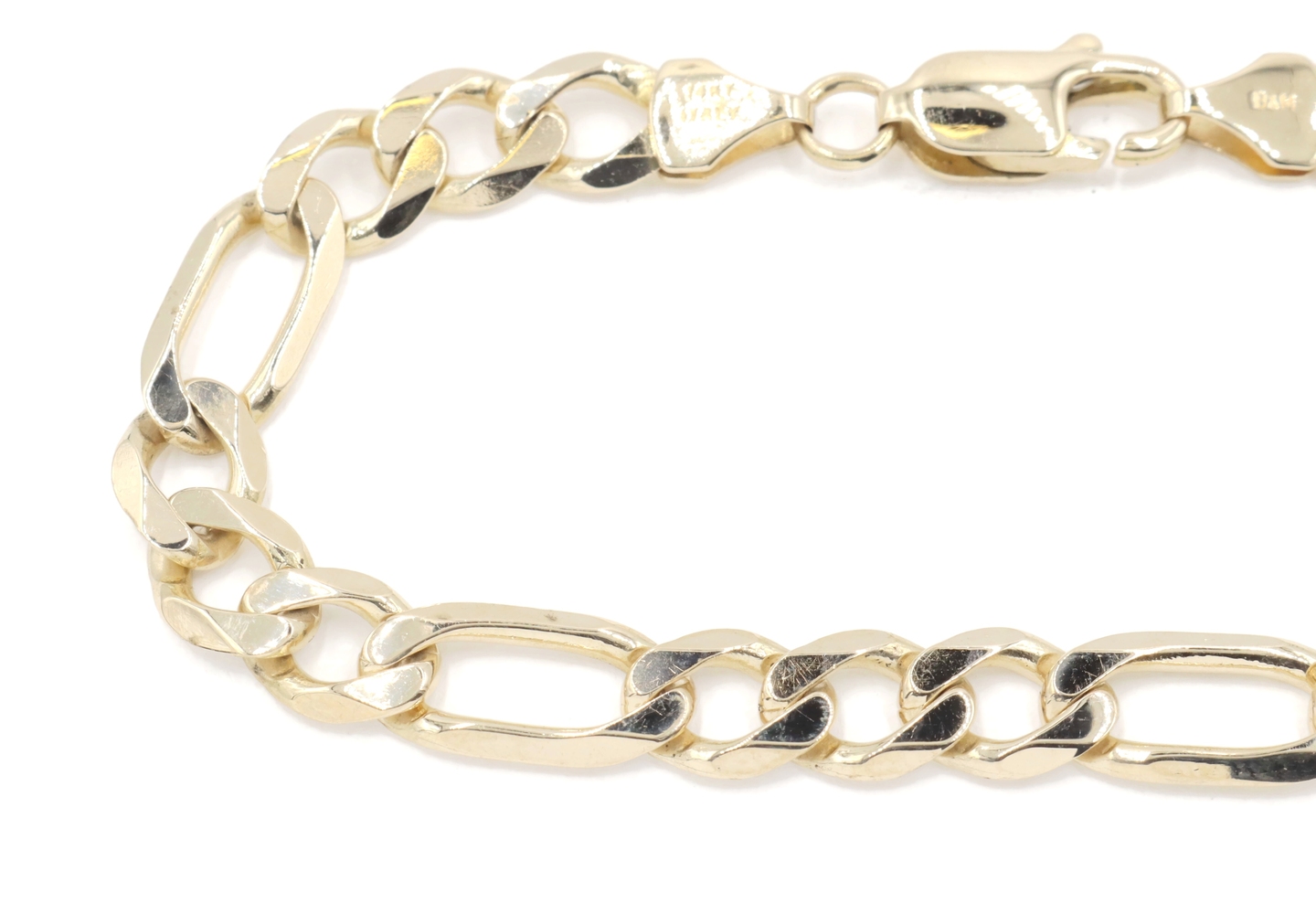 Italy High Shine 14KT Yellow Gold 7.7mm Classic Figaro Chain Bracelet 8.5" 17.8g | USA Pawn