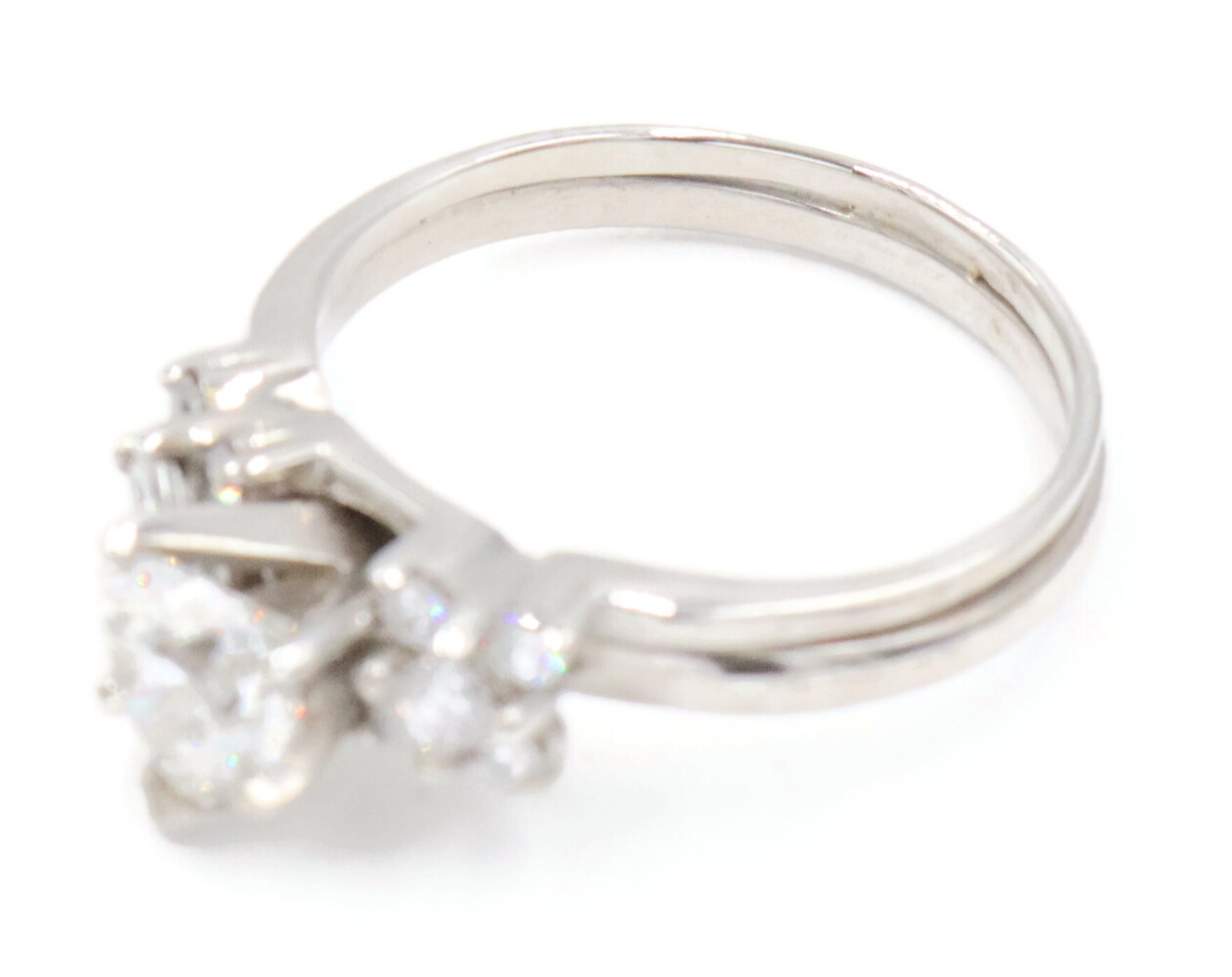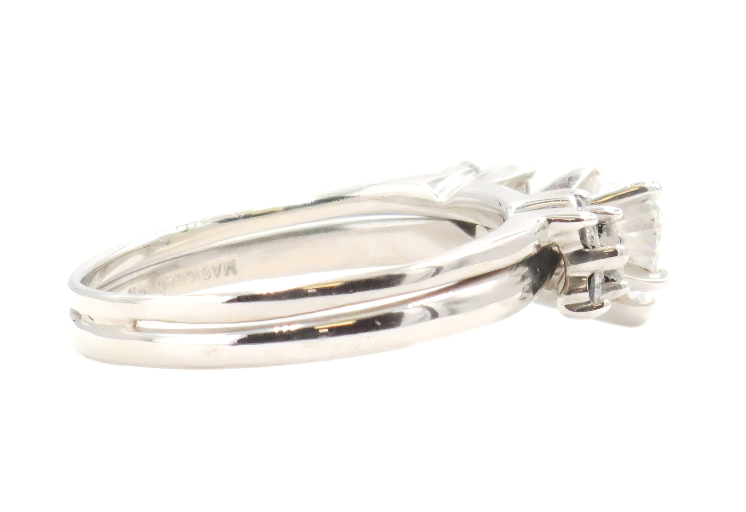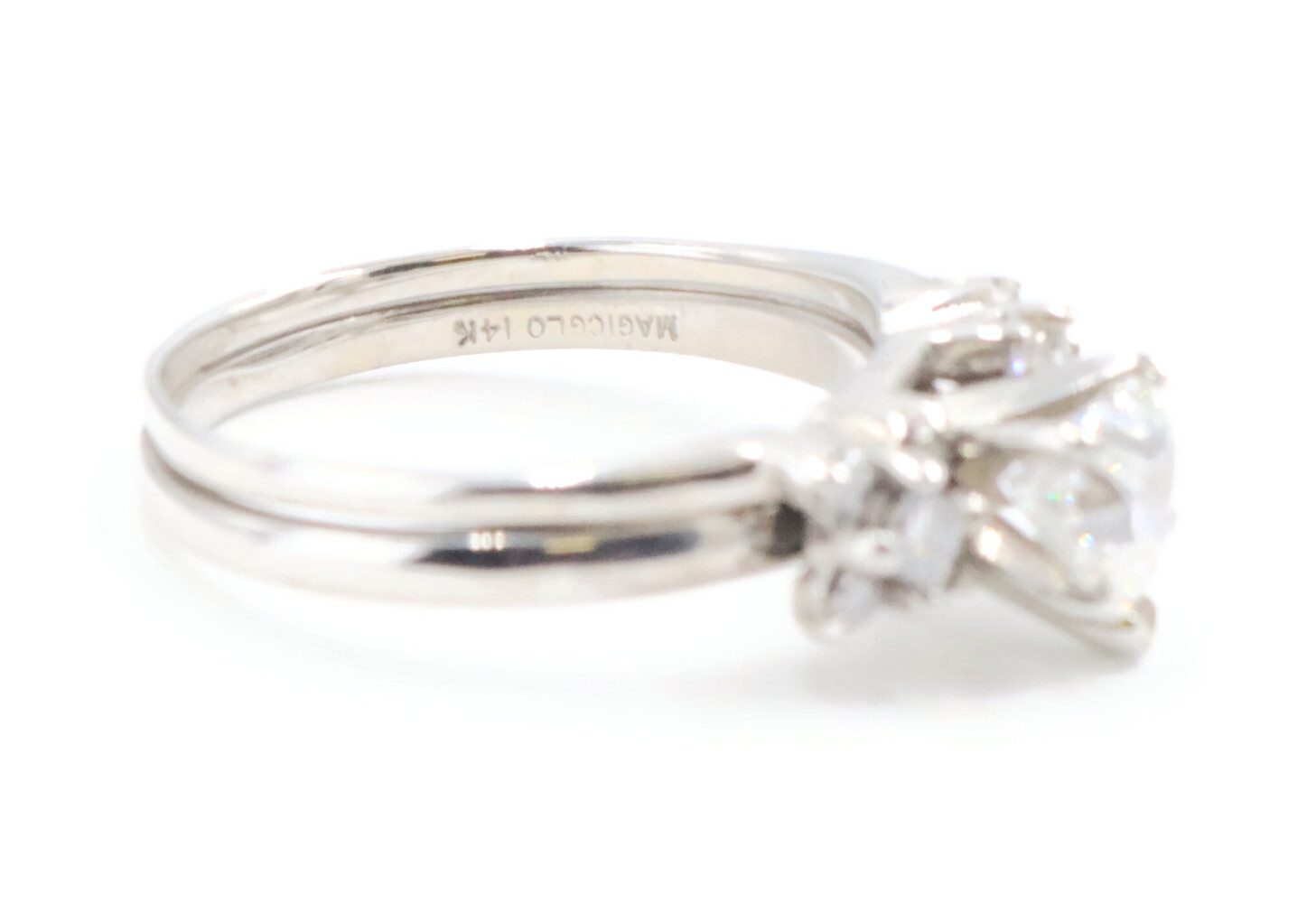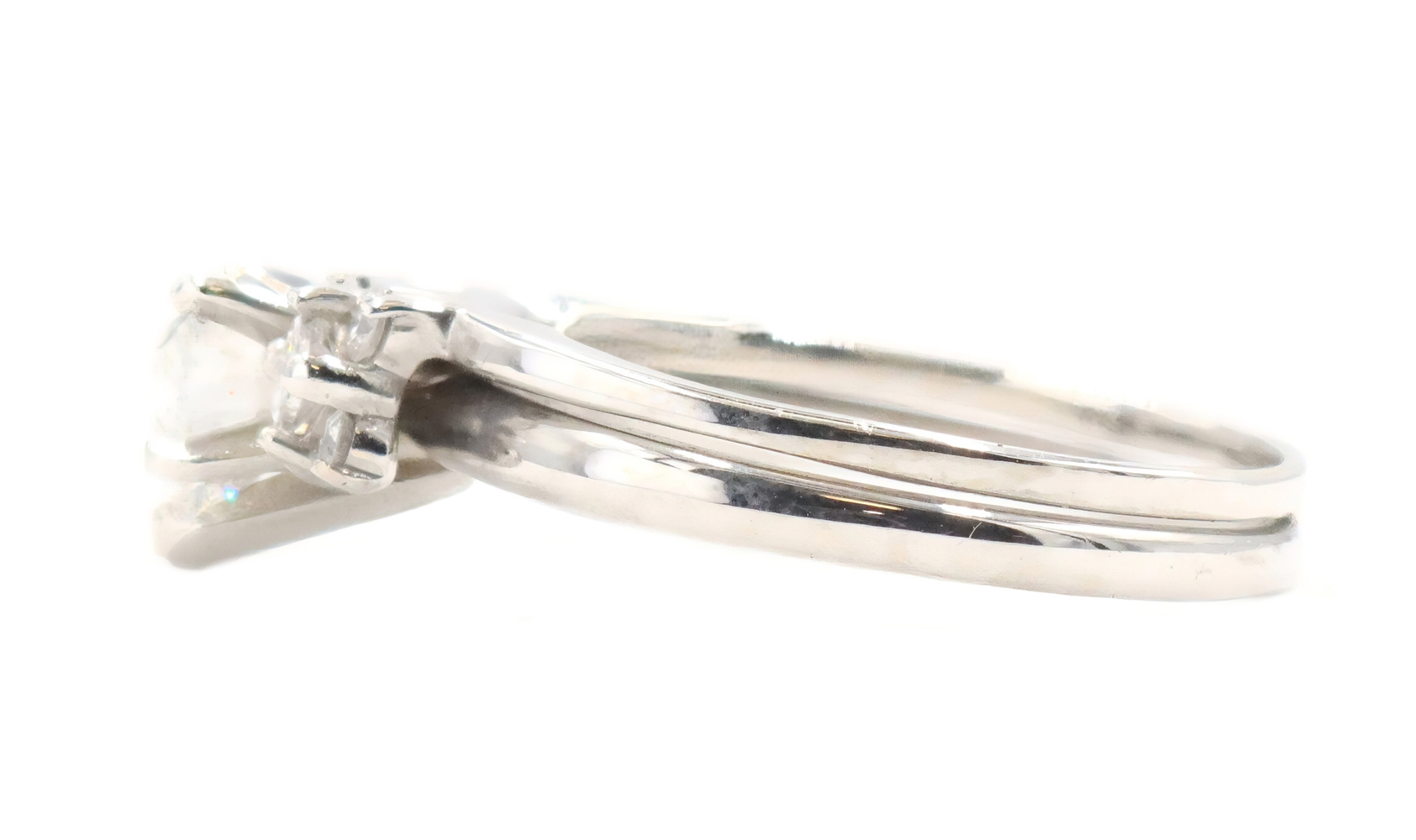 JAGi 1.47 Ctw Heart, Princess & Round Diamond 14KT Gold Soldered Engagement Ring. This ring is a size 8 and the bands have been soldered together. Featuring one beautiful heart-cut diamond in the center with a carat weight of 1.17 ct. This diamond has a clarity of I1, a color of G, and a good cut. This ring also features 2 princess-cut diamonds and 8 round brilliant-cut diamonds with a total carat weight of 0.30 ctw. These diamonds have a clarity range of SI1 to I2 and a color range of H to I. The total diamond carat weight of this ring is 1.47 ctw. This ring has been graded and certified by JAGi.
