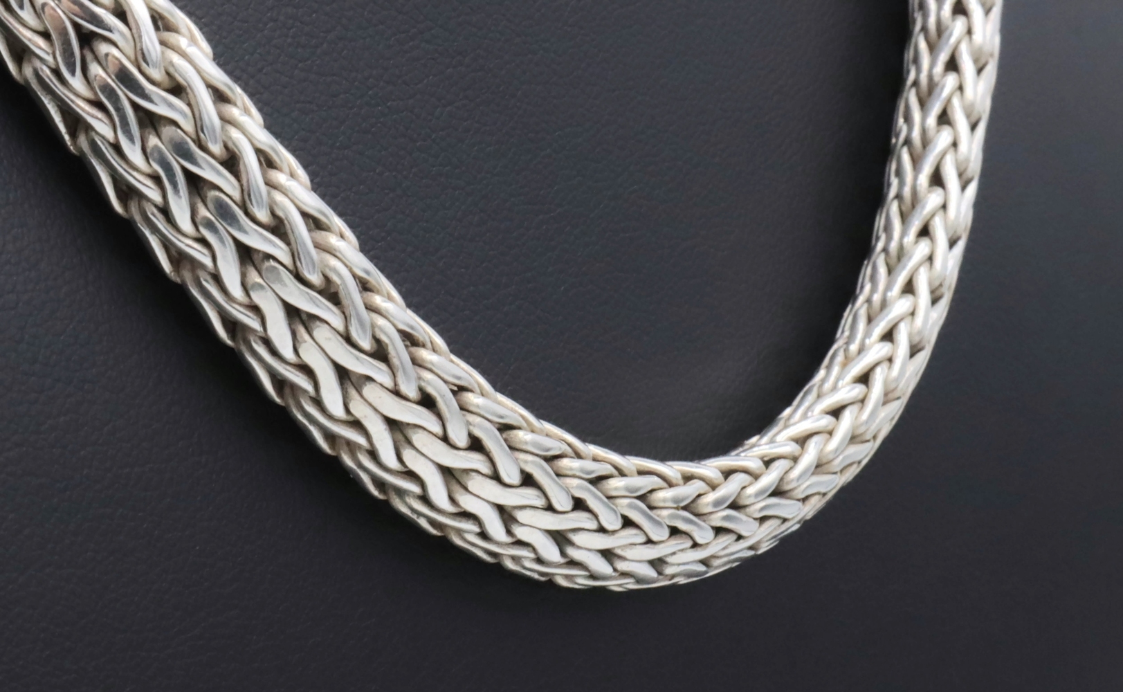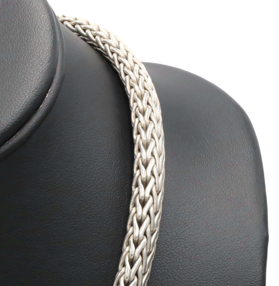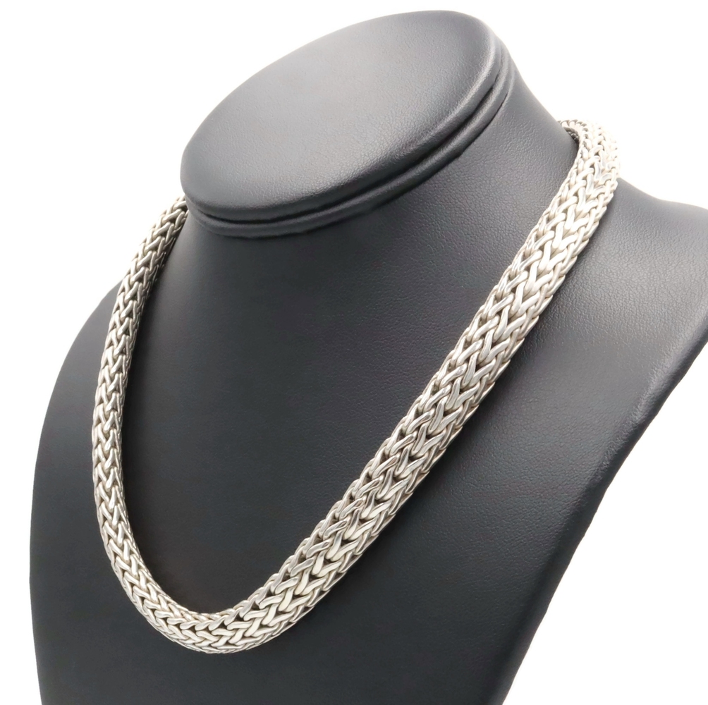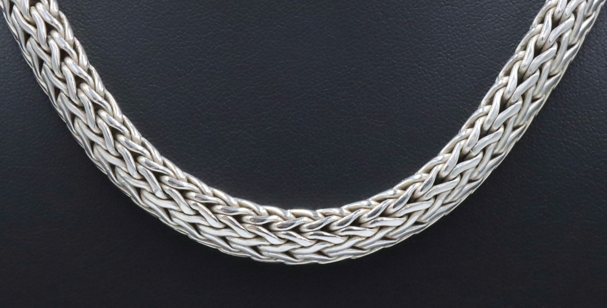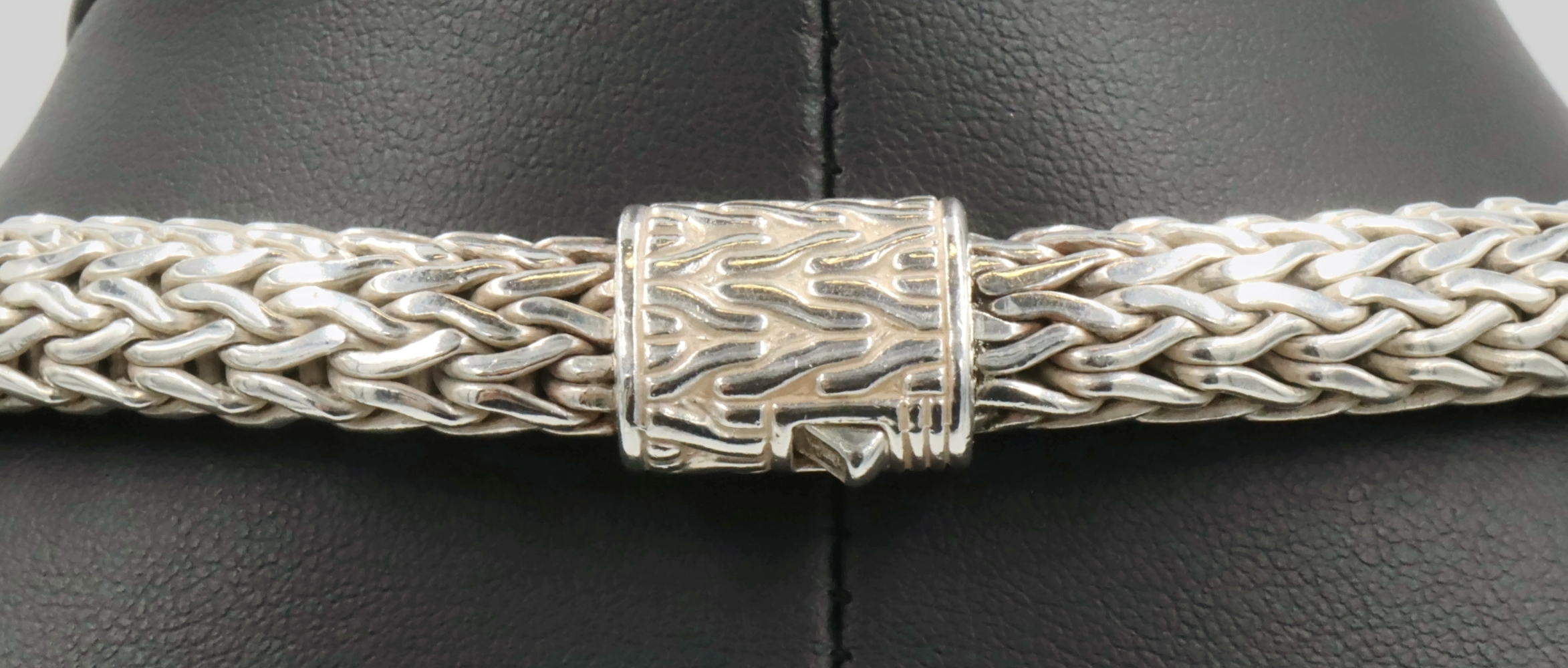 John Hardy Sterling Silver (925) 10.9mm Wide Woven Wheat Chain Necklace 18" 177g. This necklace is approximately 18 1/4 inches in length and 10.9mm in width.