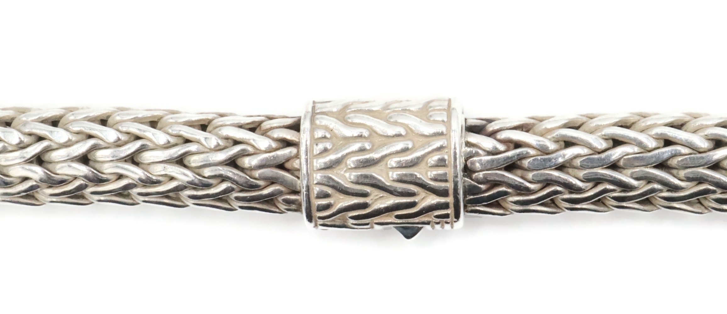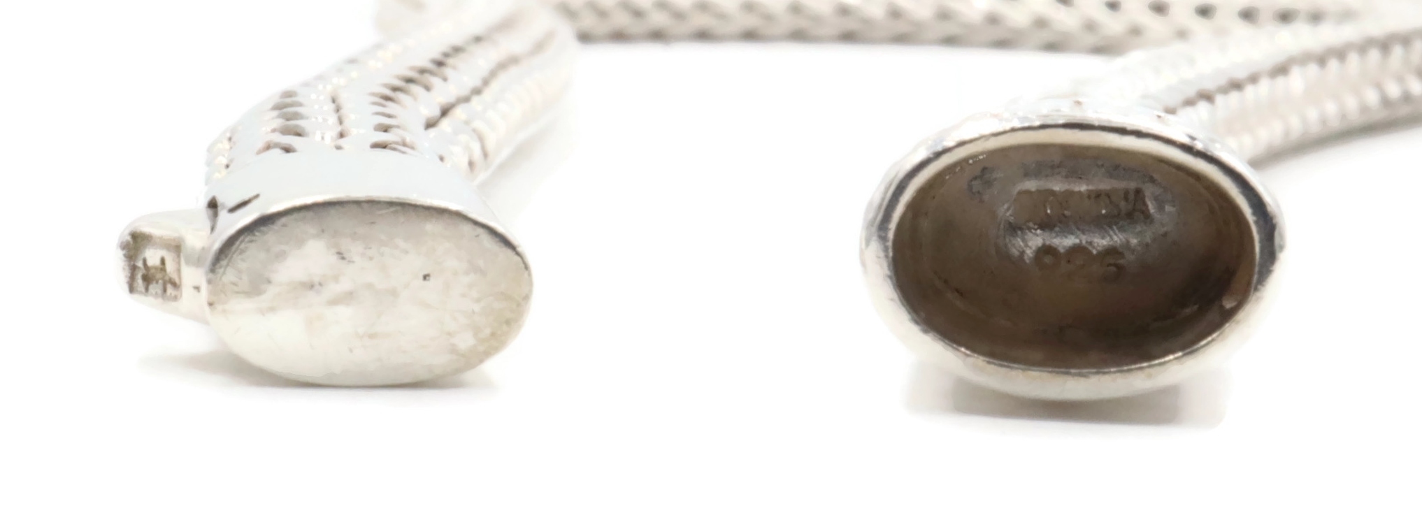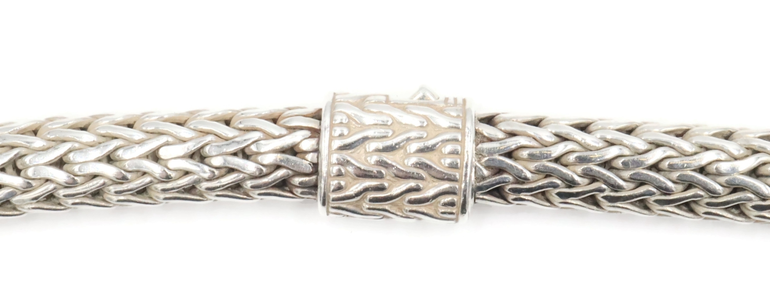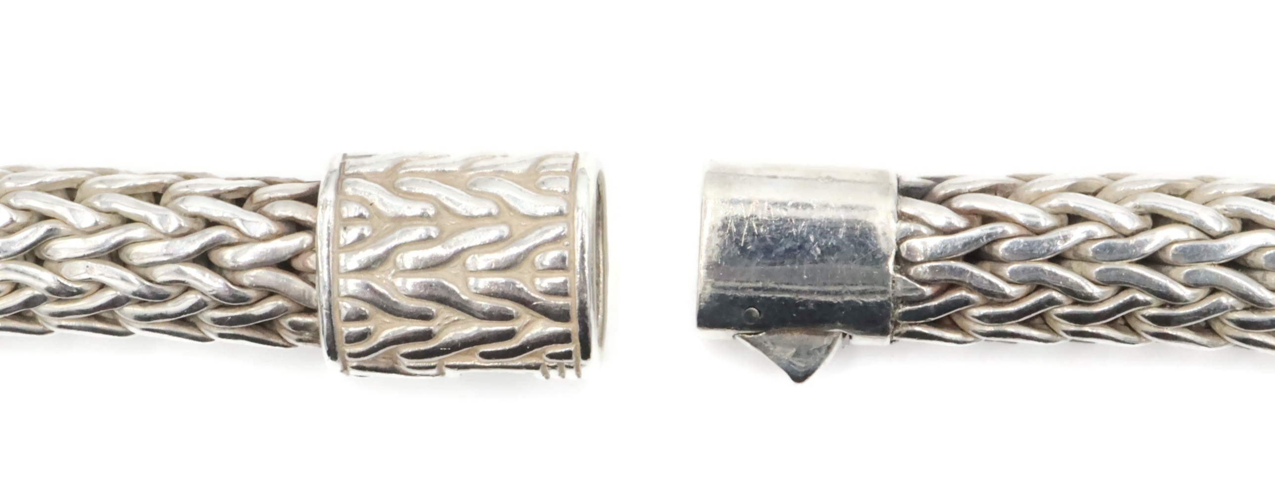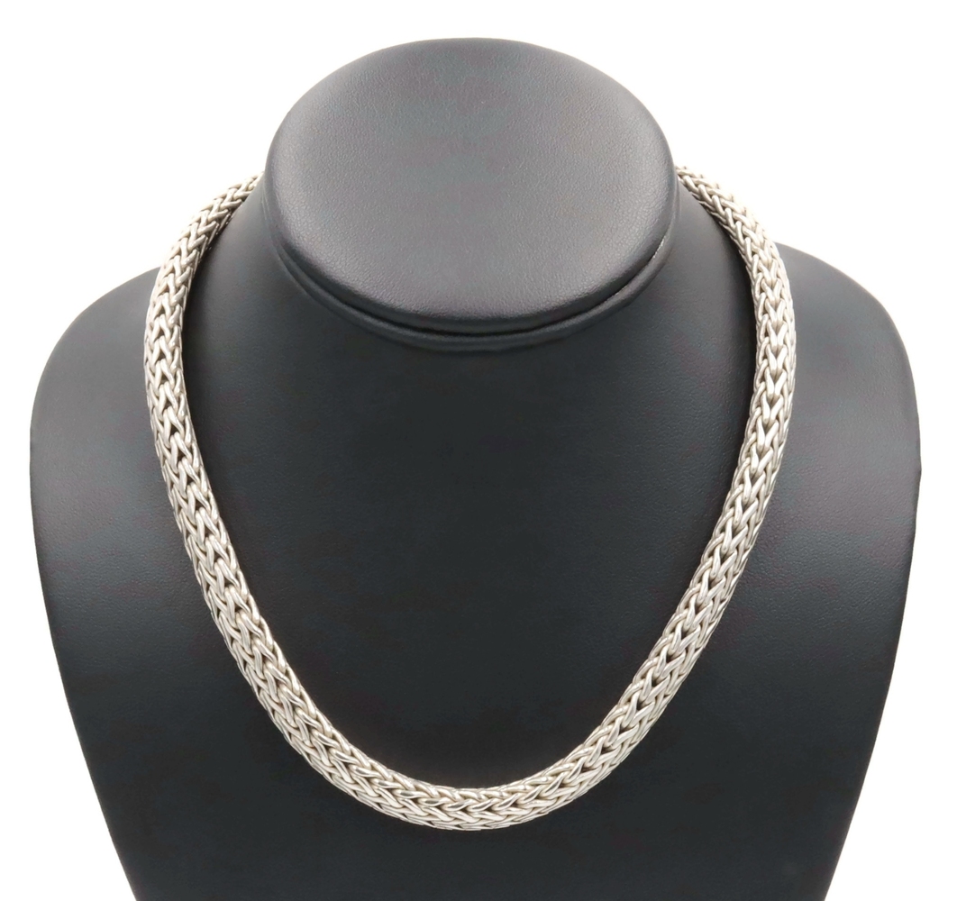 John Hardy Sterling Silver (925) 10.9mm Wide Woven Wheat Chain Necklace 18" 177g. This necklace is approximately 18 1/4 inches in length and 10.9mm in width.