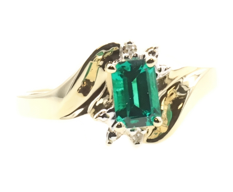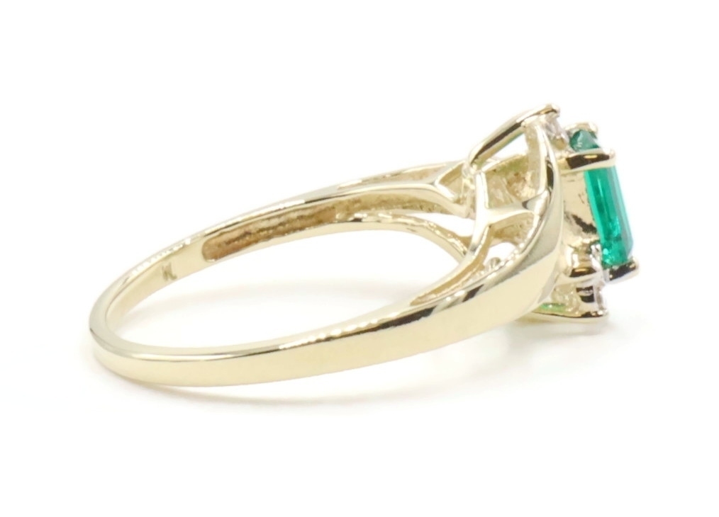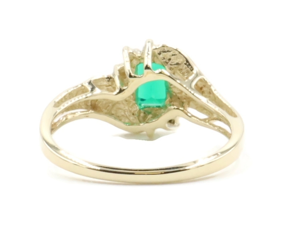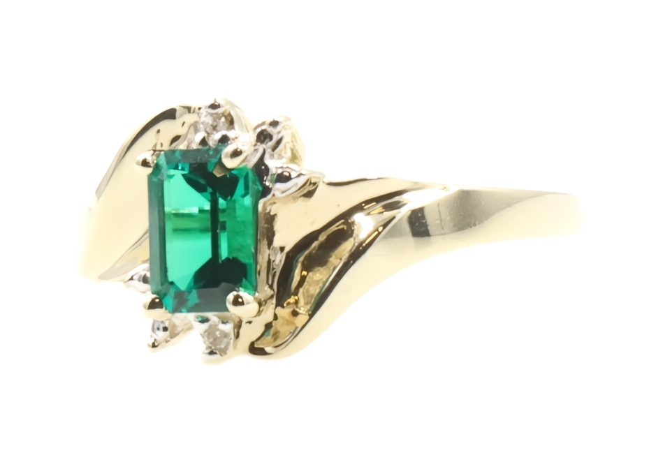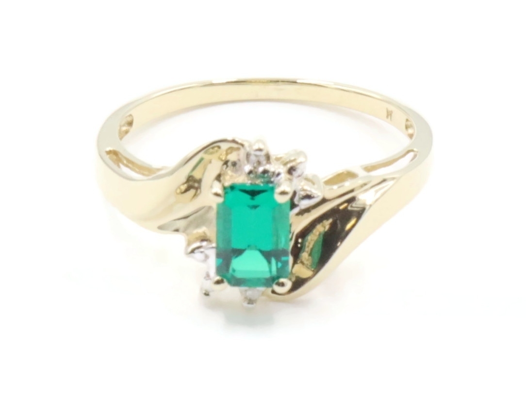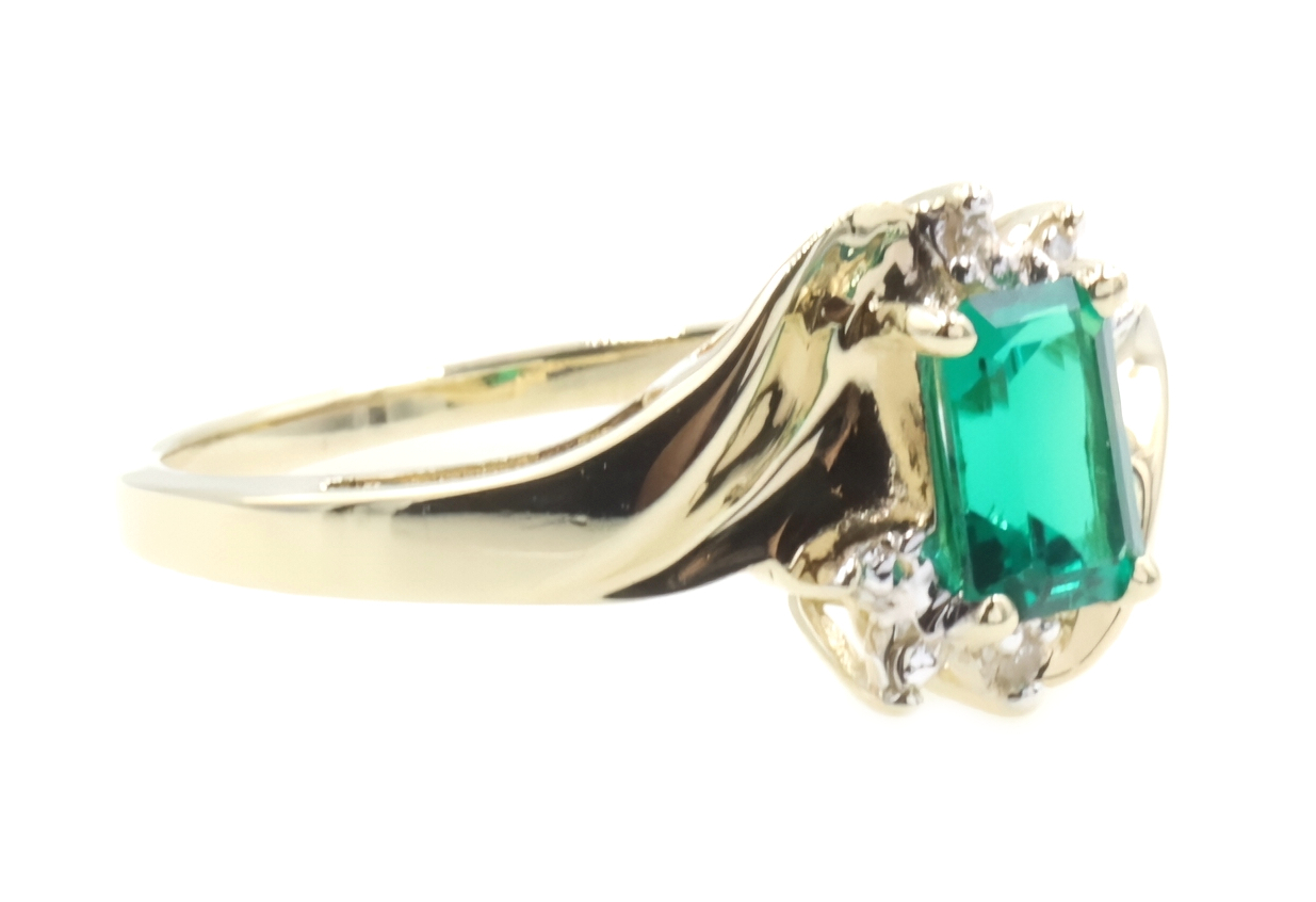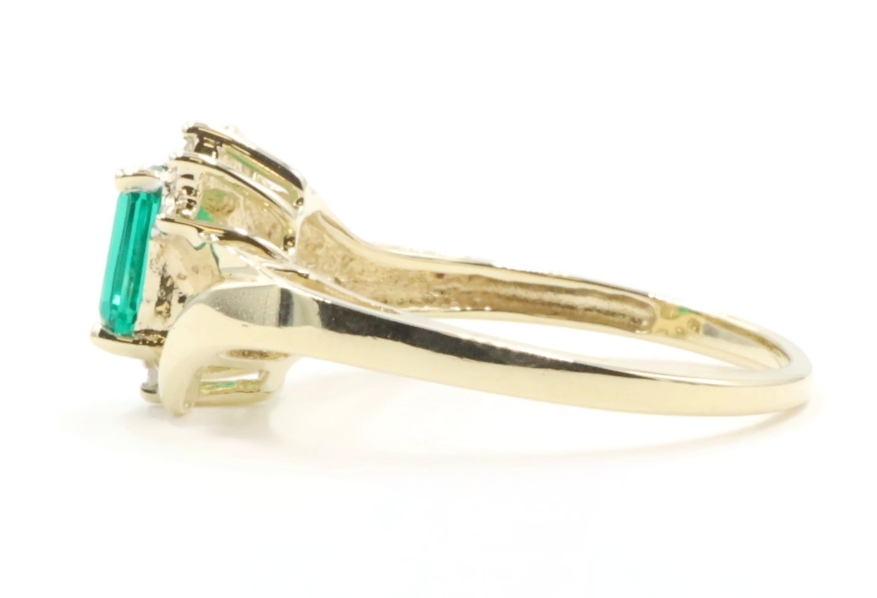 Lab Created Emerald Cut 0.54 ctw Emerald & 0.02 ctw Diamond 10K Yellow Gold Ring | USA Pawn