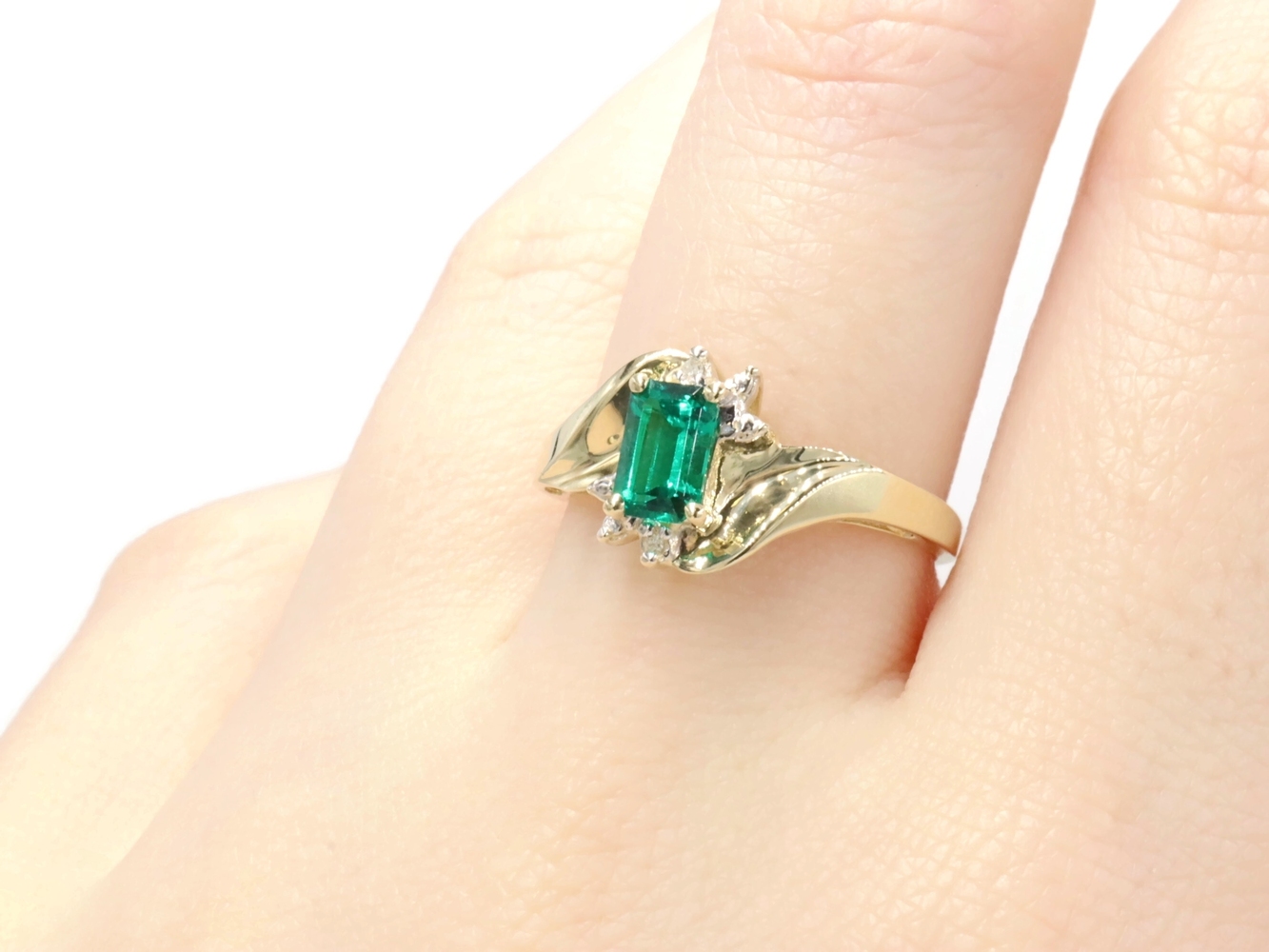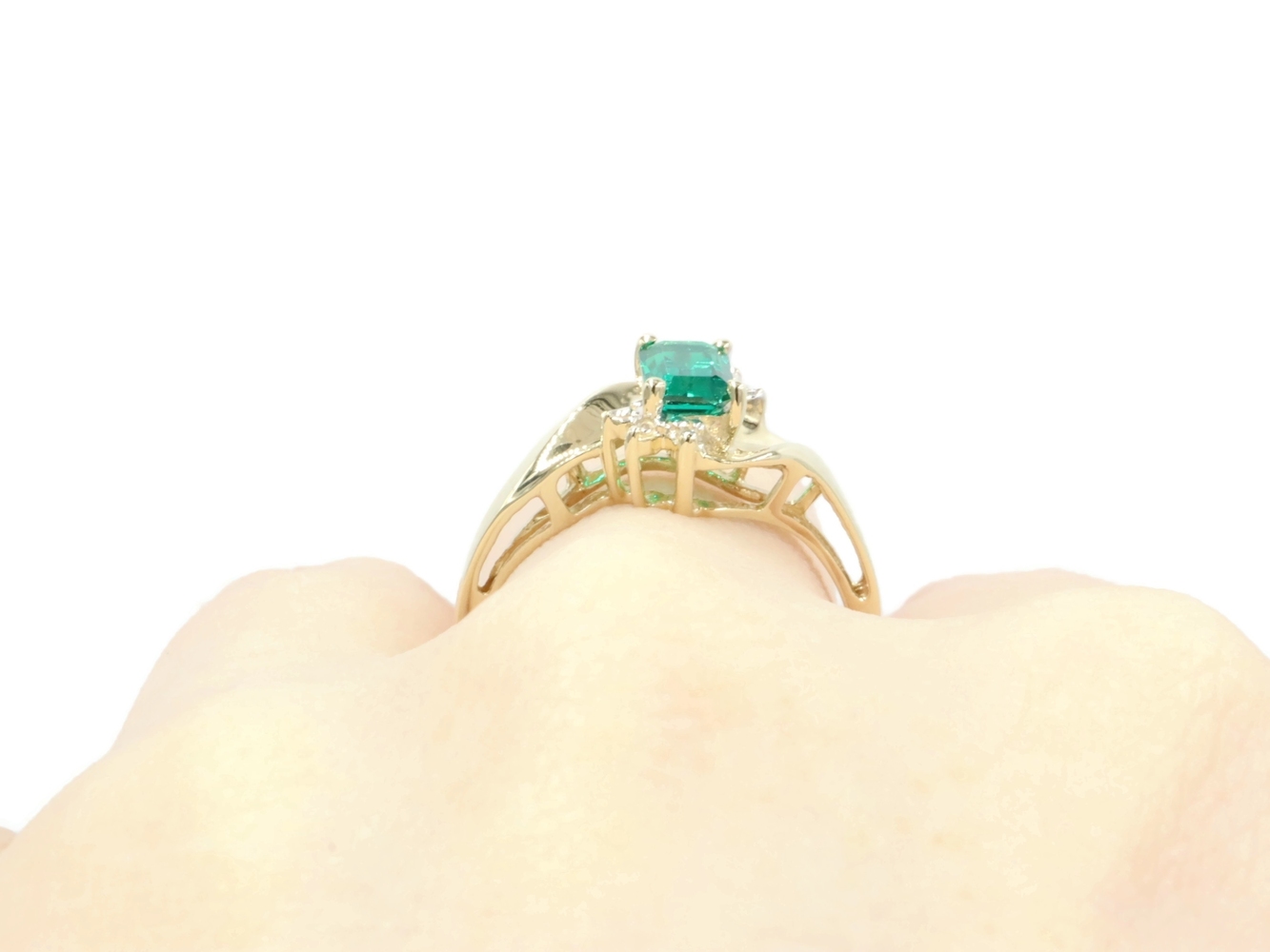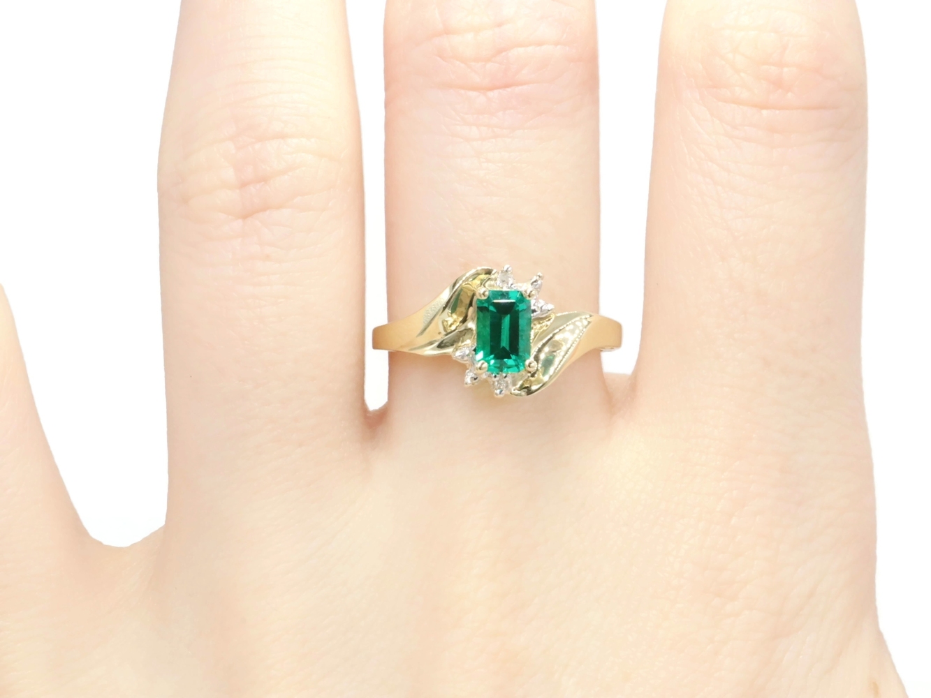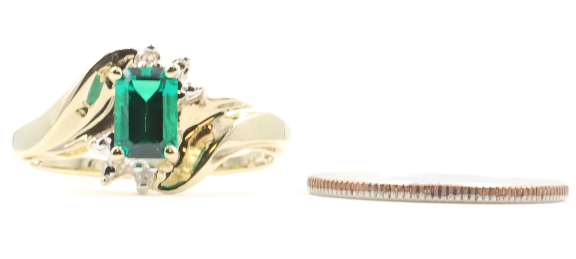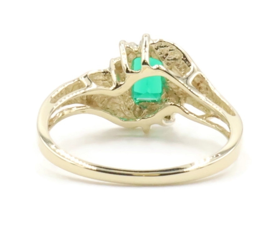 Lab Created Emerald Cut 0.54 ctw Emerald & 0.02 ctw Diamond 10K Yellow Gold Ring | USA Pawn