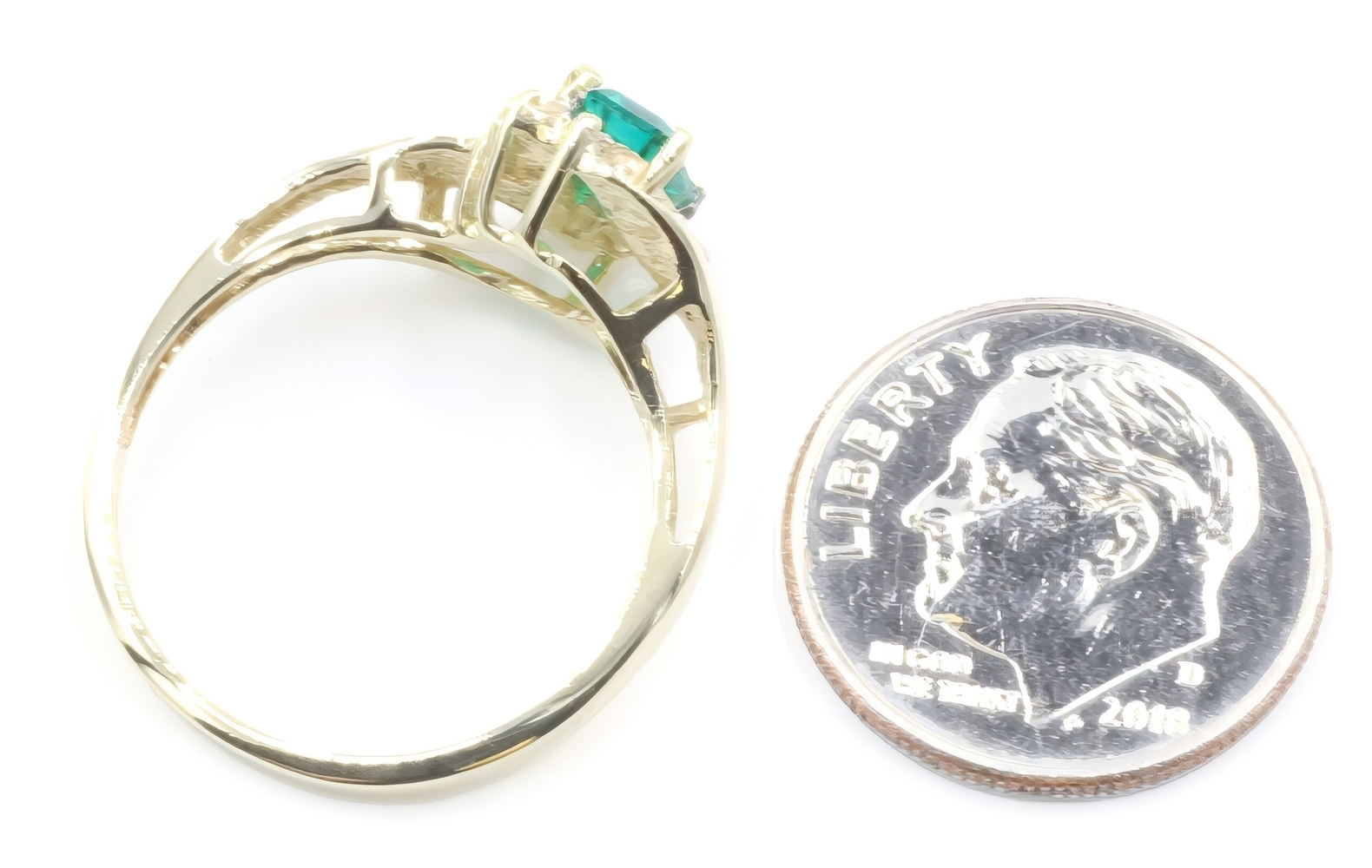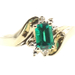 Lab Created Emerald Cut 0.54 ctw Emerald & 0.02 ctw Diamond 10K Yellow Gold Ring. This ring is a size 7.