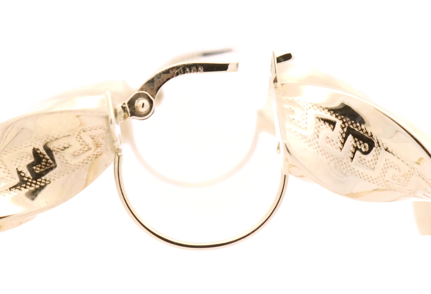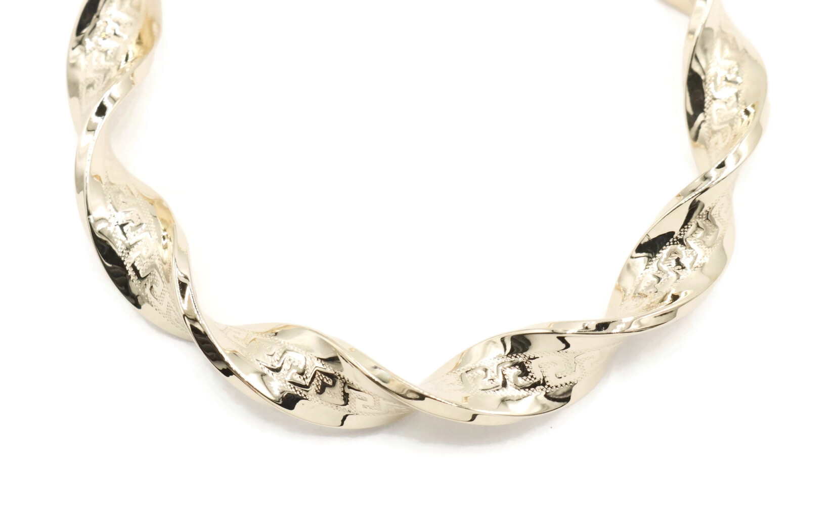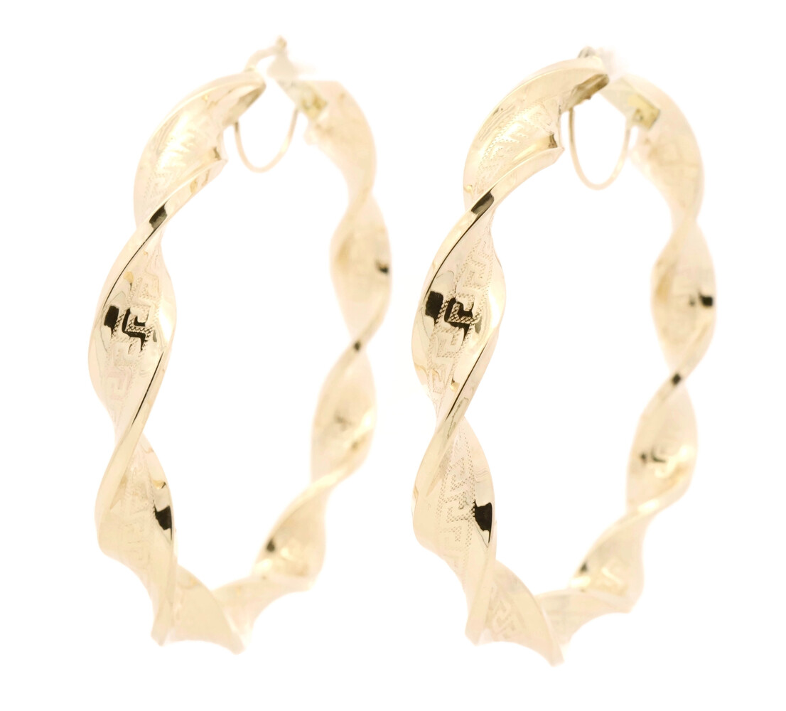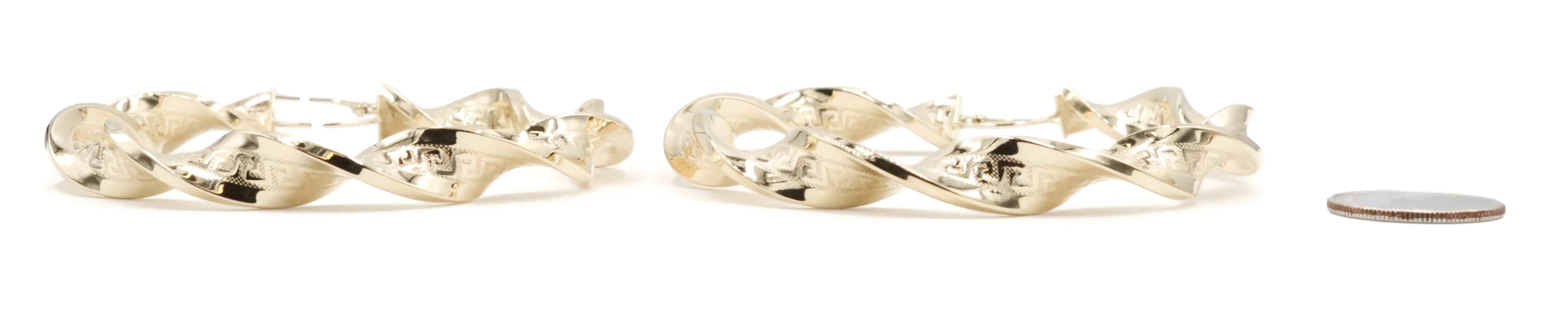 Large 2.5" Twisted 14KT Yellow Gold Round Hoop Earrings with Greek Key Detailing | USA Pawn