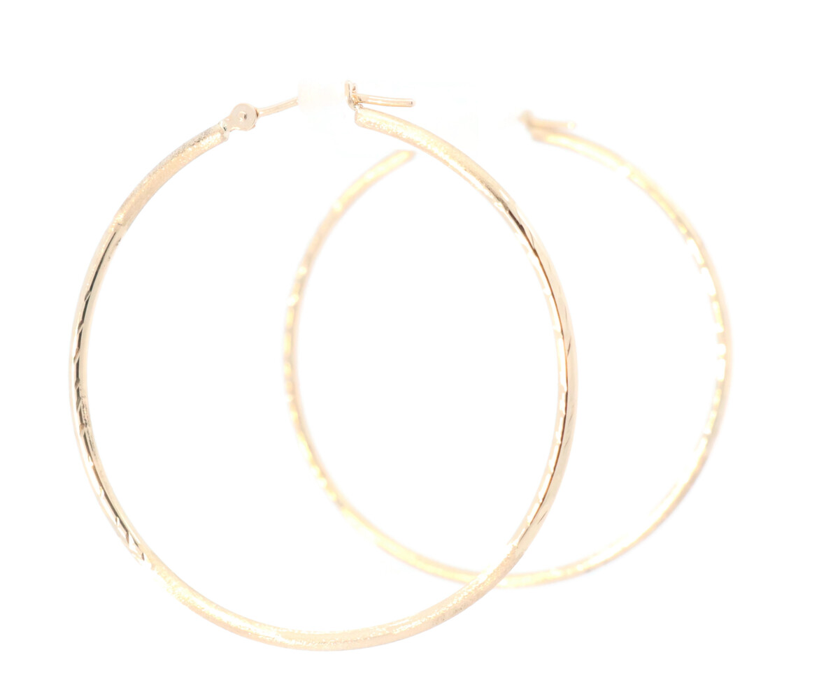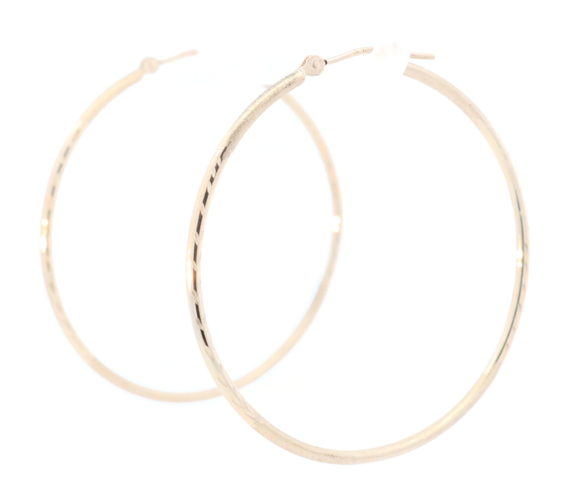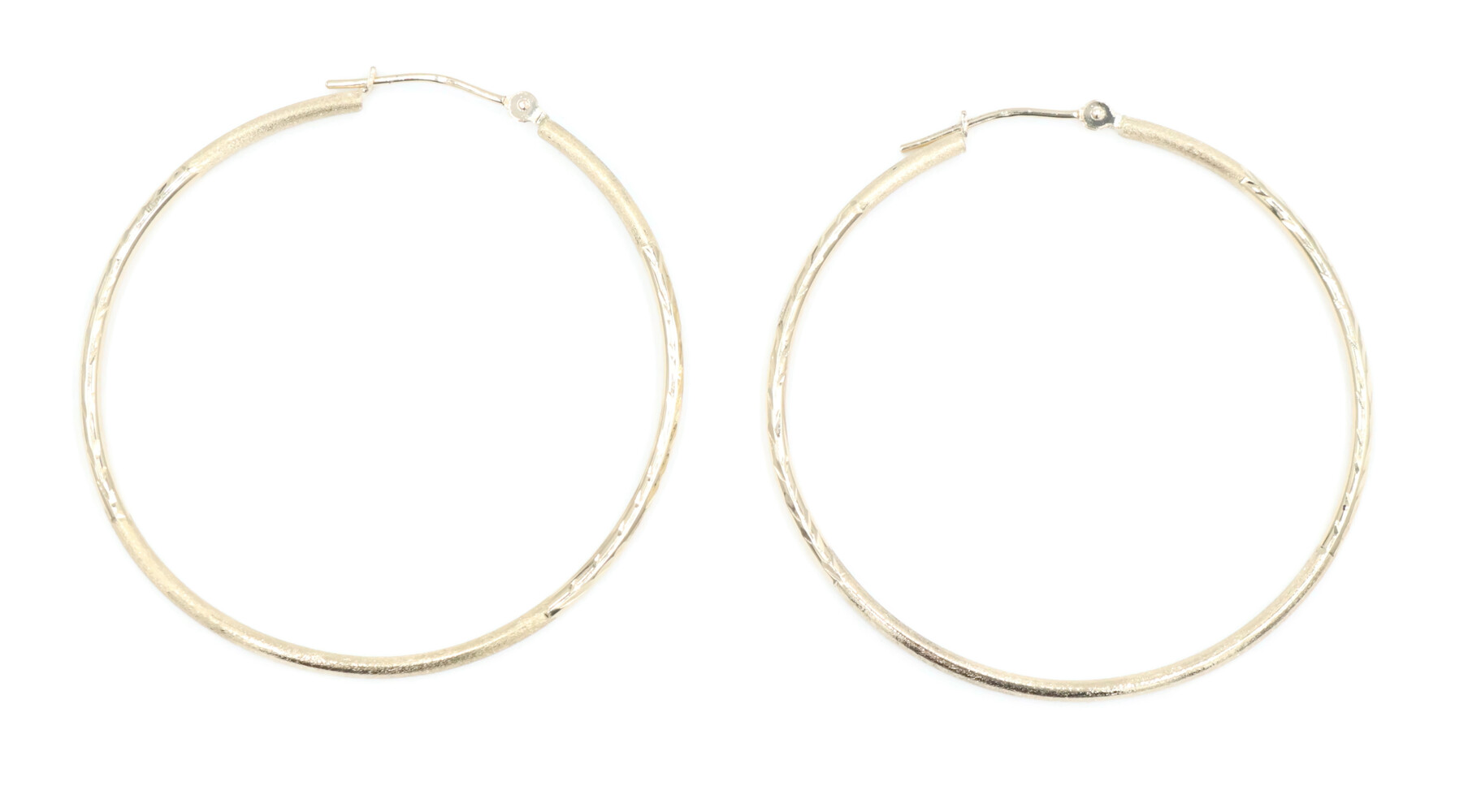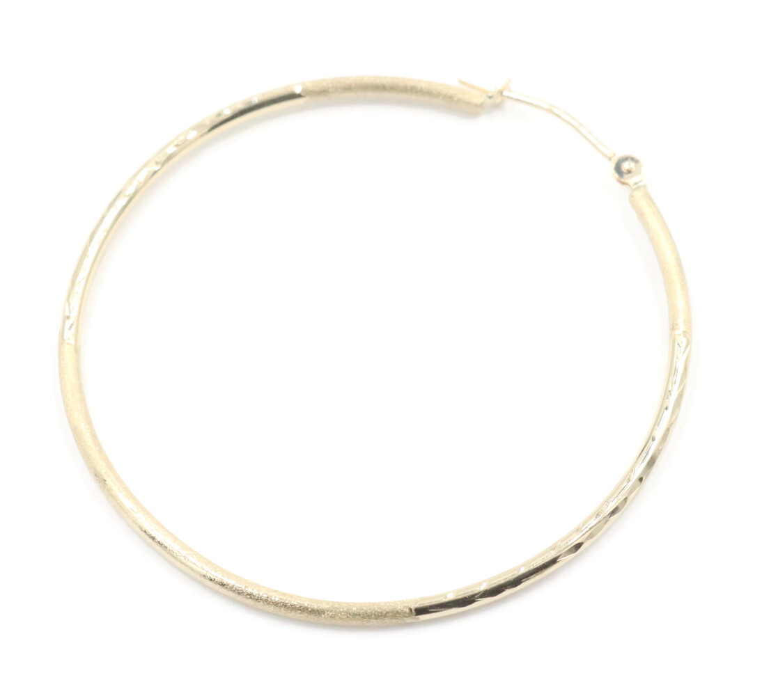 Large 37.5mm 10KT Yellow Gold Diamond Cut and Textured Round Hoop Earrings | USA Pawn