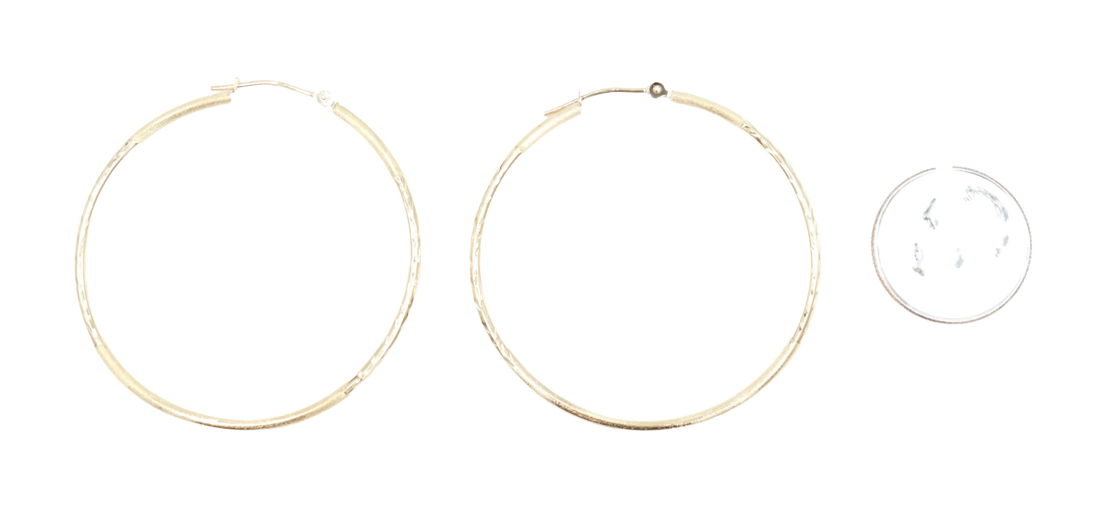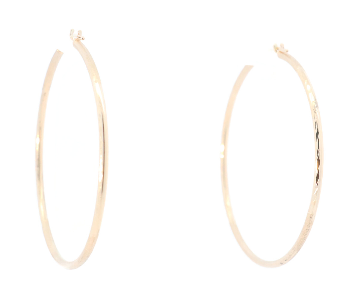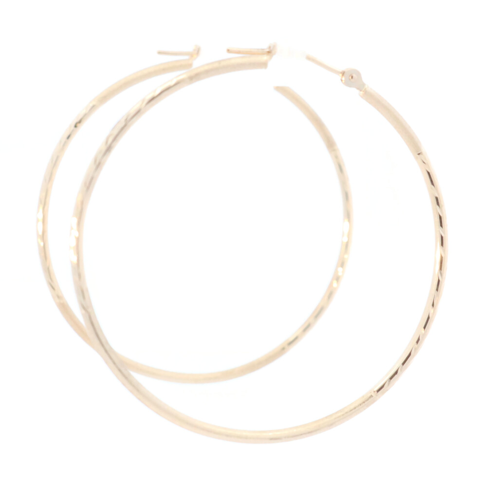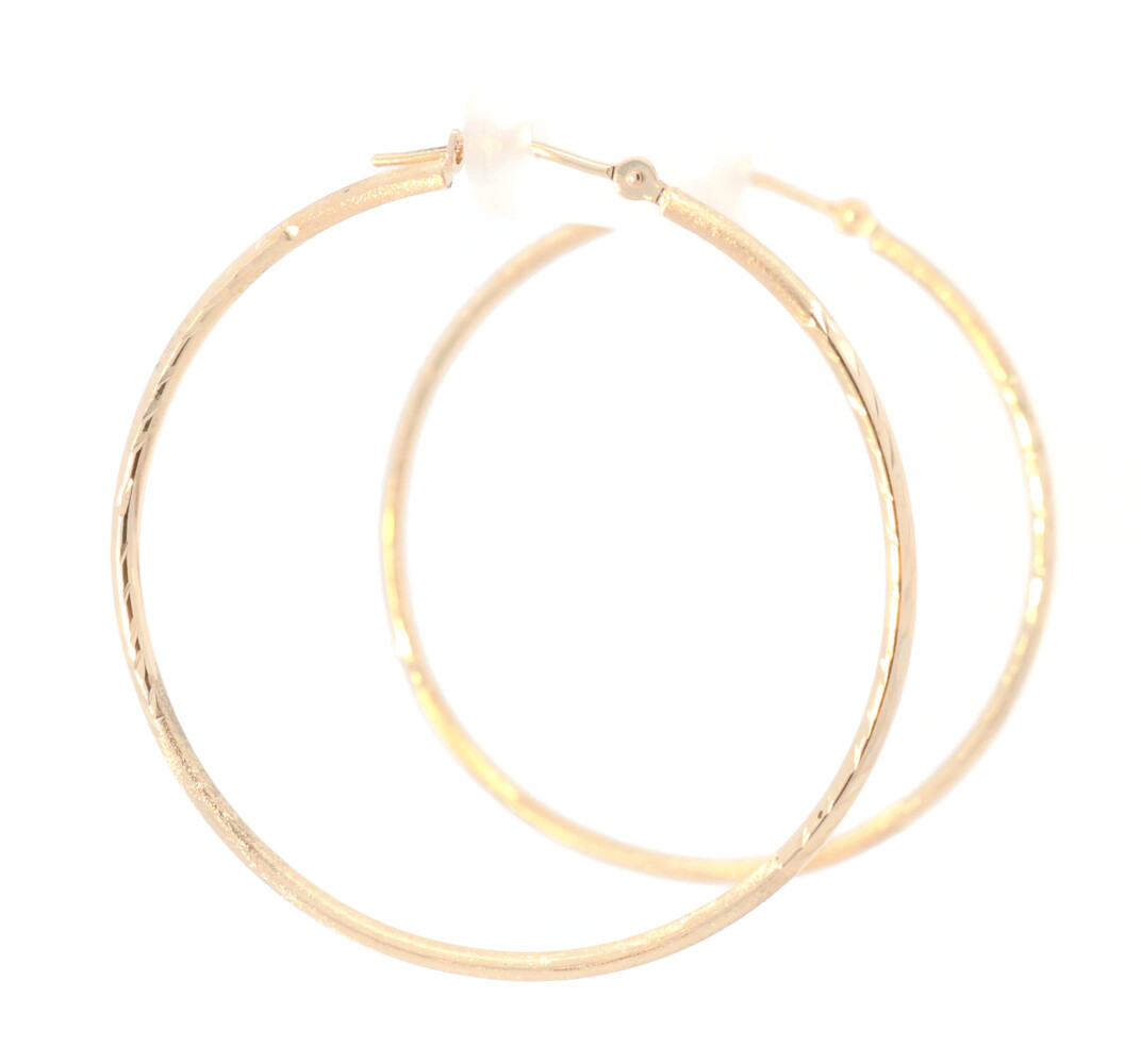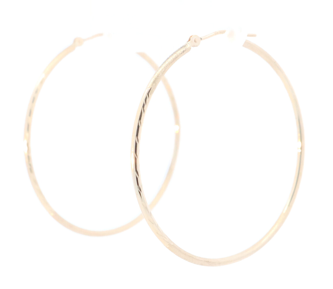 Large 37.5mm 10KT Yellow Gold Diamond Cut and Textured Round Hoop Earrings | USA Pawn