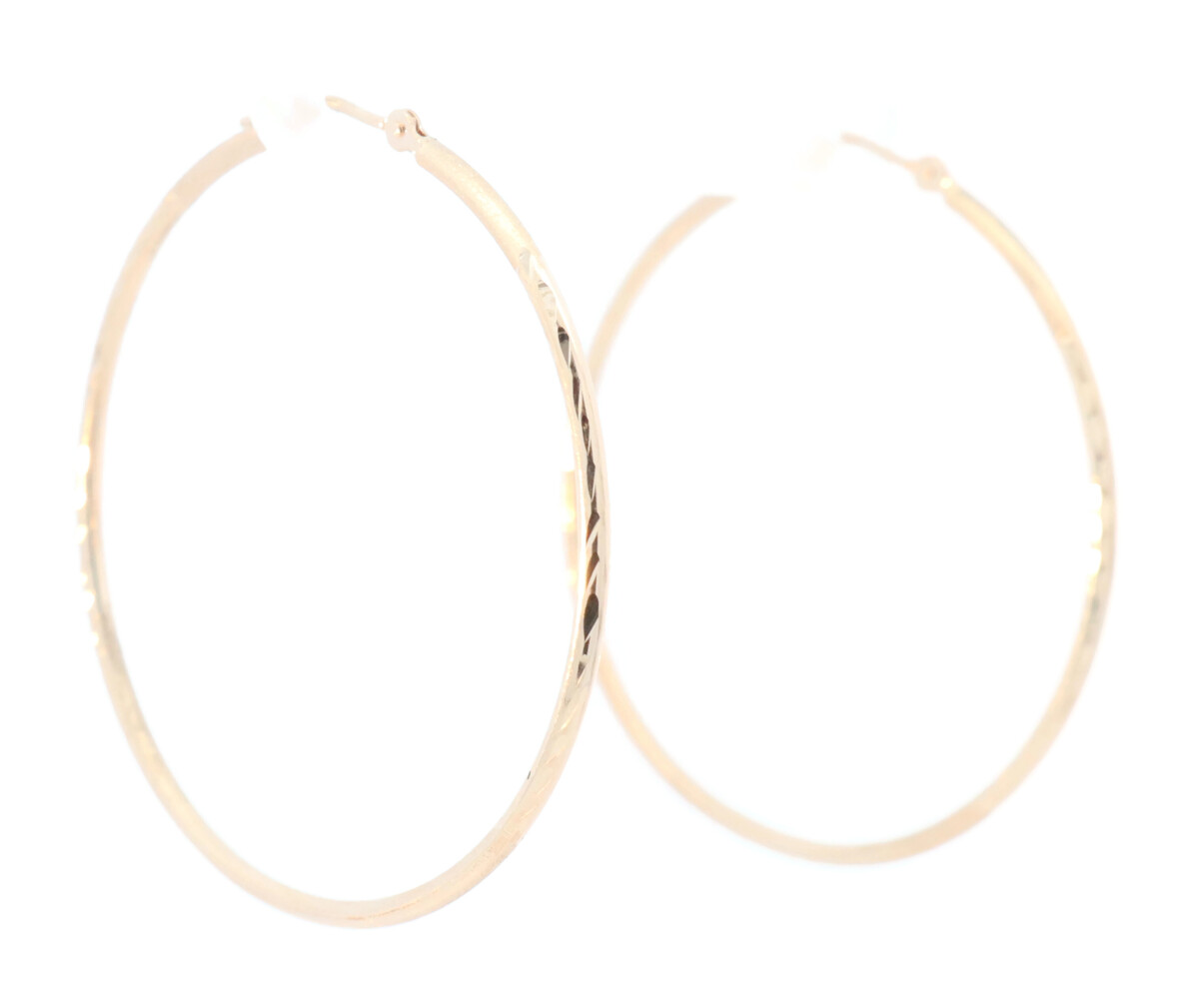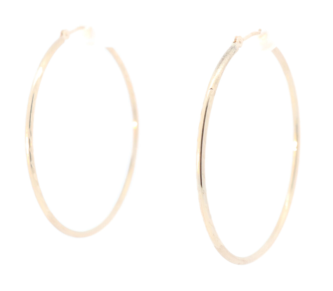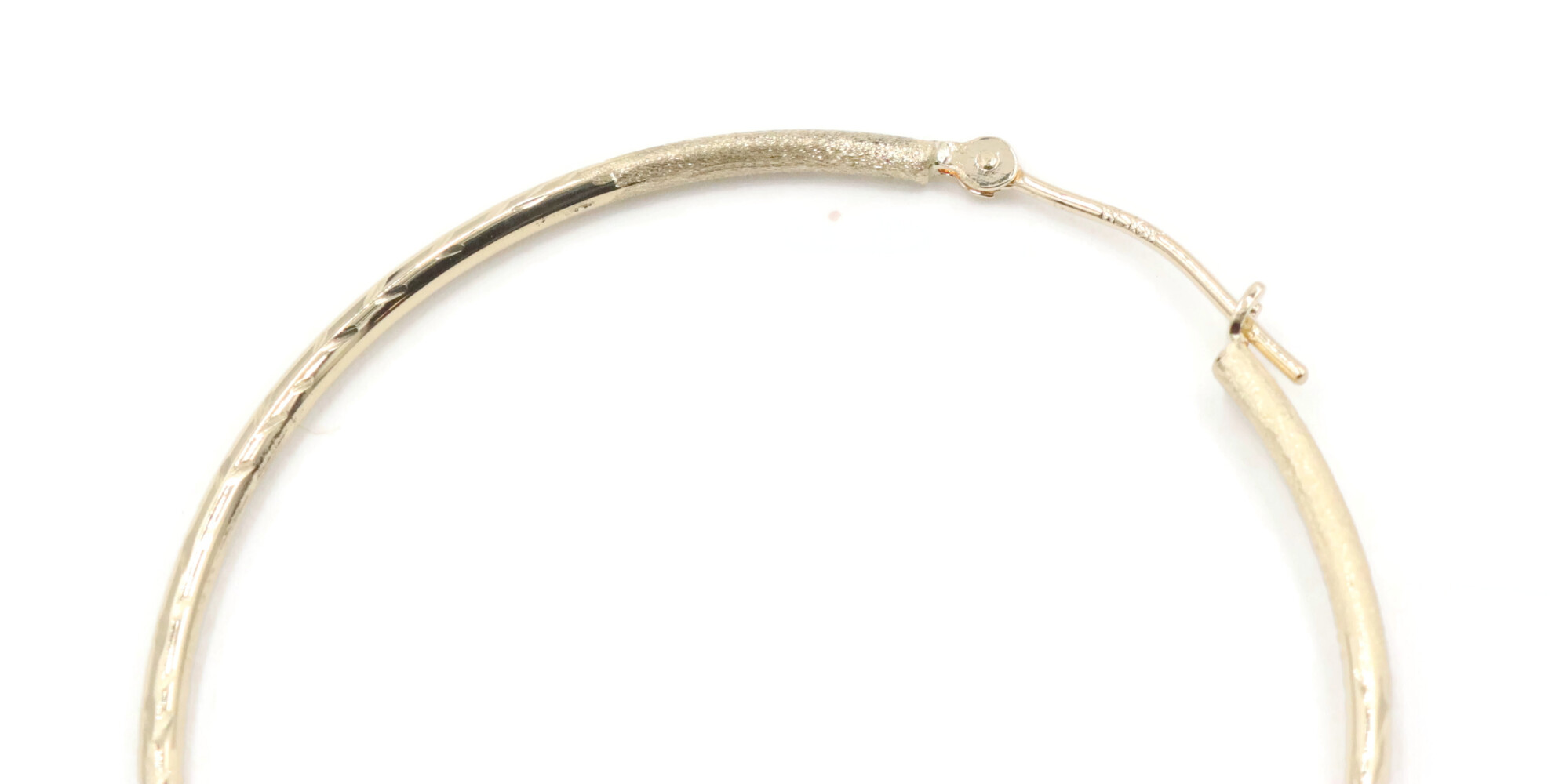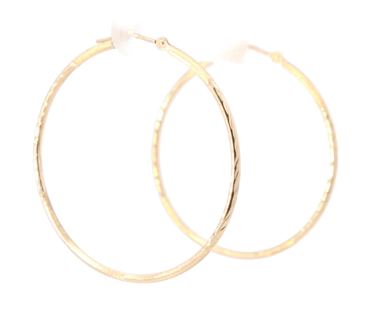 Large 37.5mm 10KT Yellow Gold Diamond Cut and Textured Round Hoop Earrings | USA Pawn