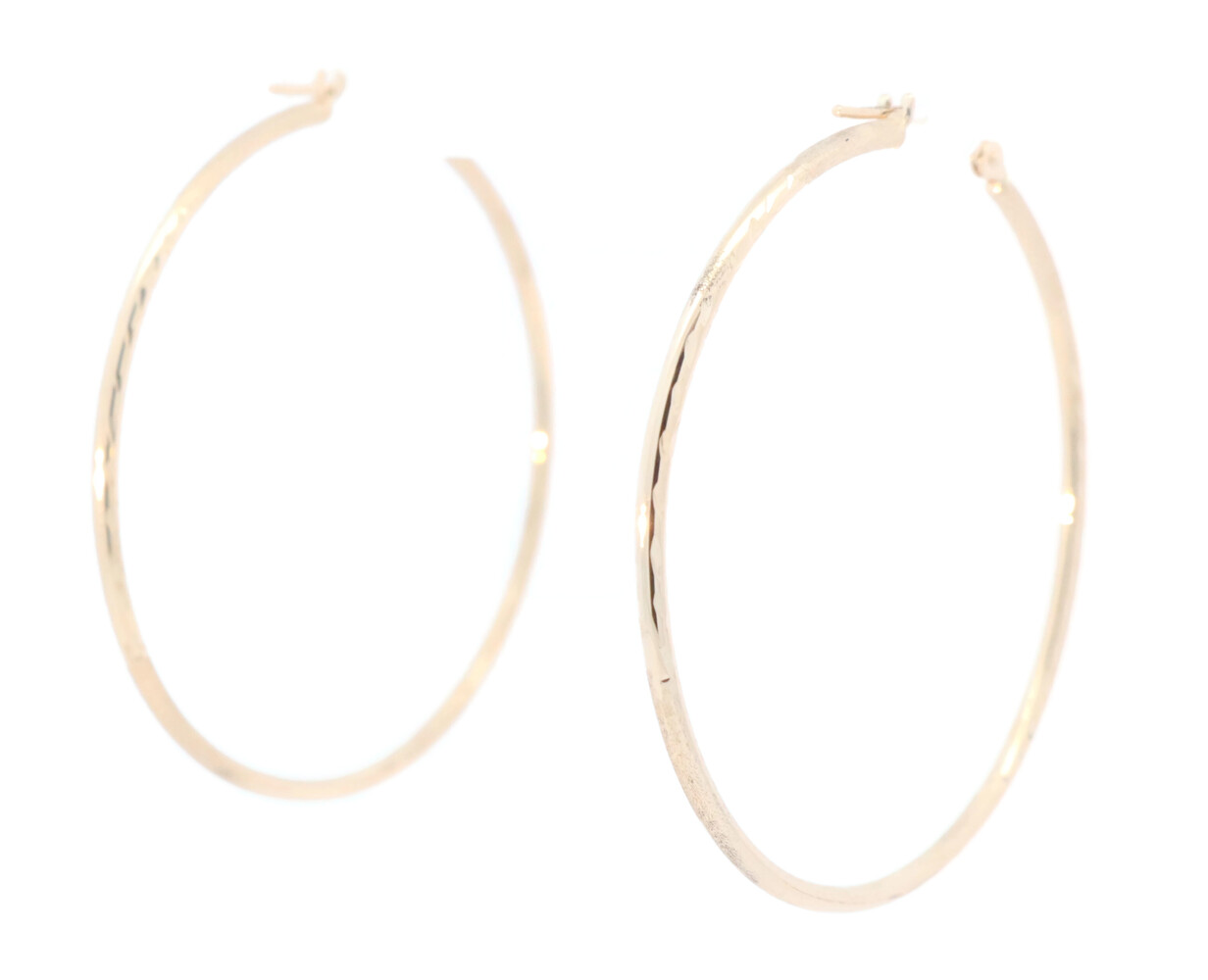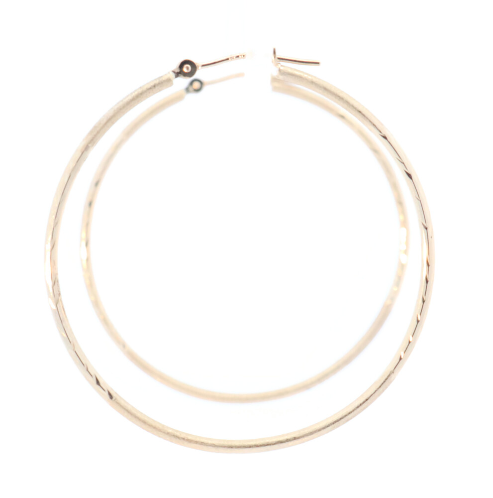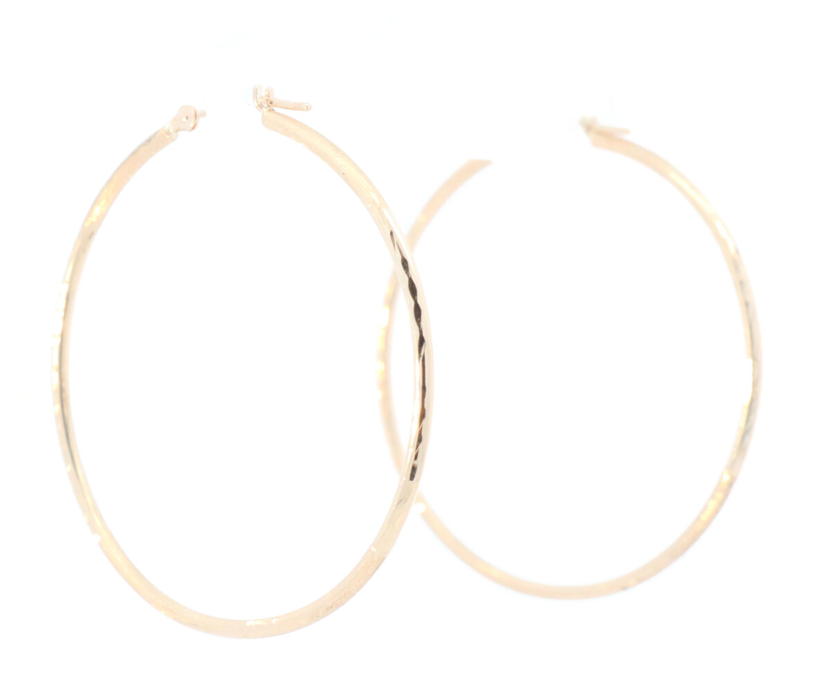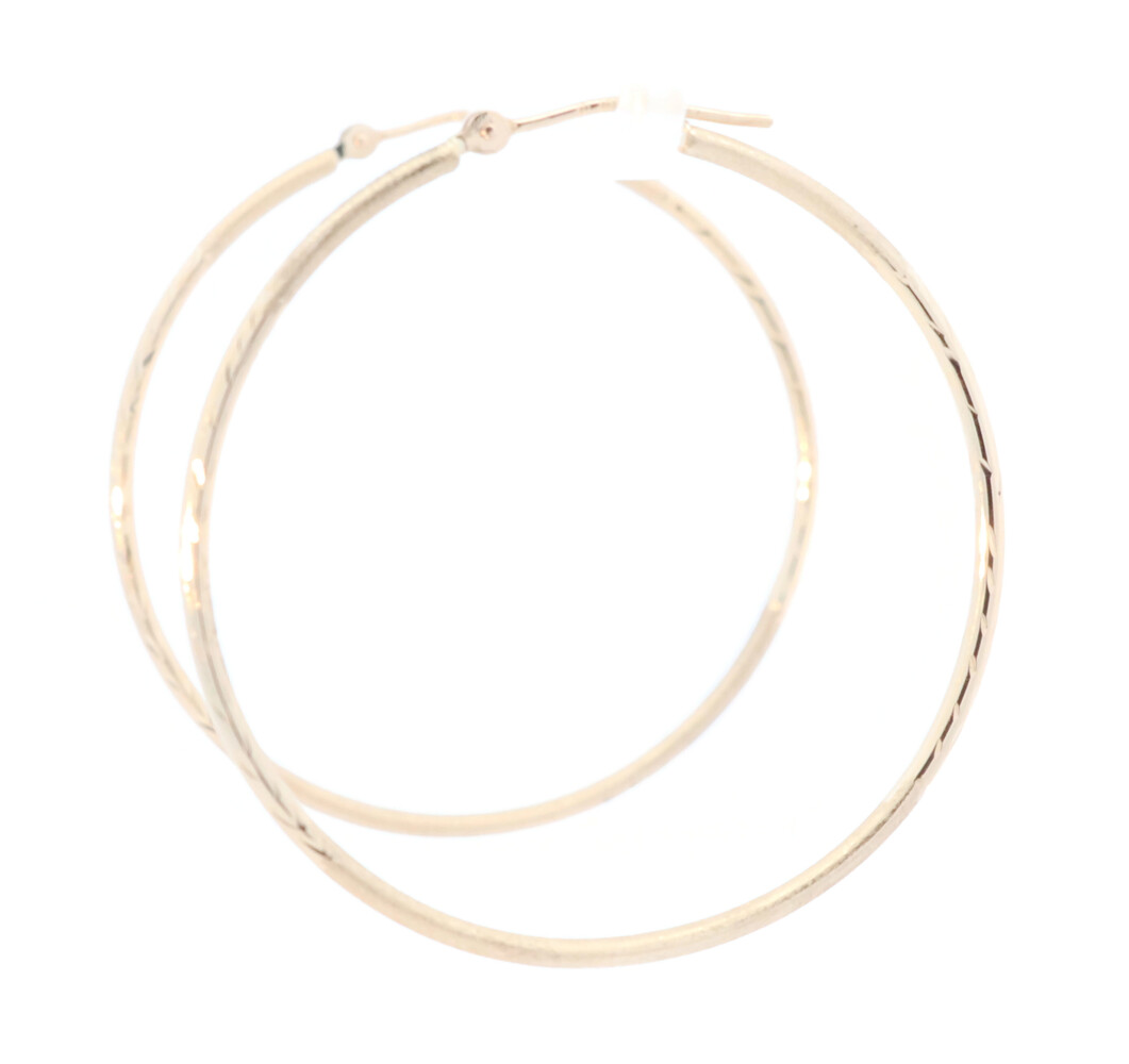 Large 37.5mm 10KT Yellow Gold Diamond Cut and Textured Round Hoop Earrings | USA Pawn