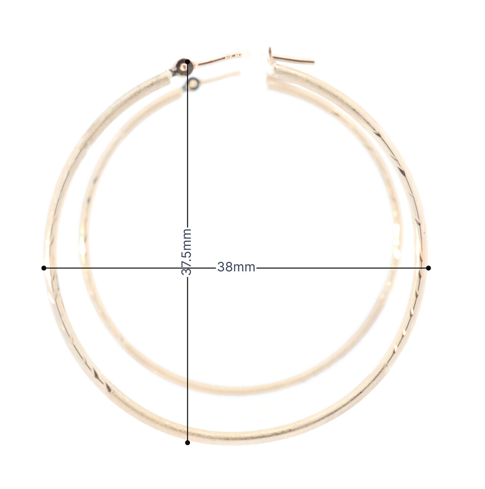 Large 37.5mm 10KT Yellow Gold Diamond Cut and Textured Round Hoop Earrings