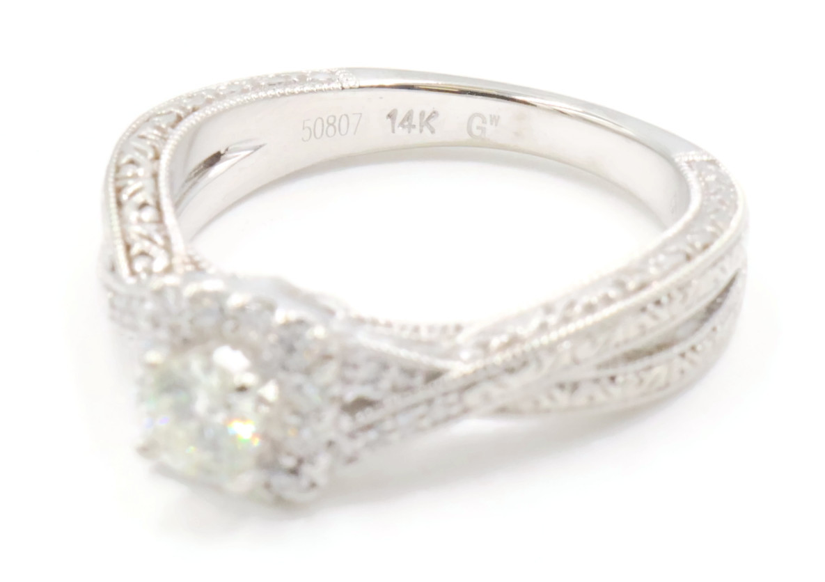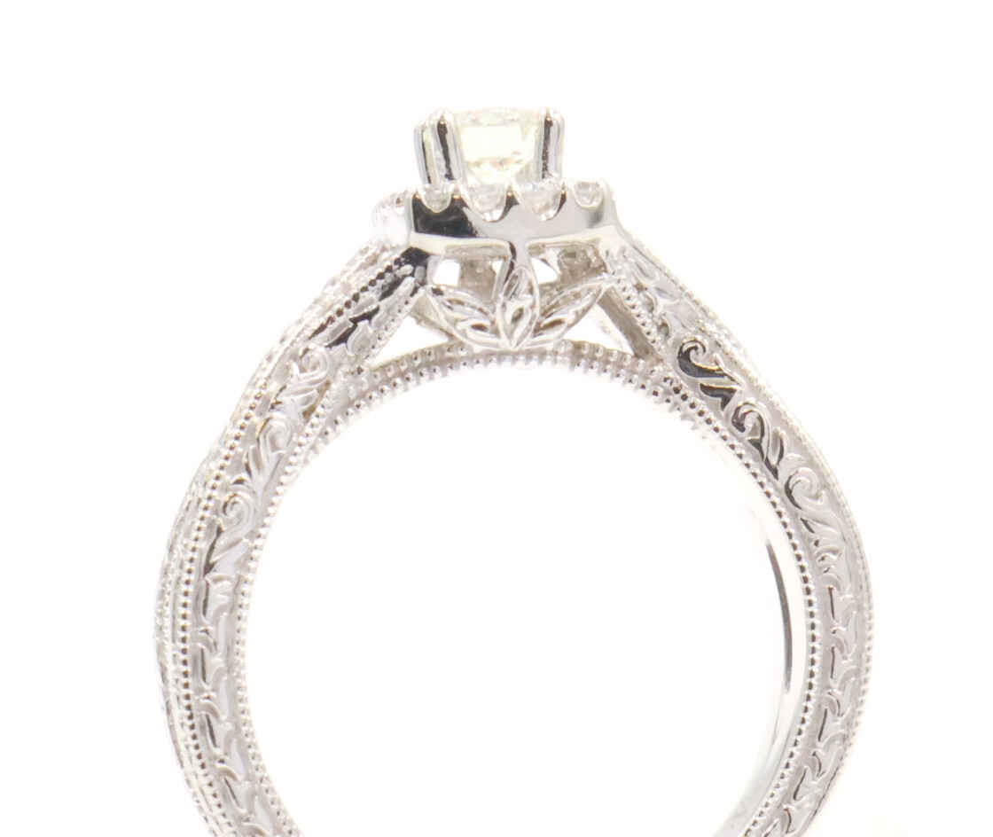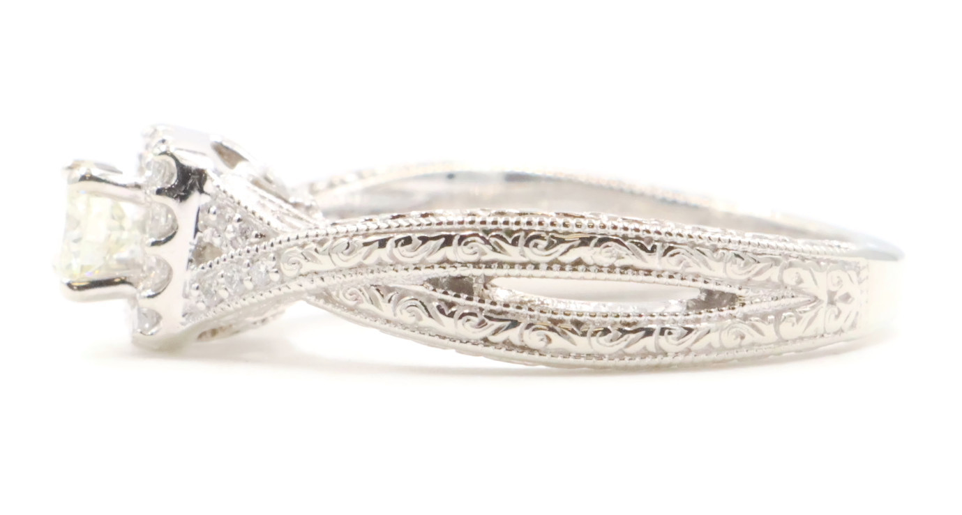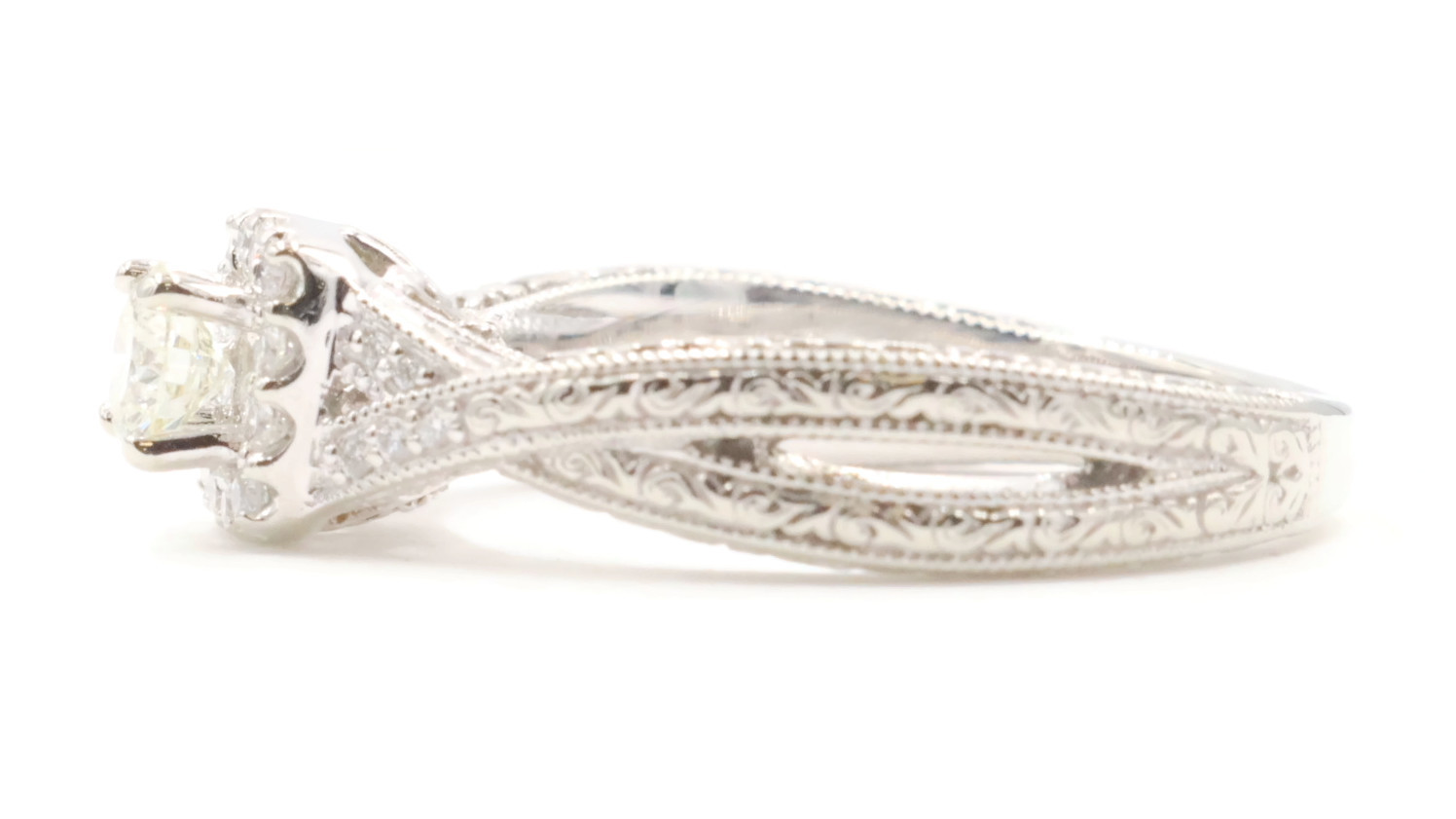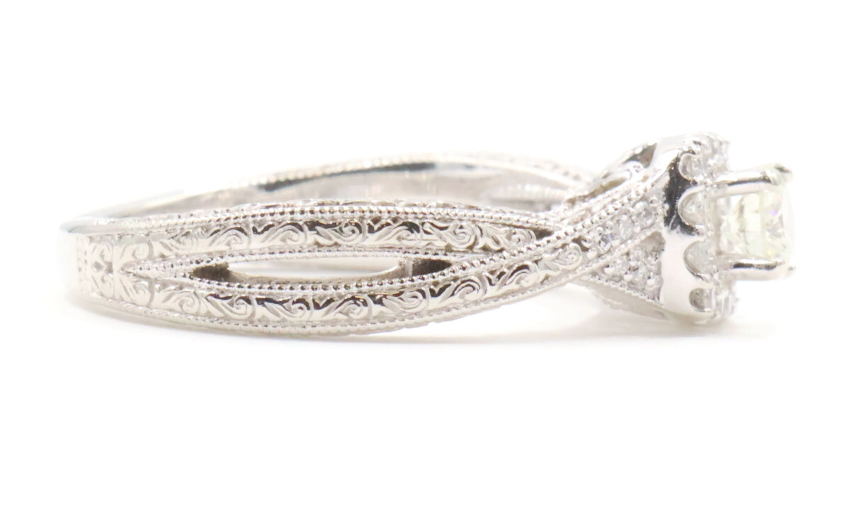 LaVie 0.53 ctw Round Diamond Halo 14KT White Gold Antique Filigree Style Ring | USA Pawn