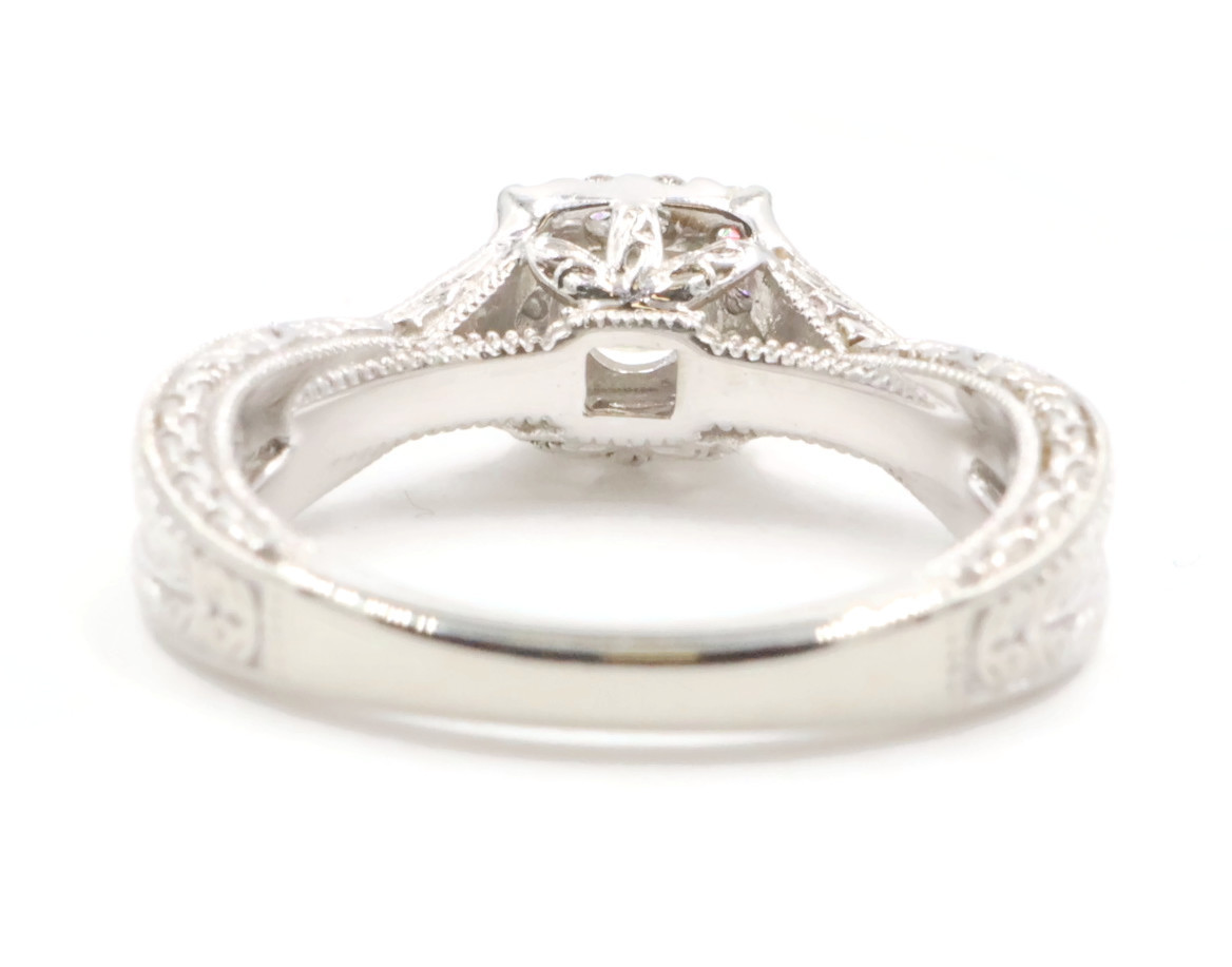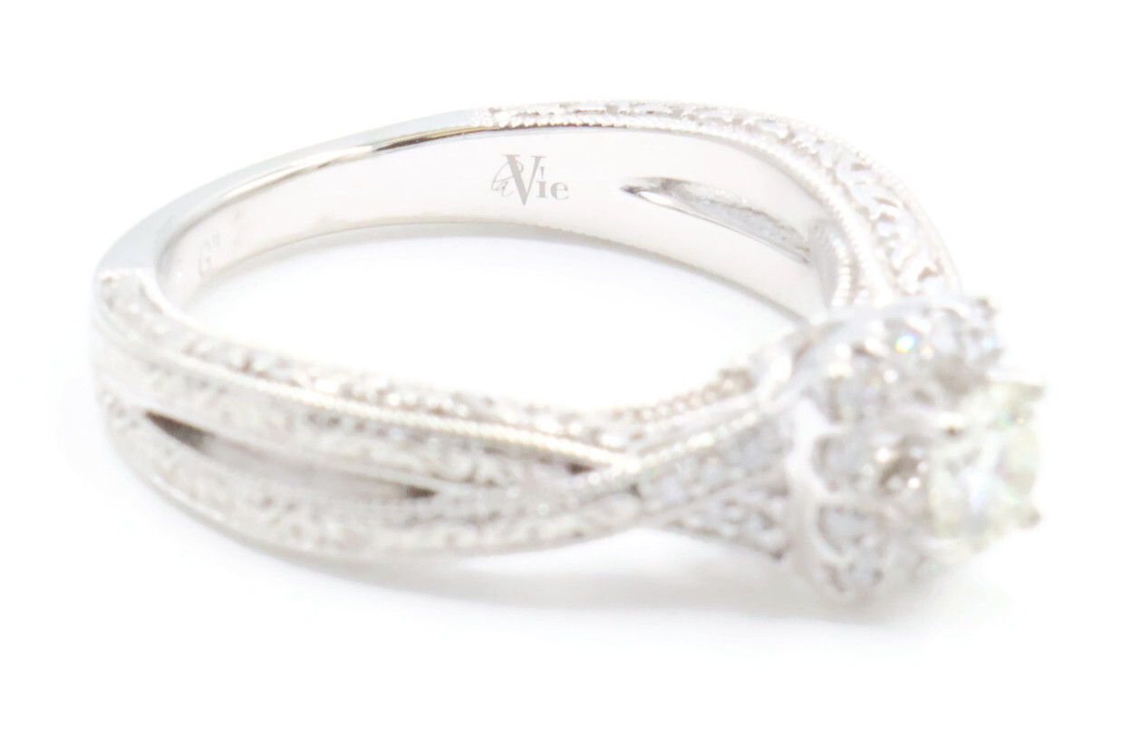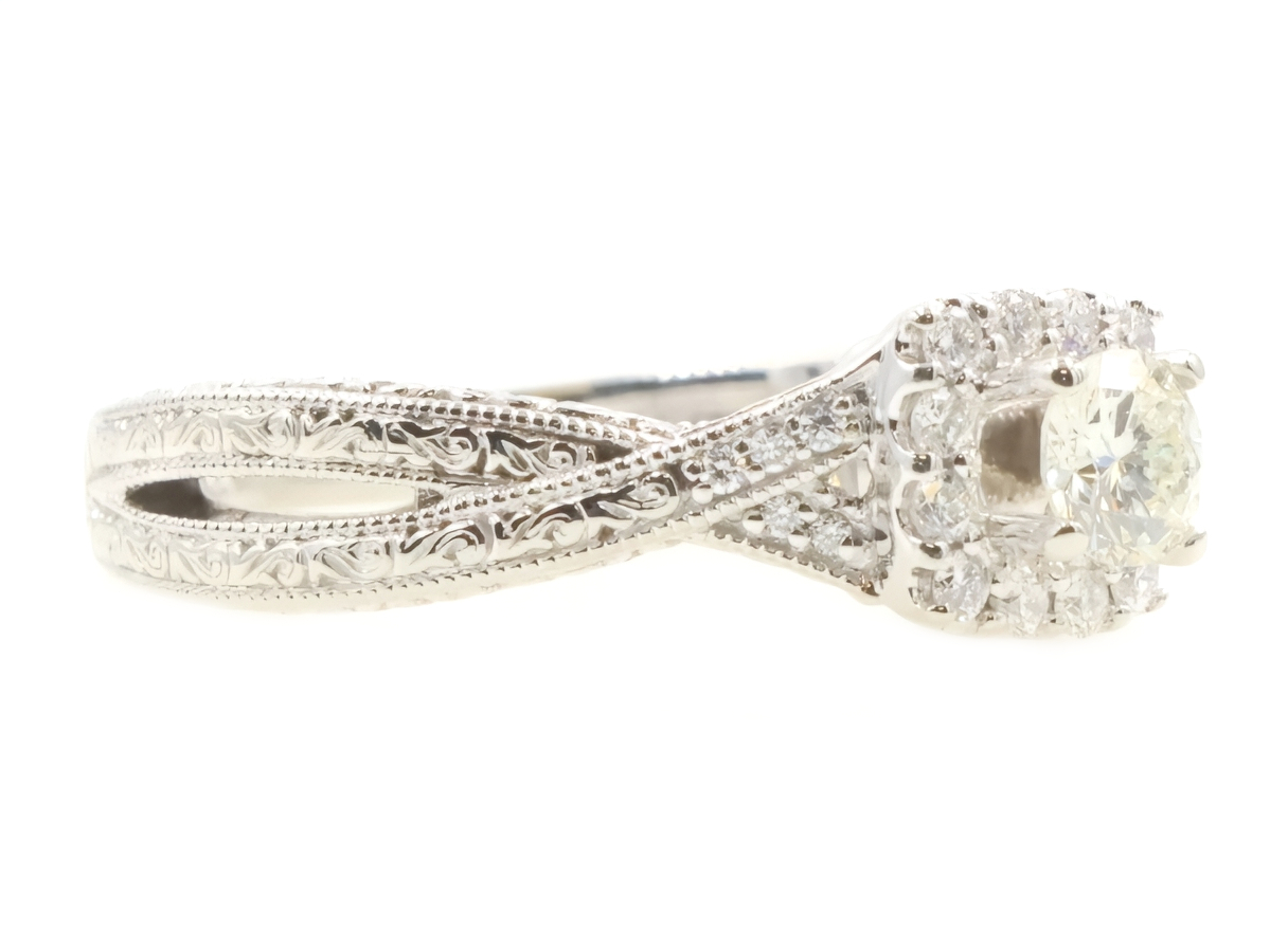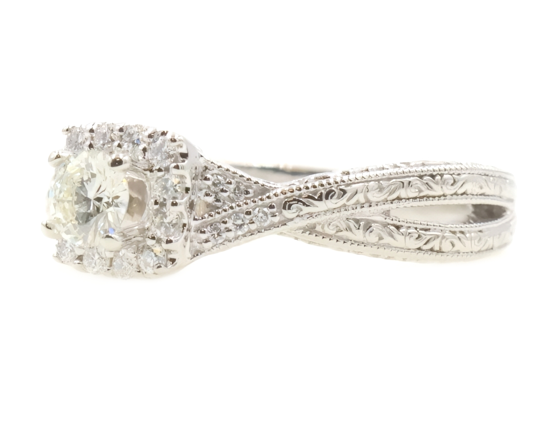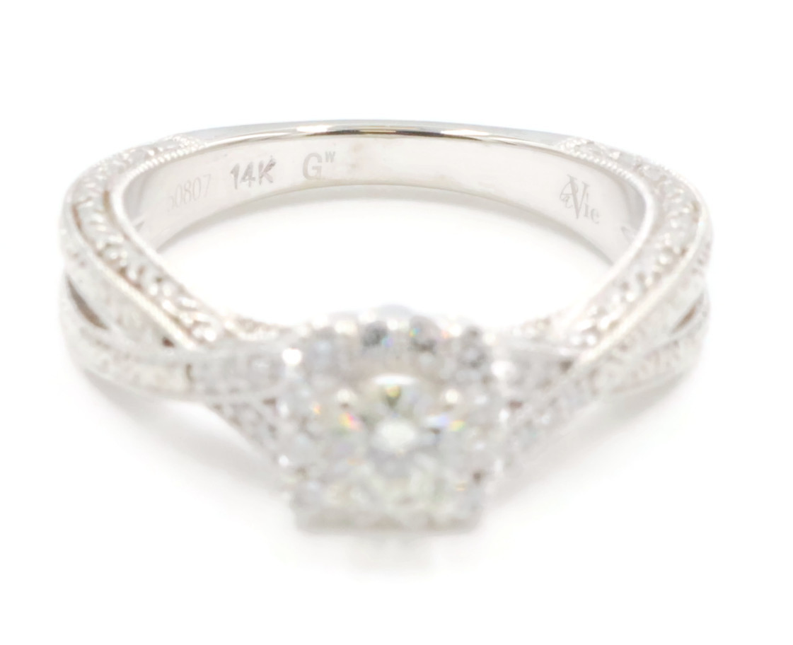 LaVie 0.53 ctw Round Diamond Halo 14KT White Gold Antique Filigree Style Ring | USA Pawn
