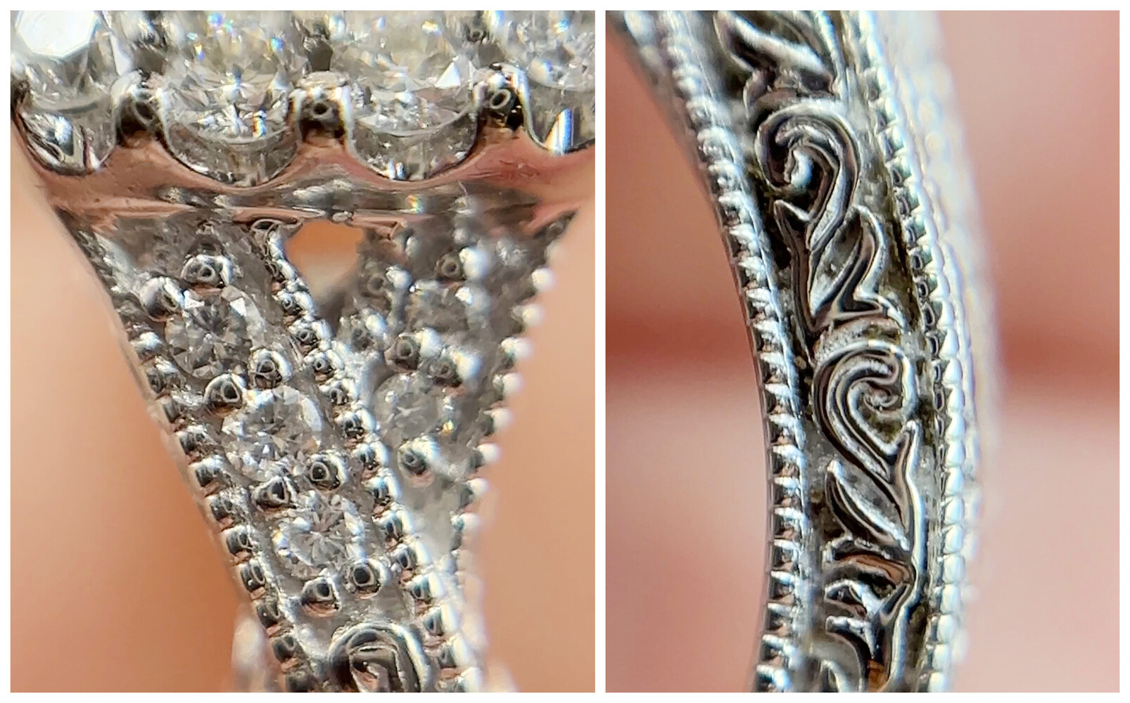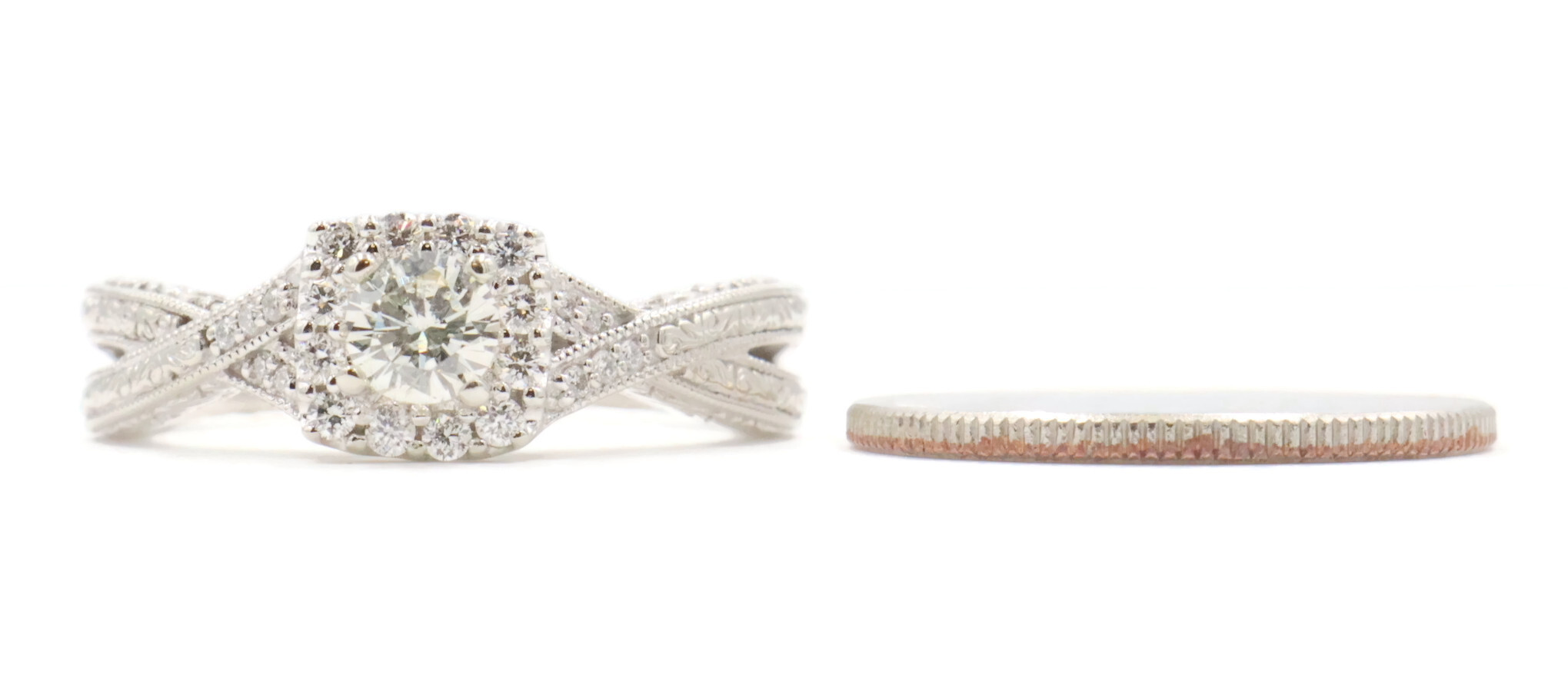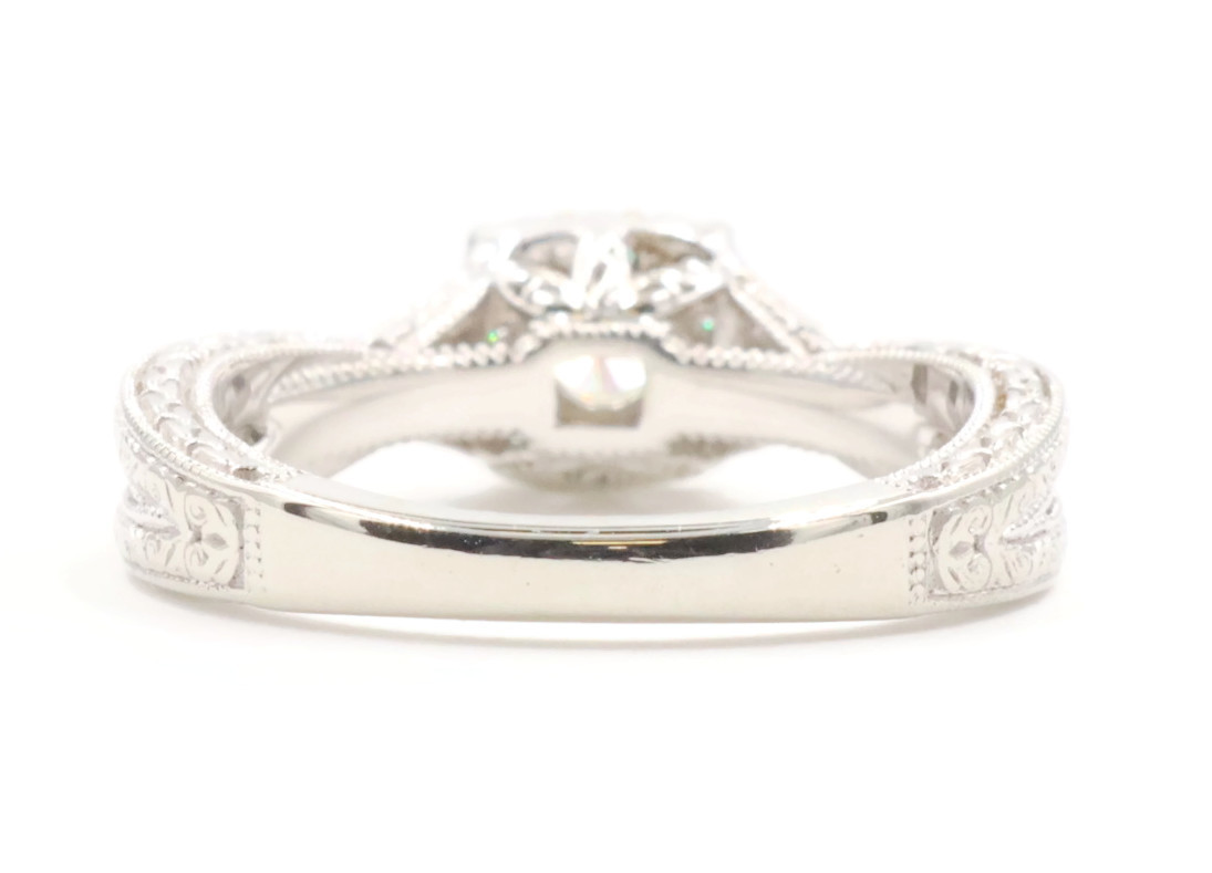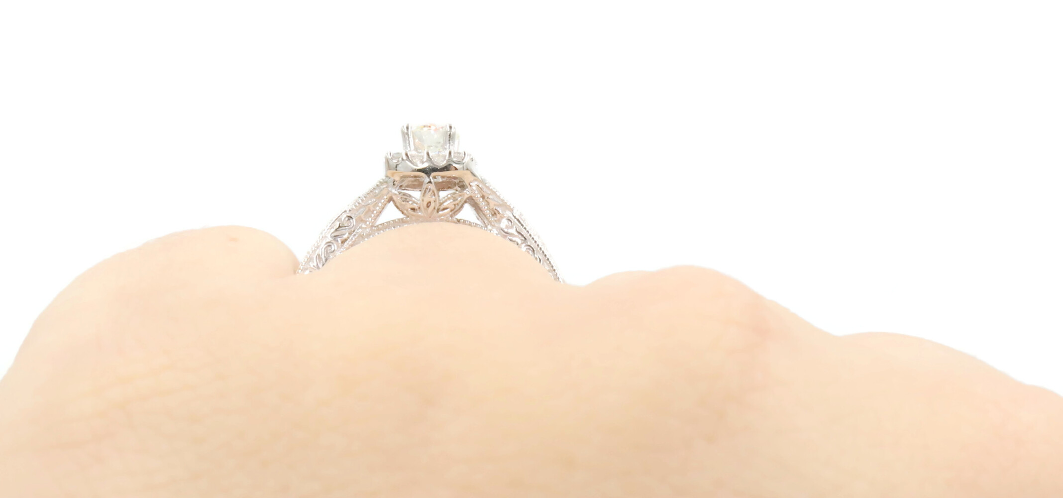 LaVie 0.53 ctw Round Diamond Halo 14KT White Gold Antique Filigree Style Ring | USA Pawn