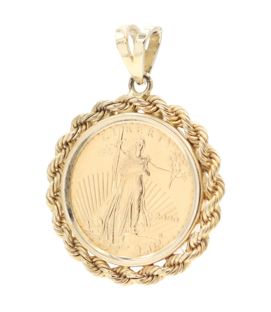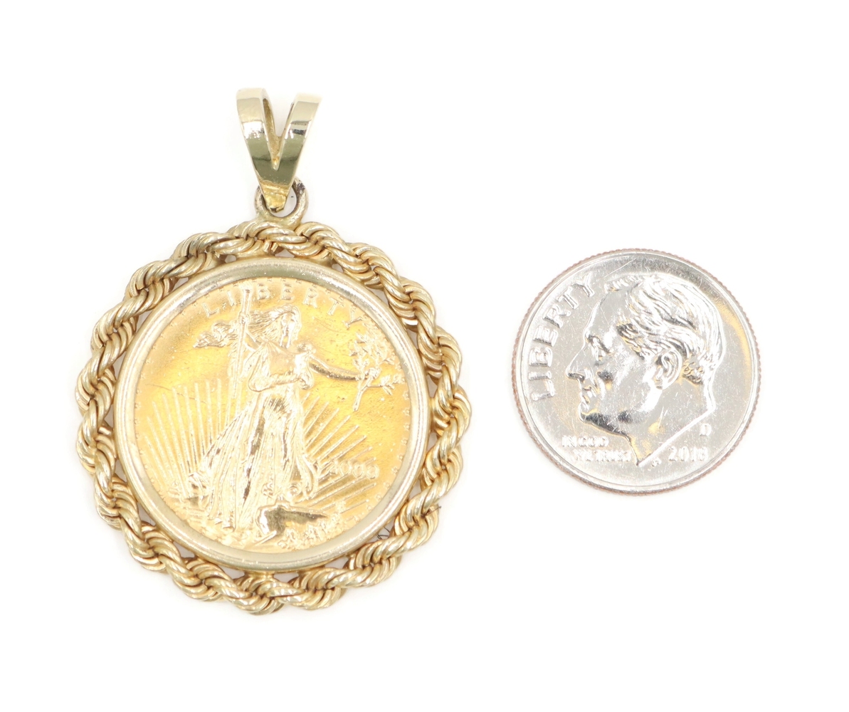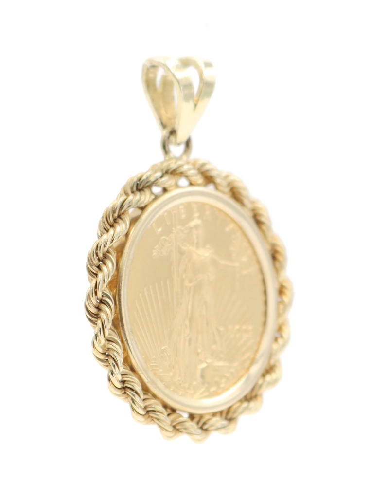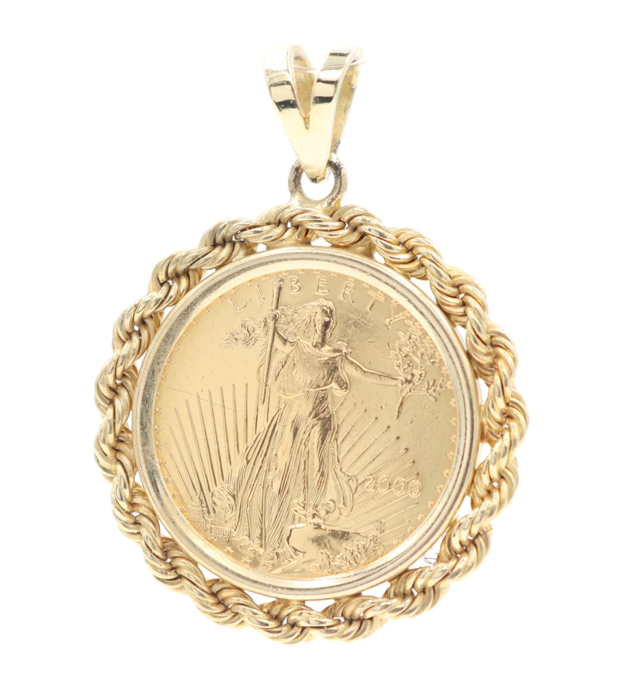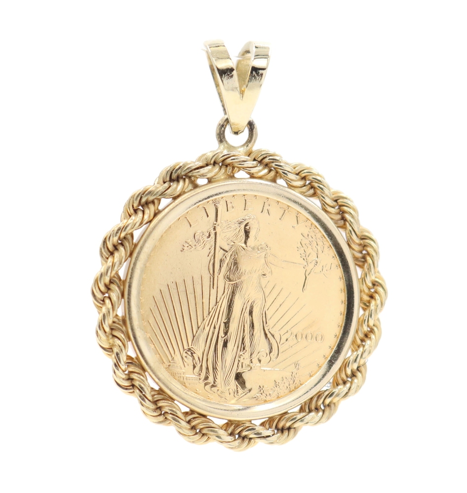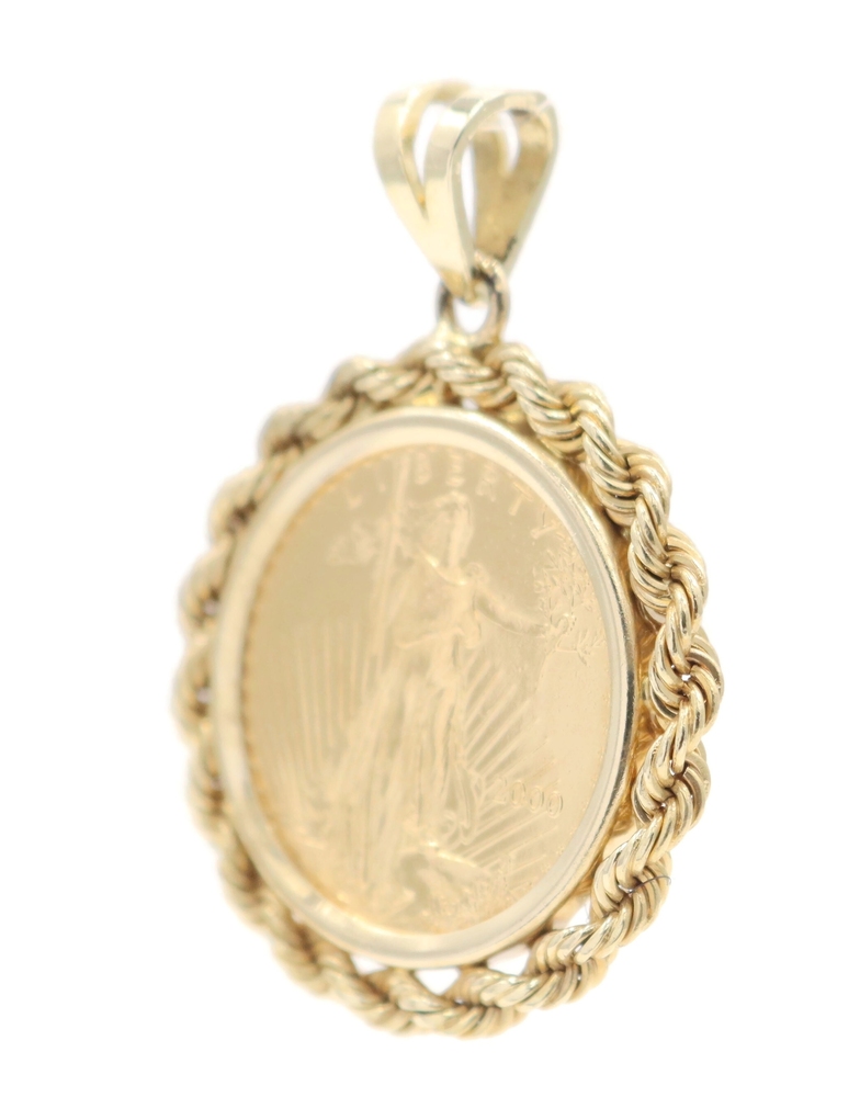 Liberty 2000 1/4 oz Fine Gold Coin in 14KT Yellow Gold Rope Bezel Pendant 12.9g | USA Pawn