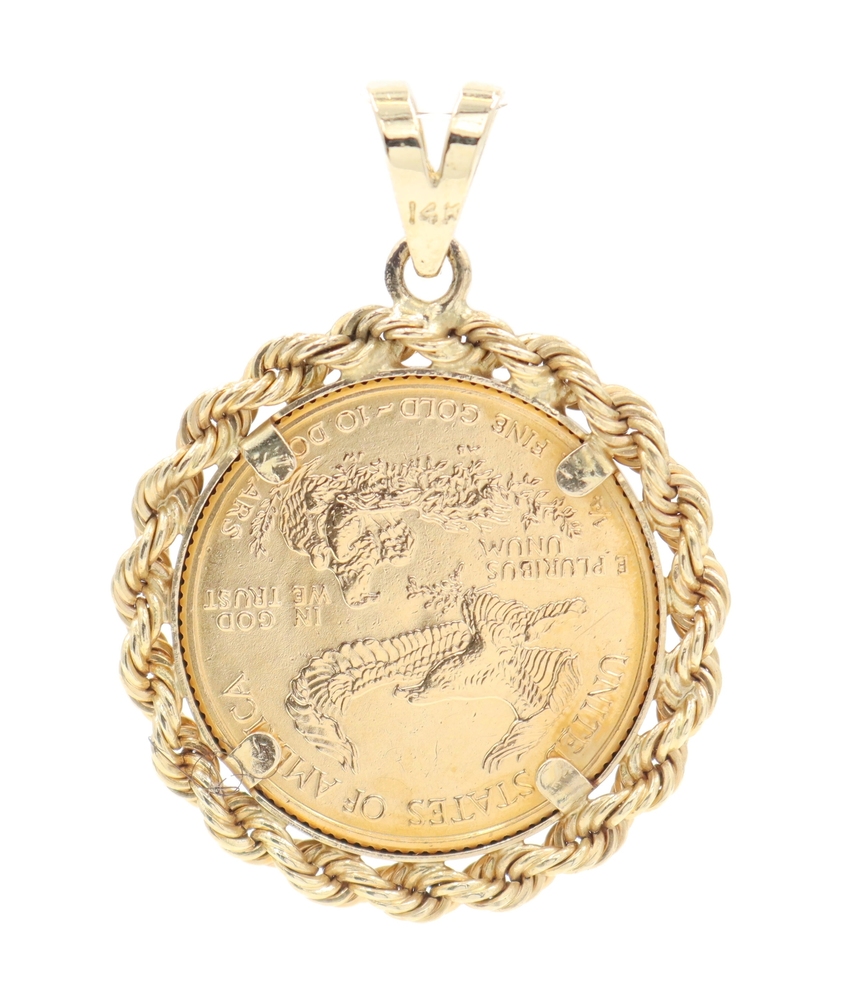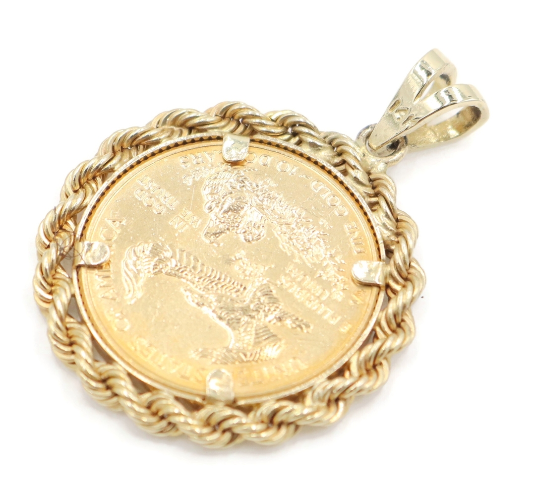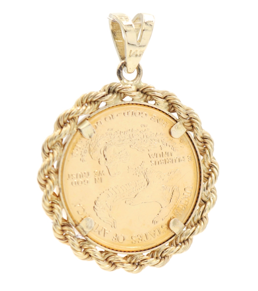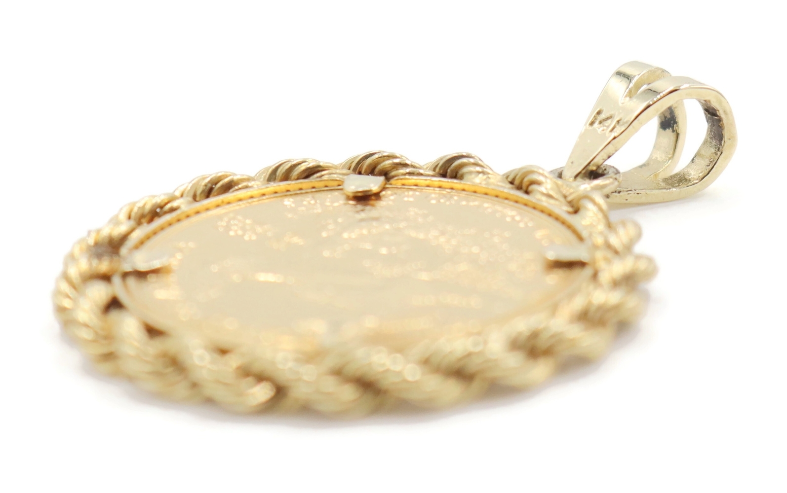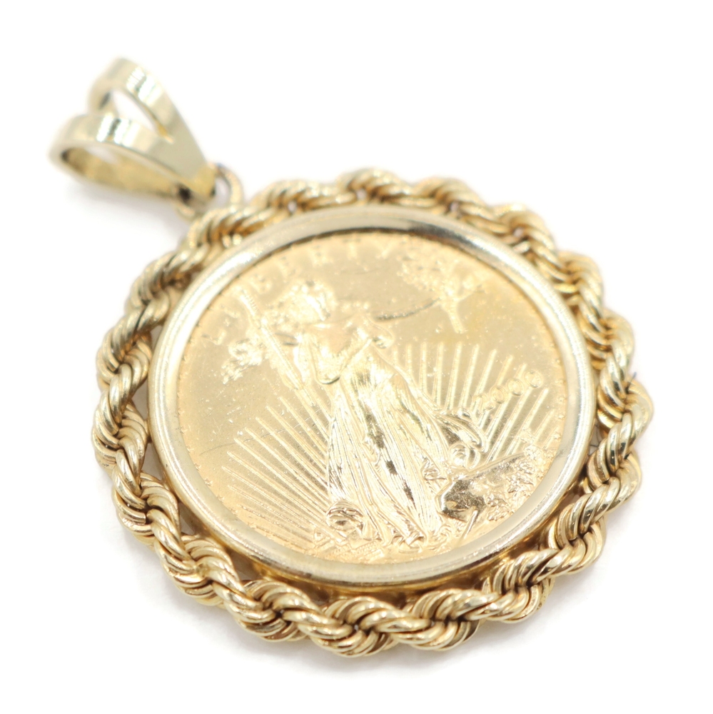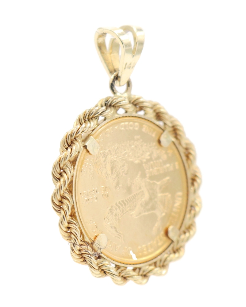 Liberty 2000 1/4 oz Fine Gold Coin in 14KT Yellow Gold Rope Bezel Pendant 12.9g | USA Pawn